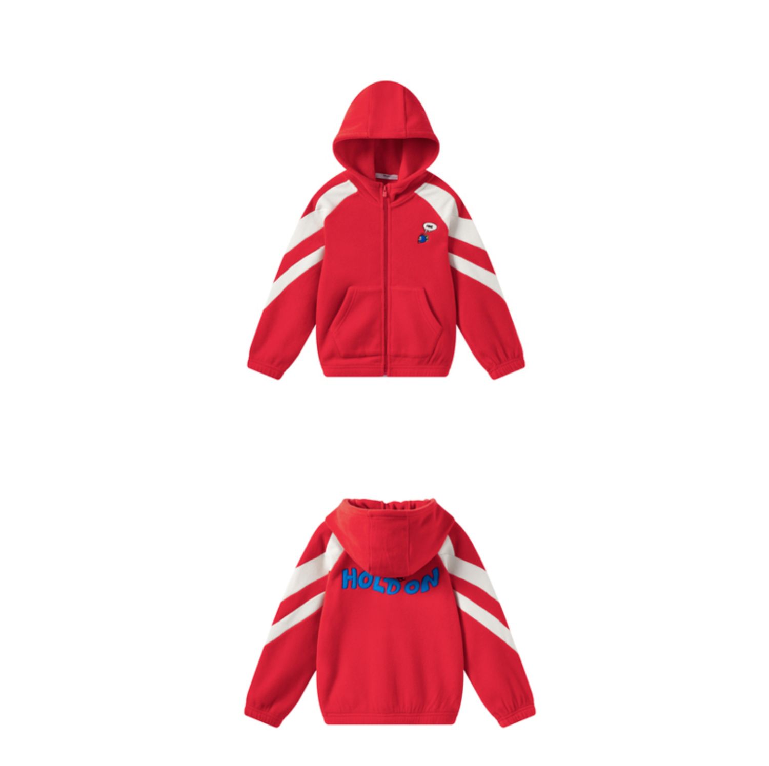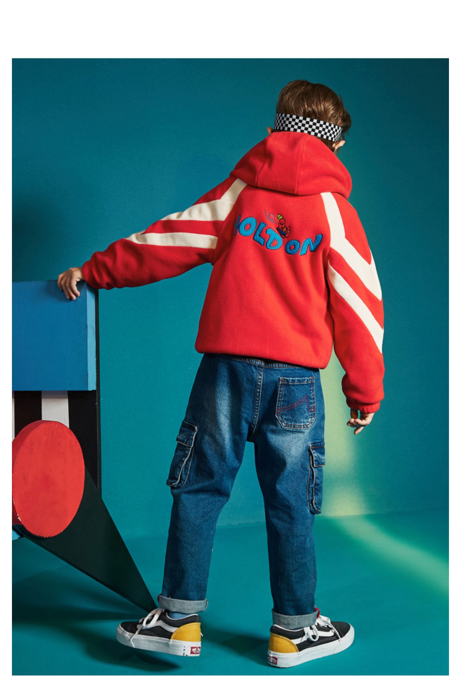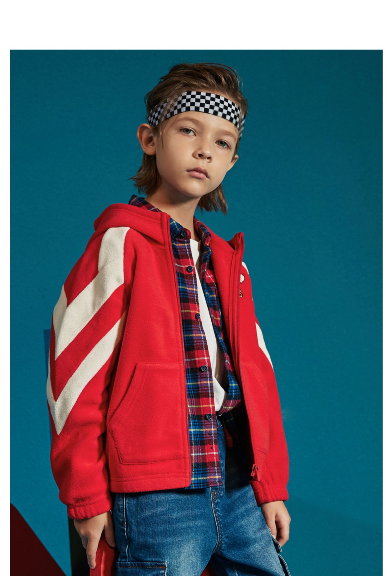 【秒】【MQD】童装男童加厚连帽卫衣儿童开衫中大童红色摇粒绒外套秋冬