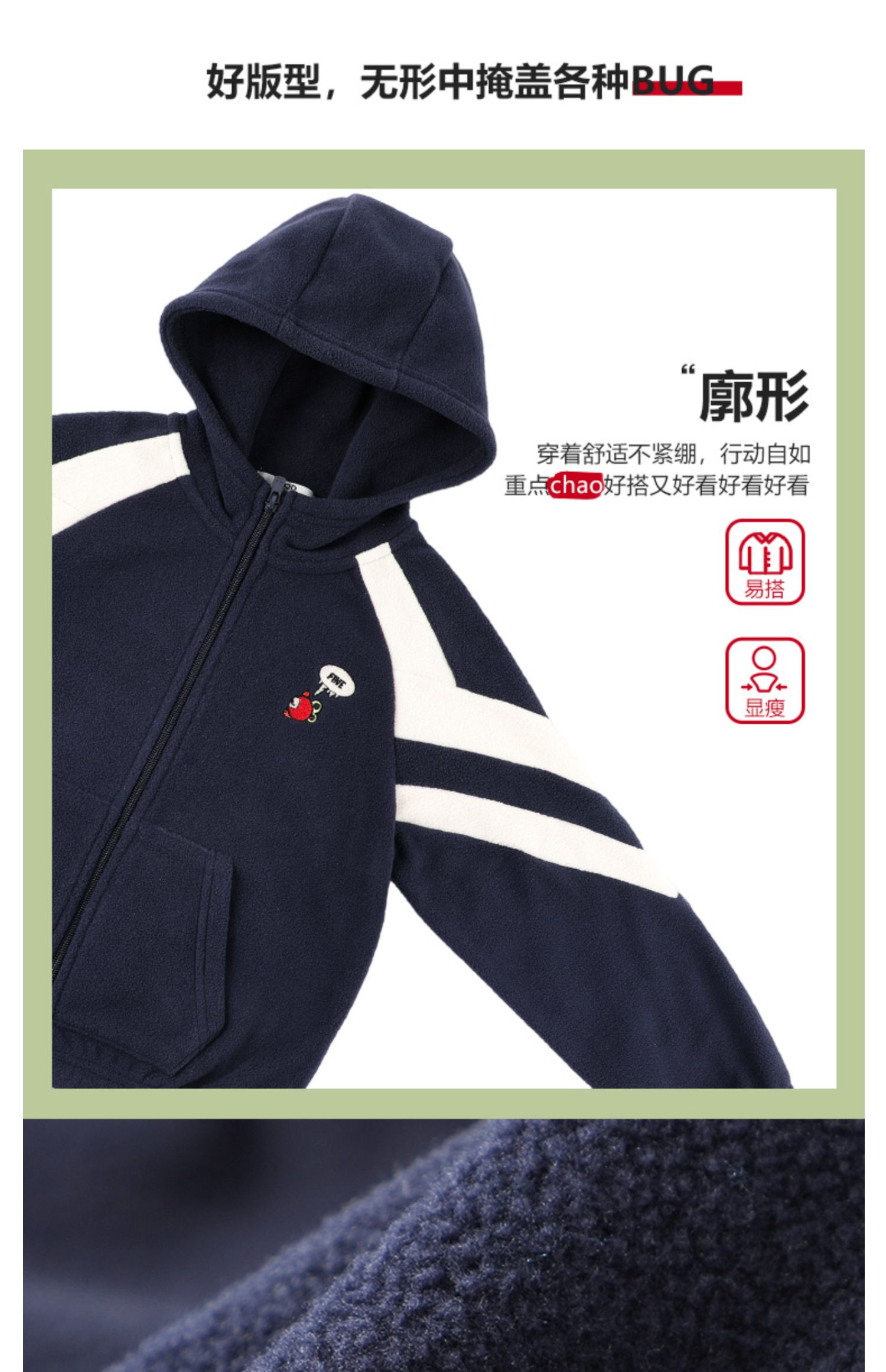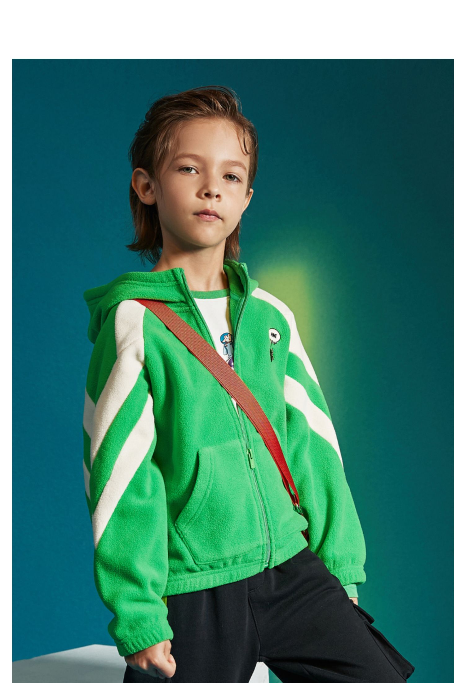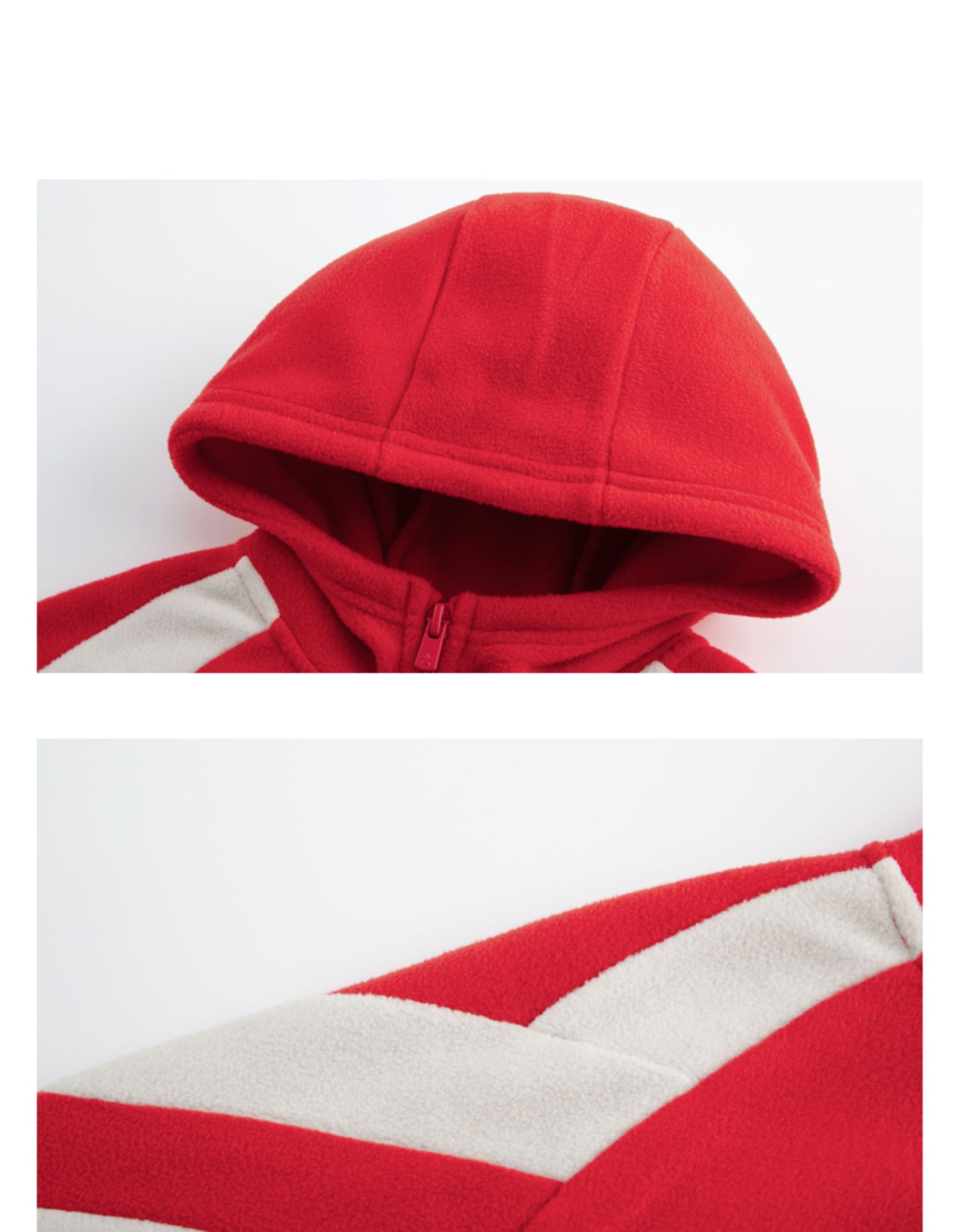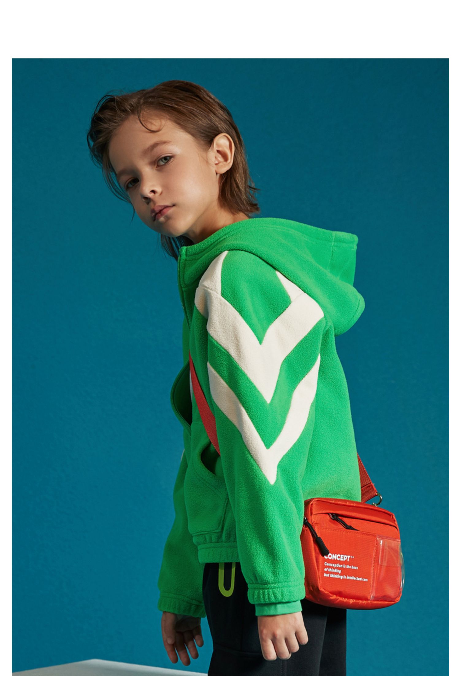 【秒】【MQD】童装男童加厚连帽卫衣儿童开衫中大童红色摇粒绒外套秋冬