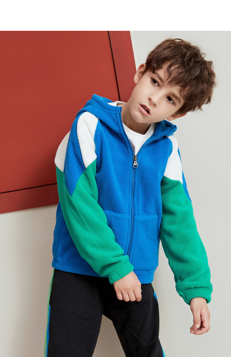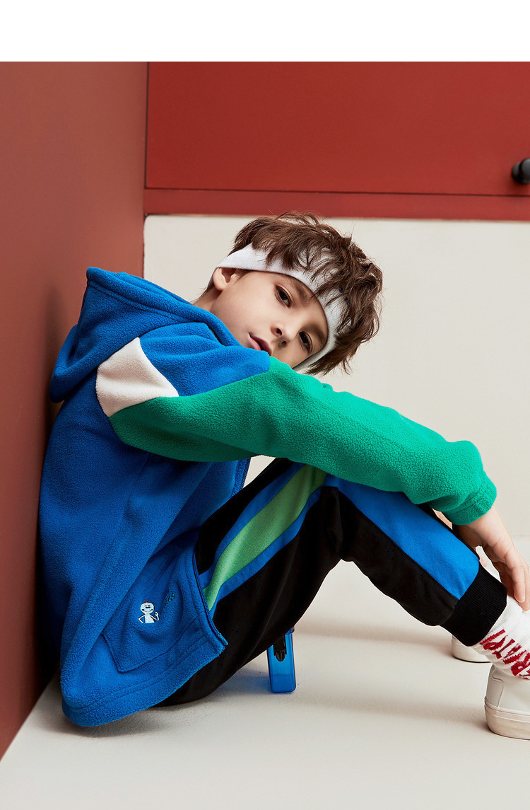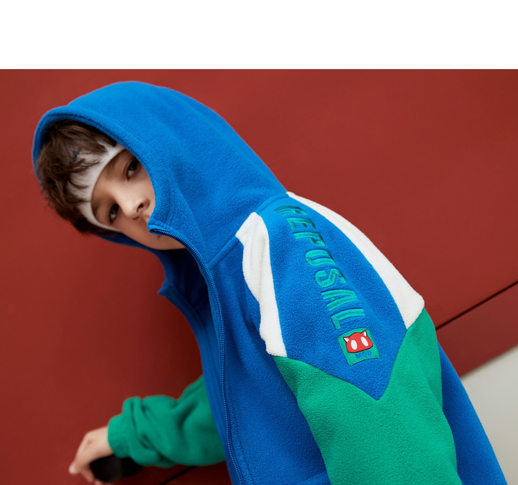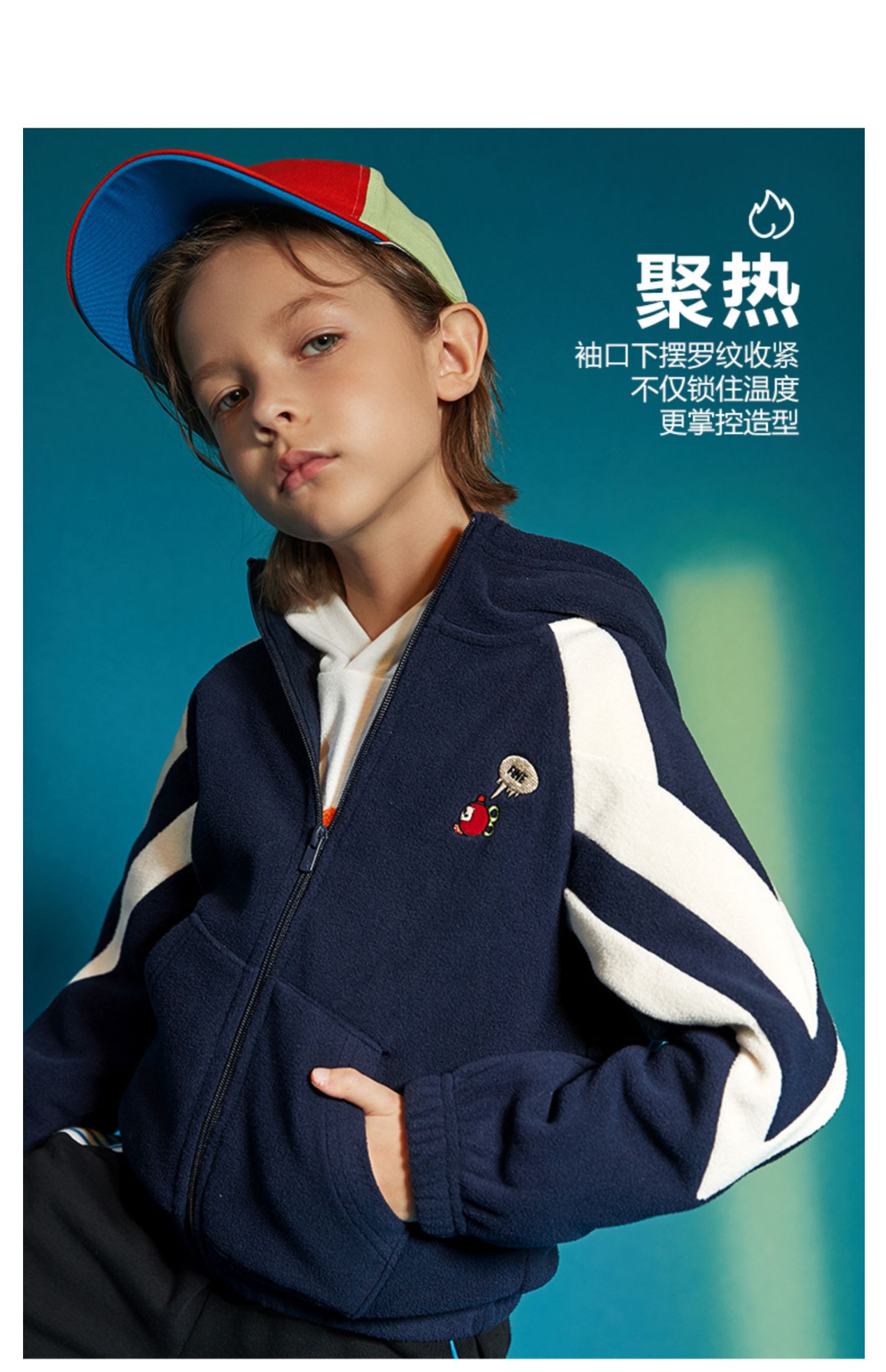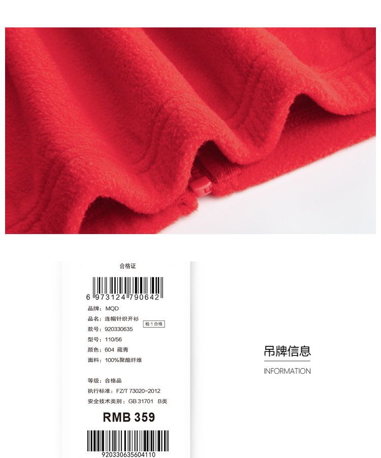 【秒】【MQD】童装男童加厚连帽卫衣儿童开衫中大童红色摇粒绒外套秋冬