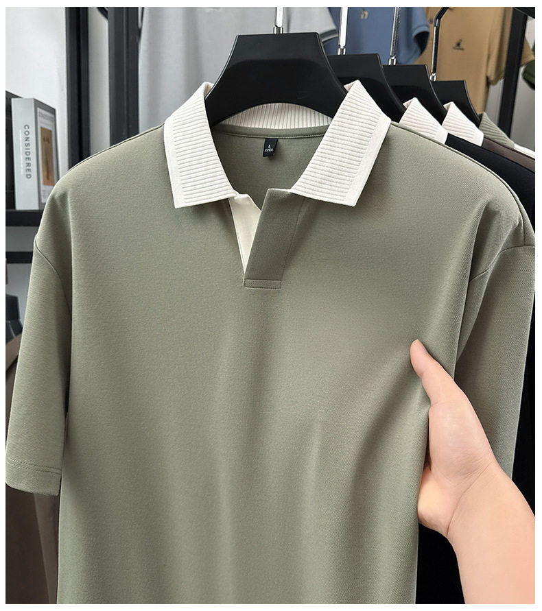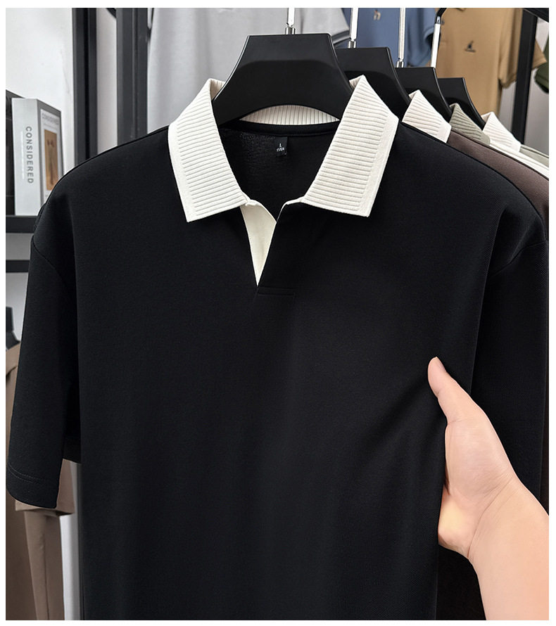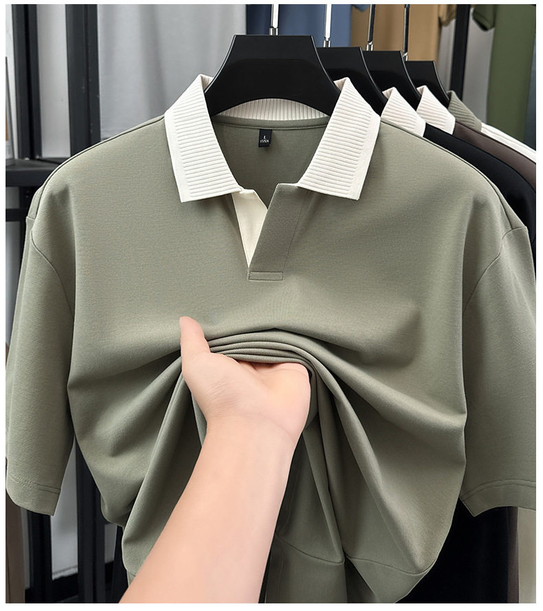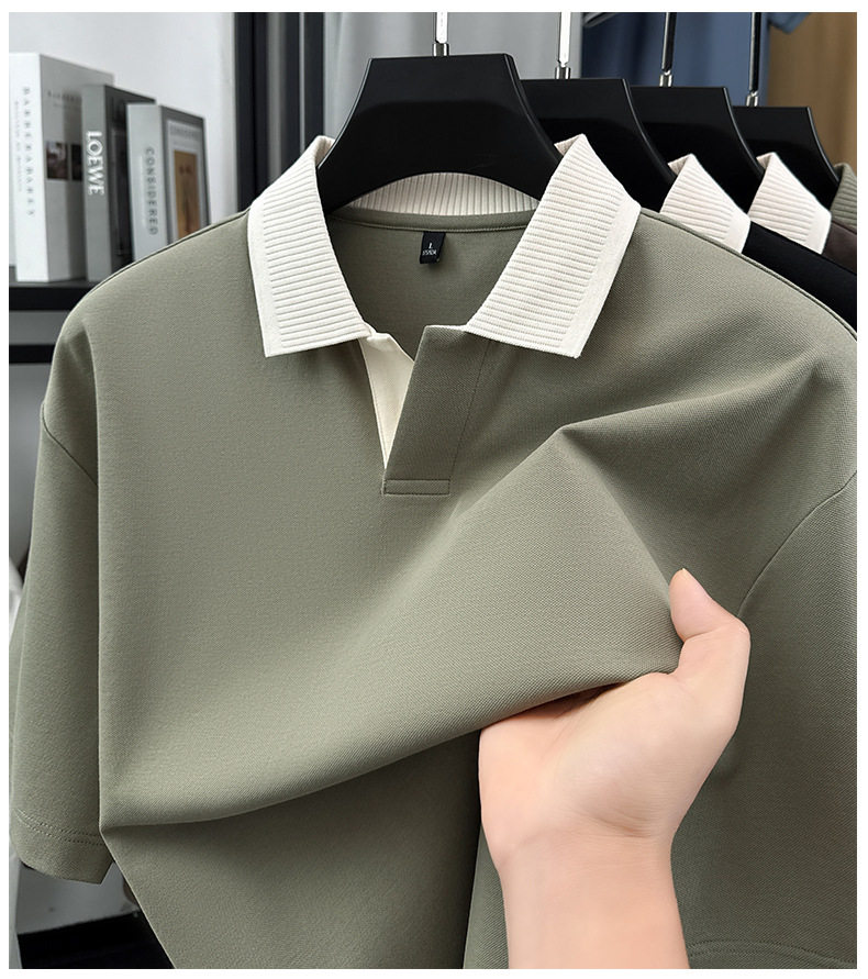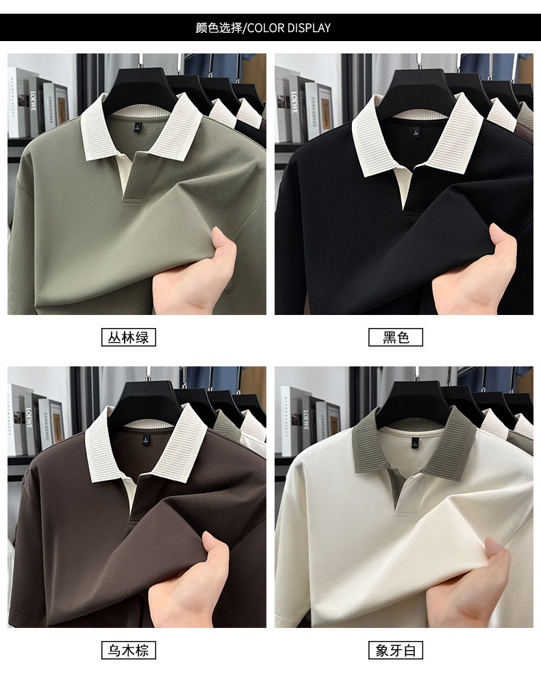 220g拼接插色抗菌短袖POLO衫男士休闲轻奢T恤 YD-2288