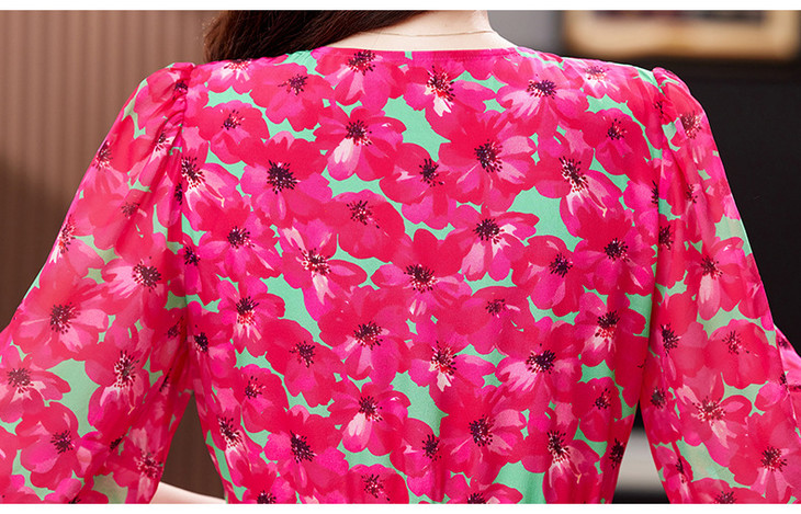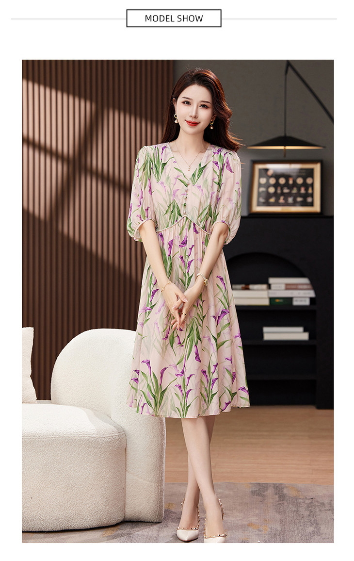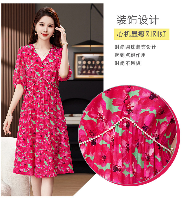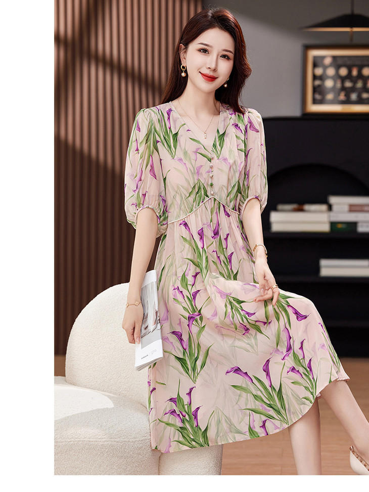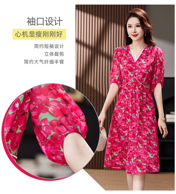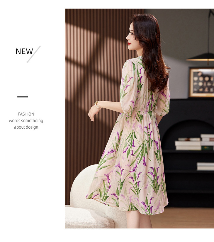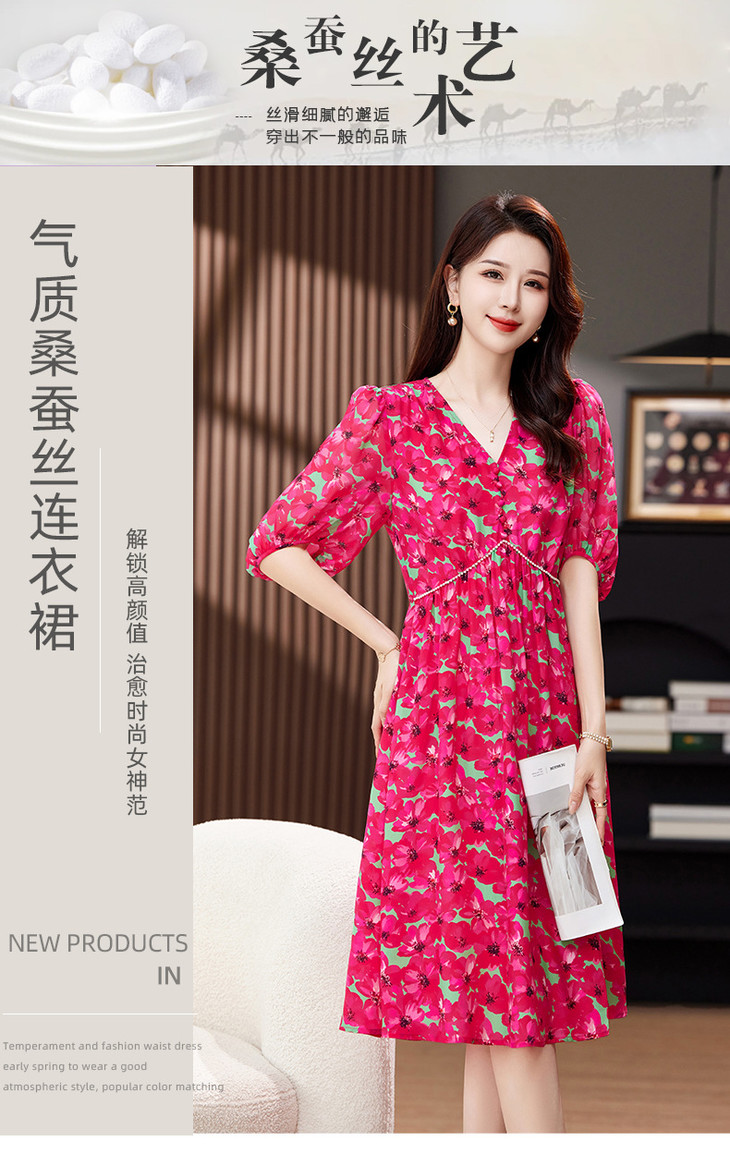 上海旗袍厂重磅真丝连衣裙女2024夏季新款碎花气质收腰品牌年轻款桑蚕丝裙子
