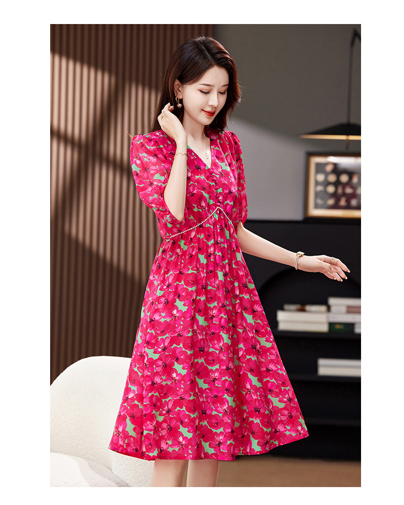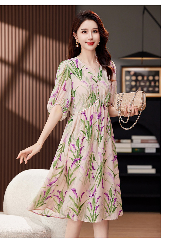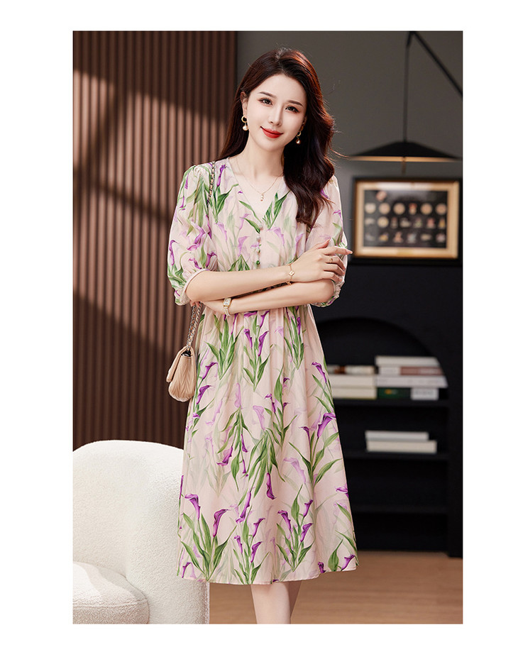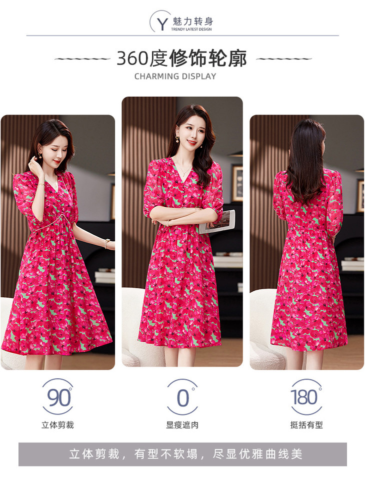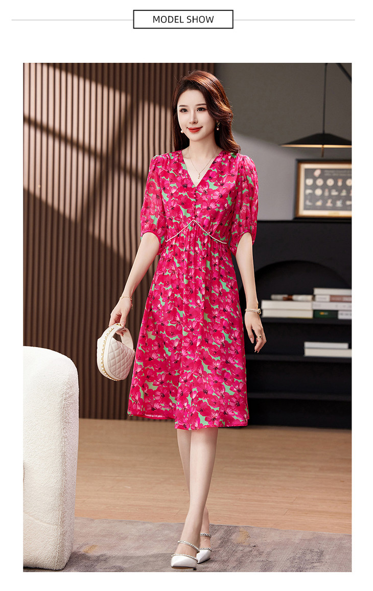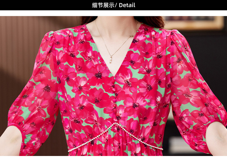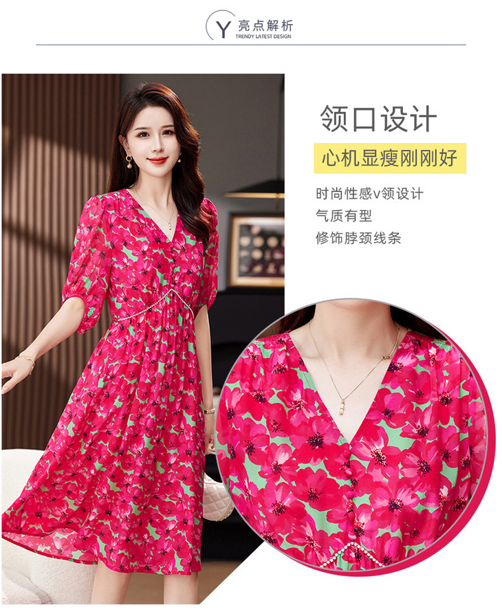 上海旗袍厂重磅真丝连衣裙女2024夏季新款碎花气质收腰品牌年轻款桑蚕丝裙子