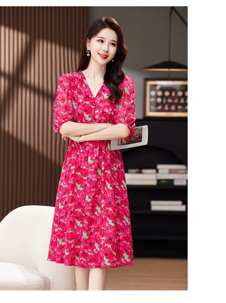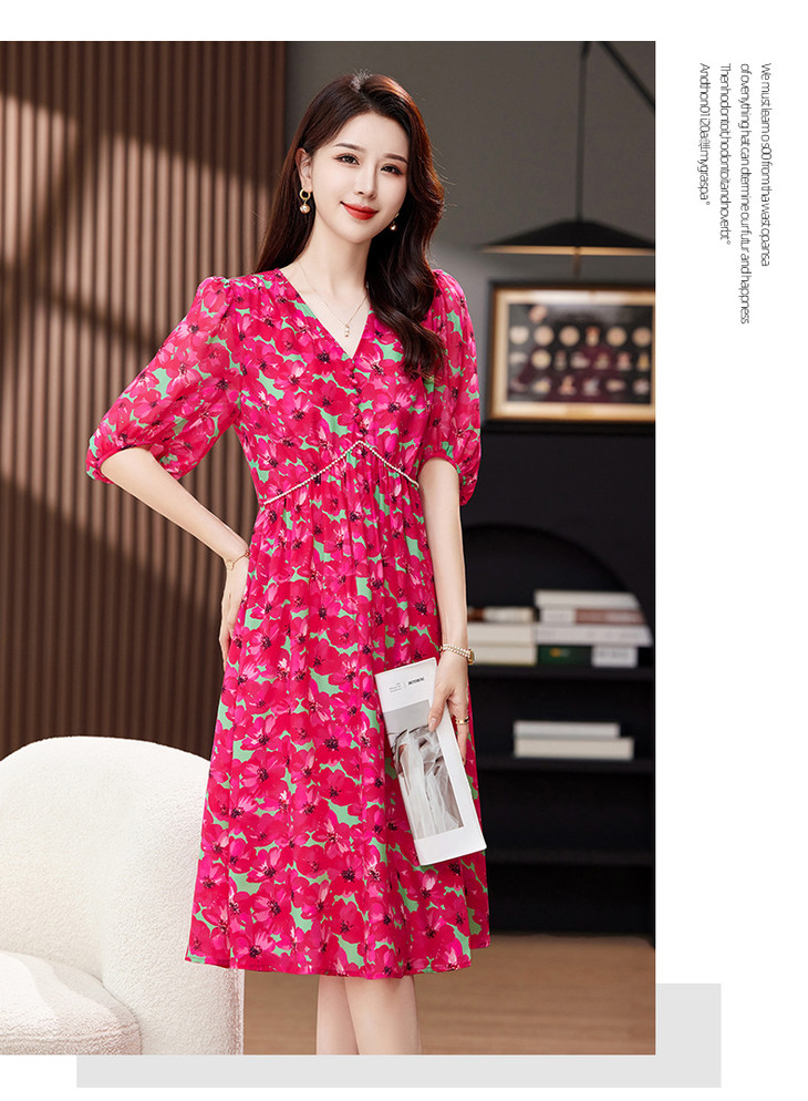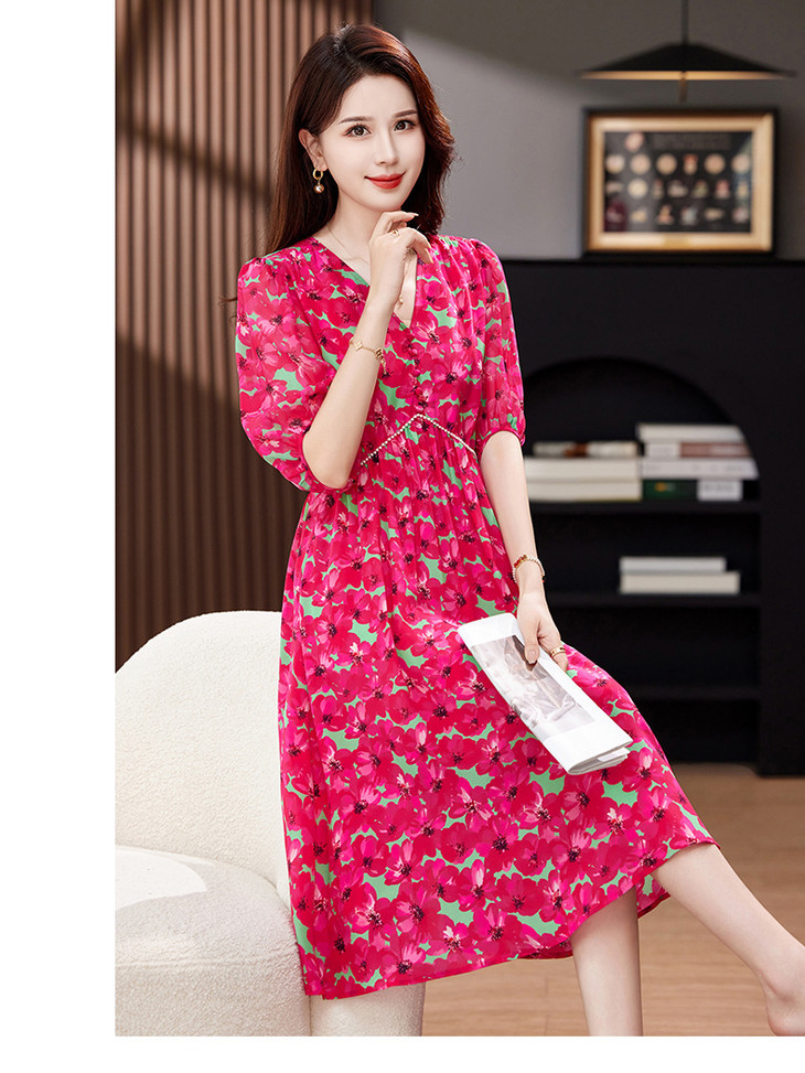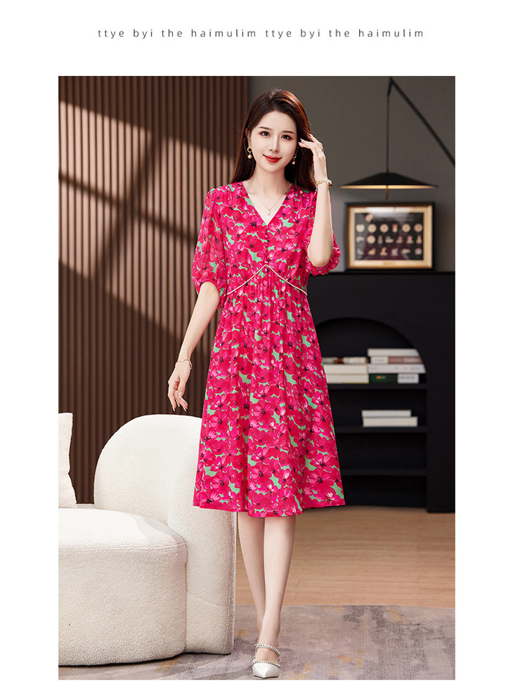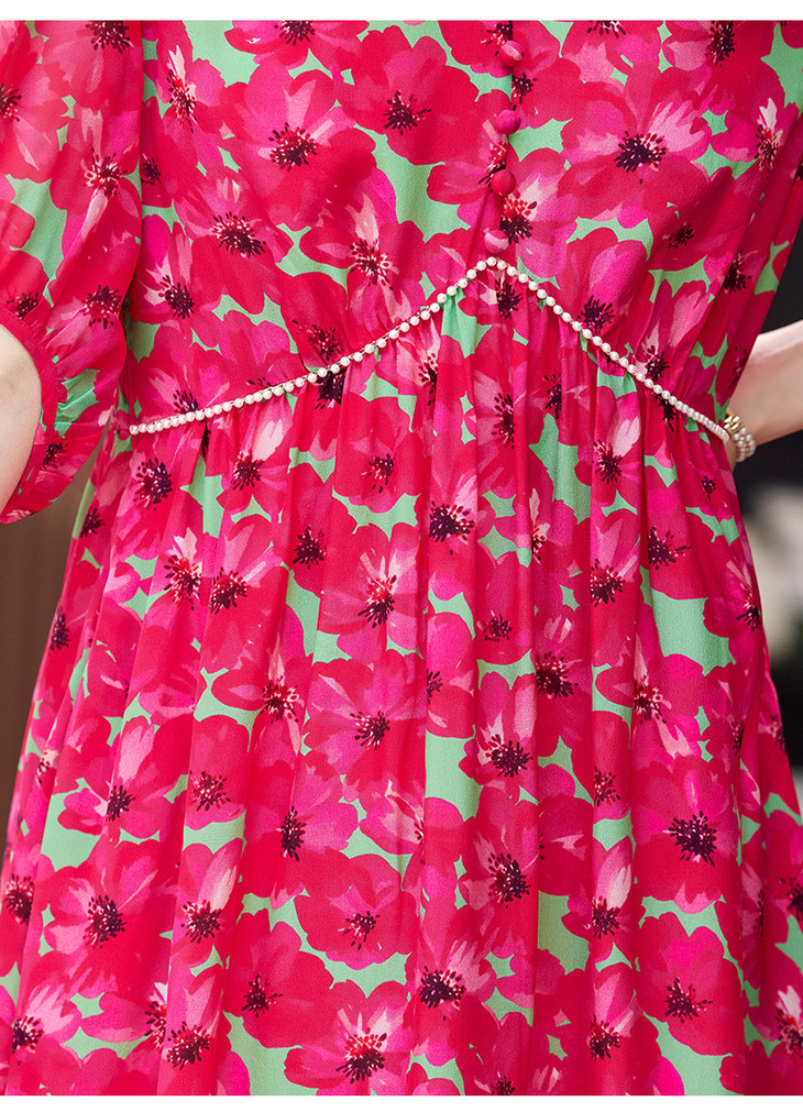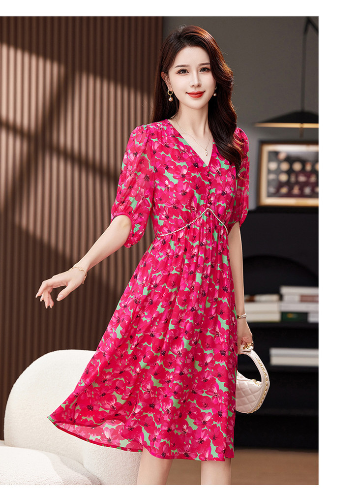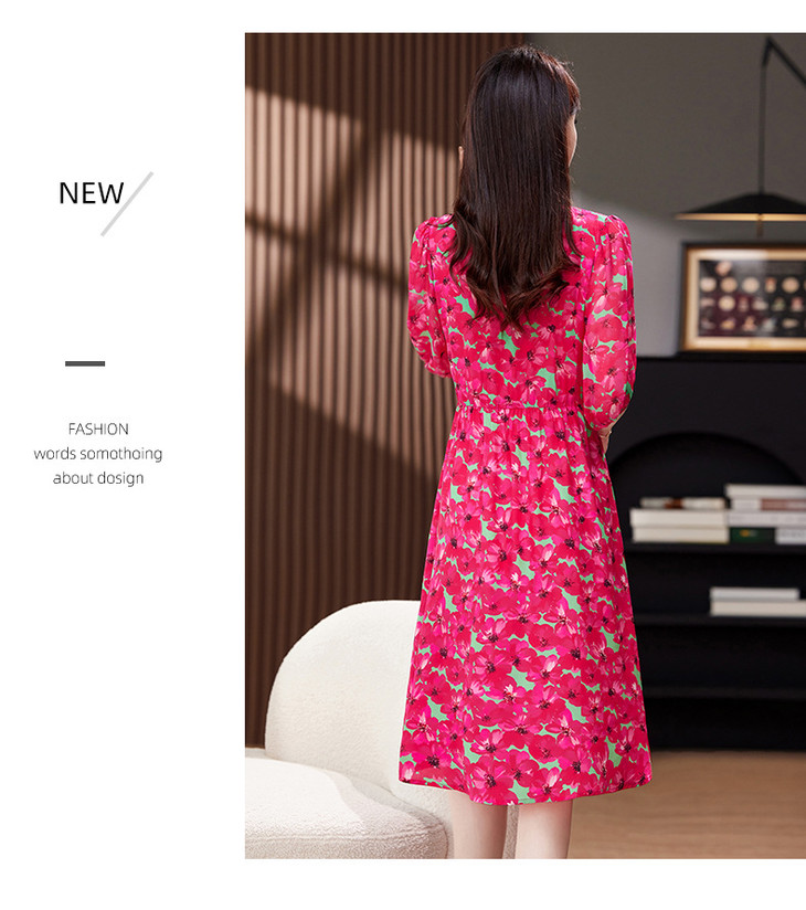 上海旗袍厂重磅真丝连衣裙女2024夏季新款碎花气质收腰品牌年轻款桑蚕丝裙子