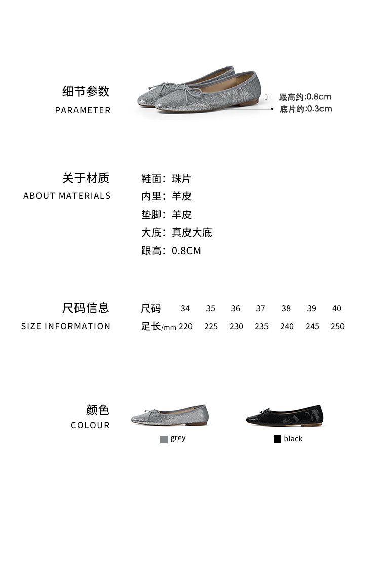 FAYTOBE 春日星光亮片芭蕾鞋羊皮尖圆头手工鞋复古浅口单鞋时髦平底