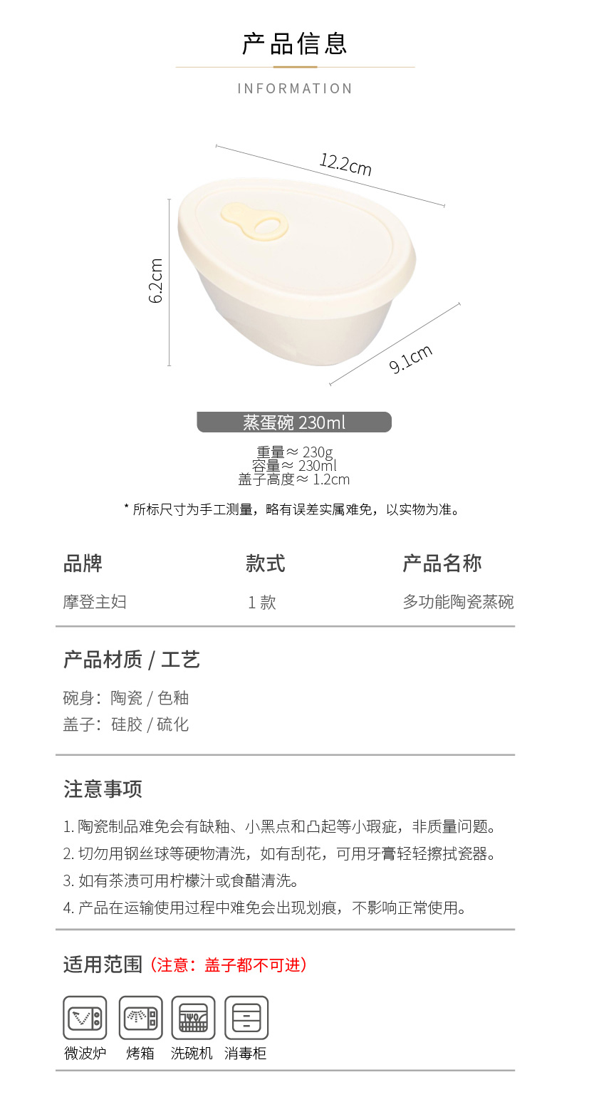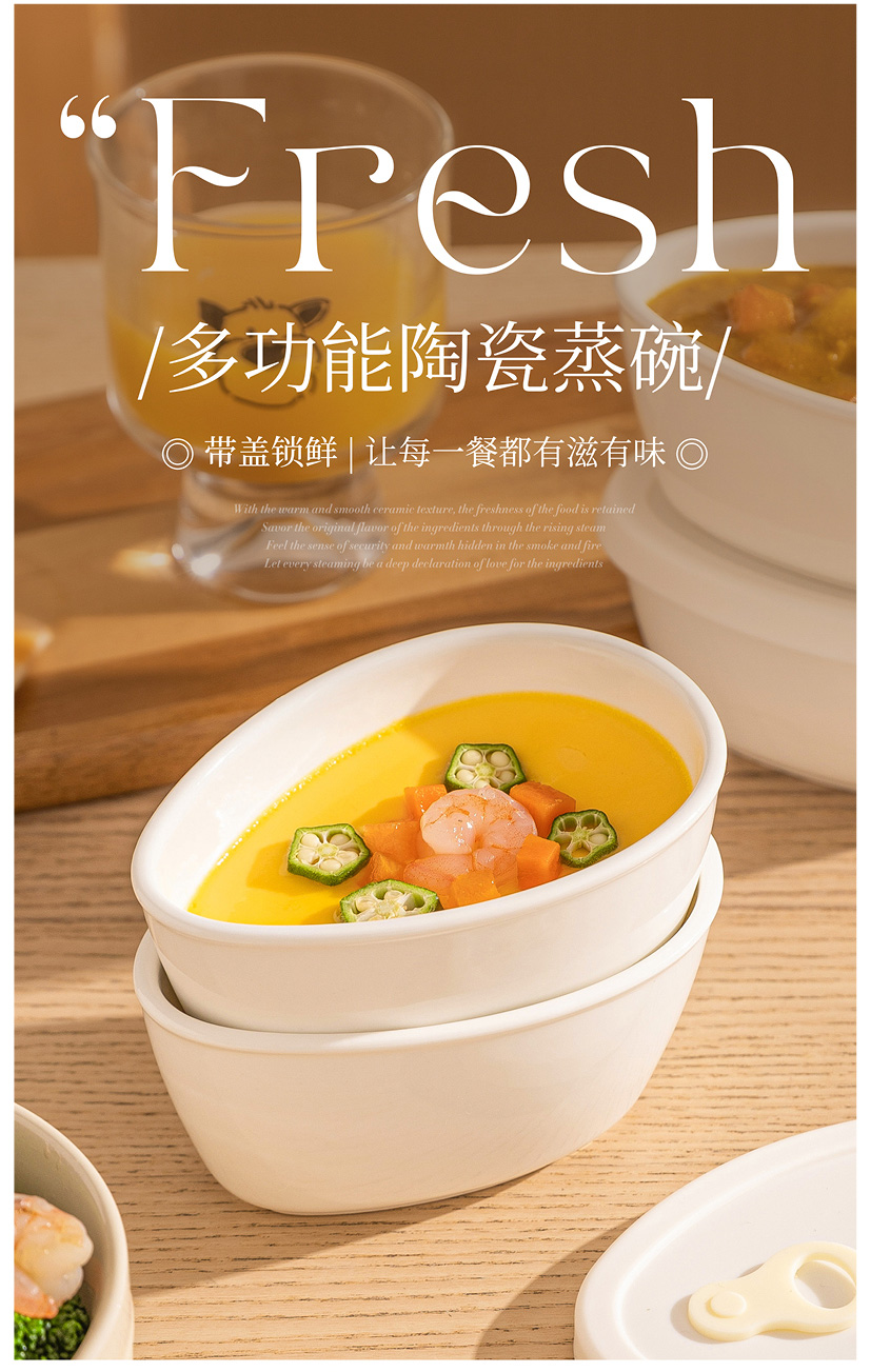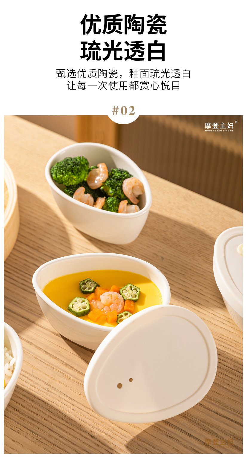 摩登主妇陶瓷带盖蒸蛋碗家用小炖盅蒸辅食蒸鸡蛋羹燕窝专用碗