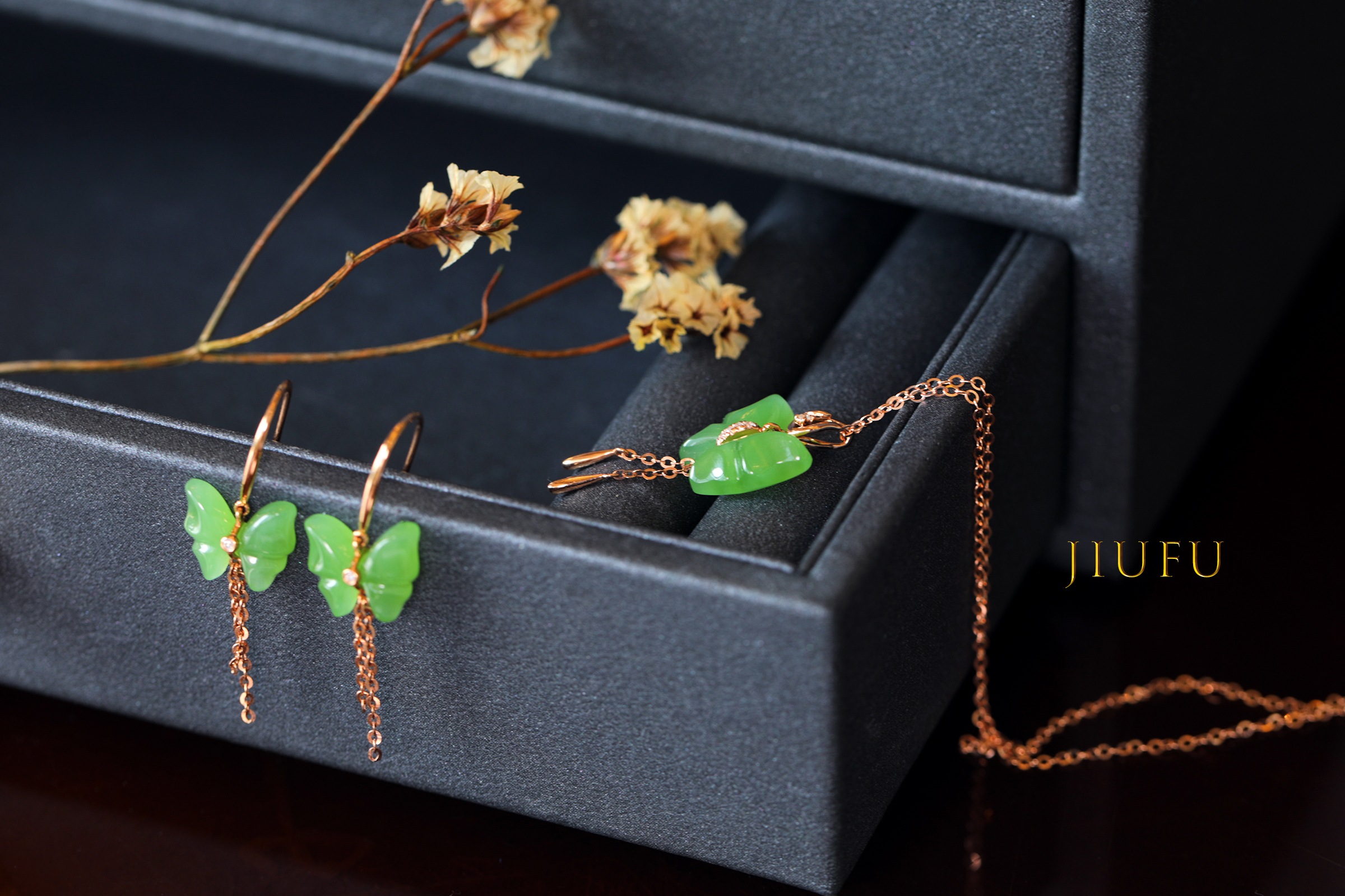 翠蝶套装(吊坠+耳饰)