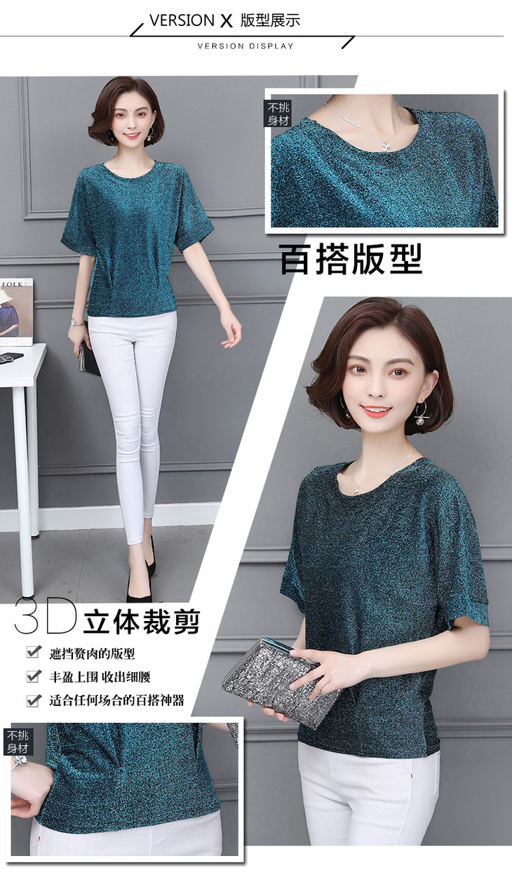 MYW-9955夏季新款网纱亮丝宽松大码打底妈妈装