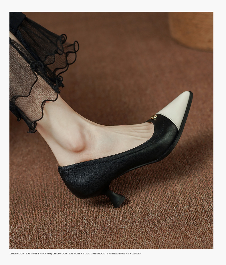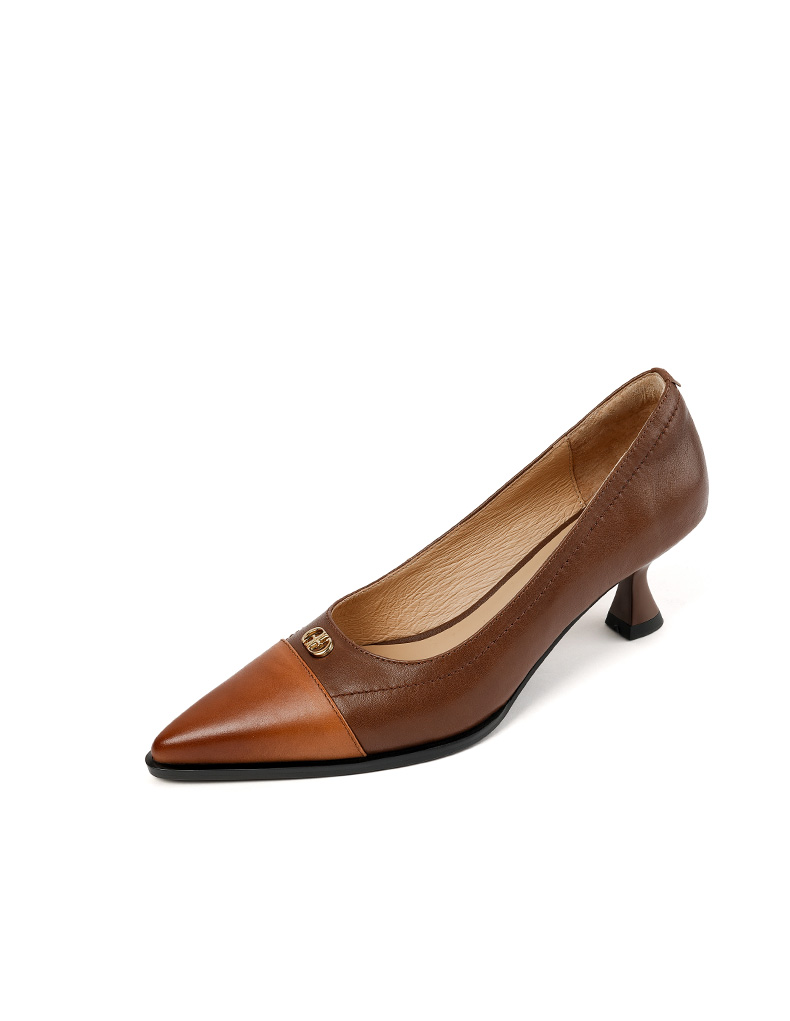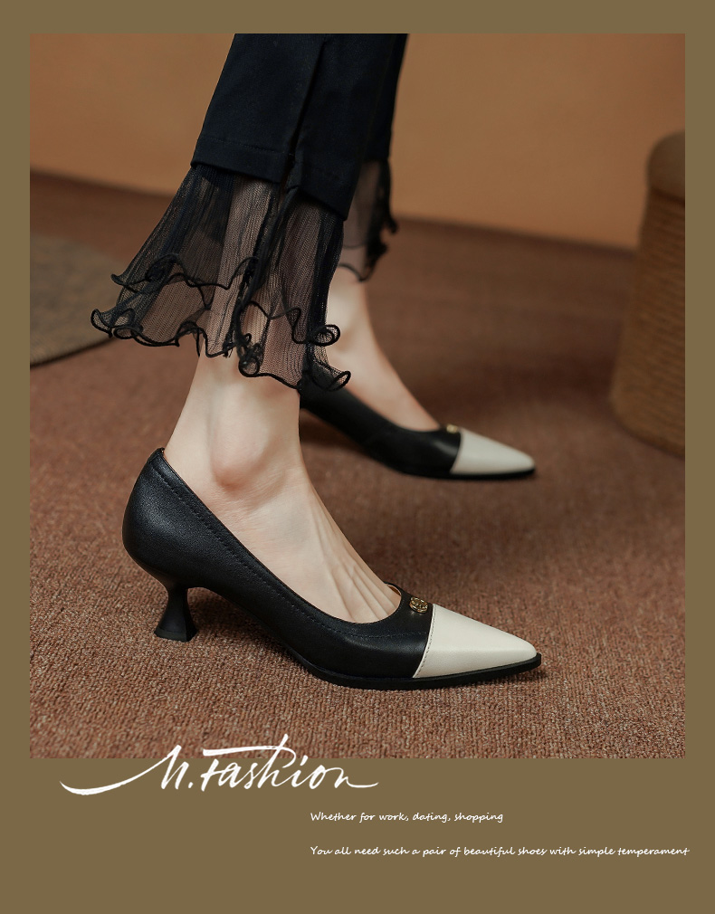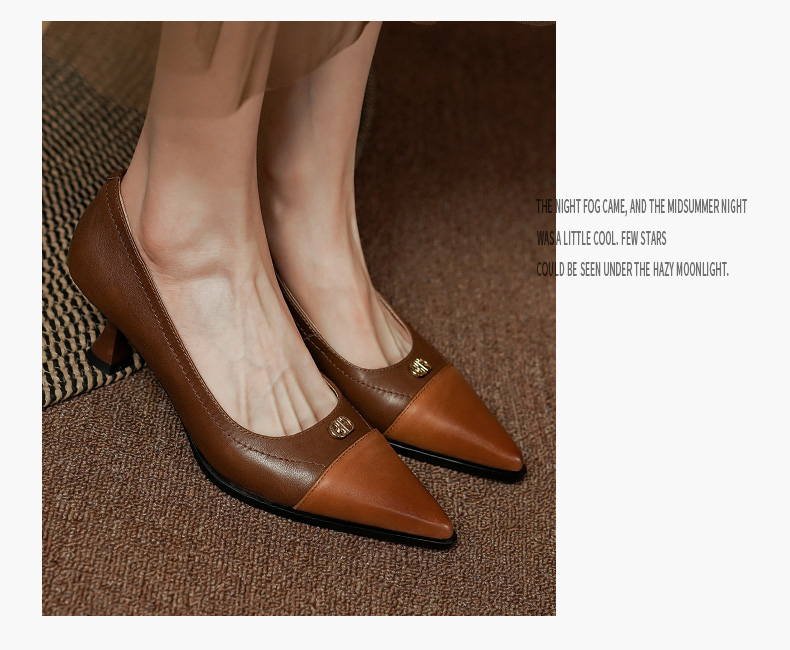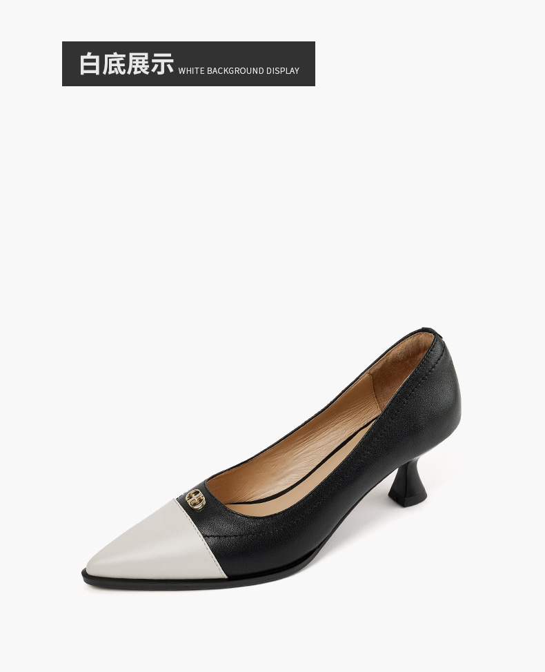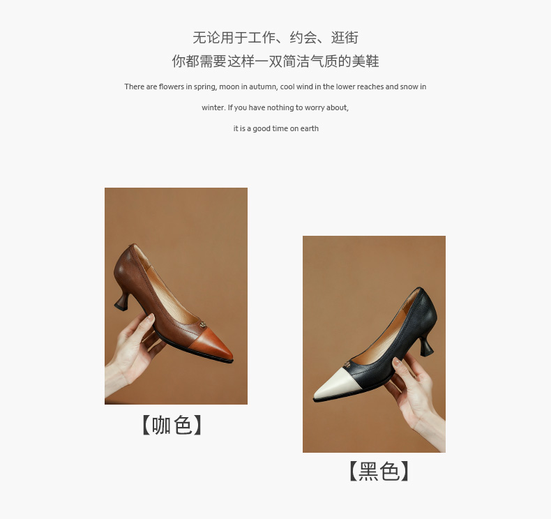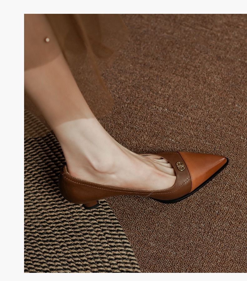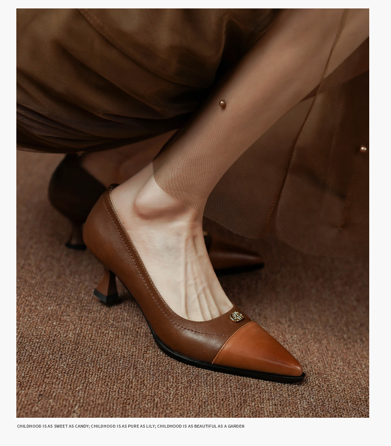 优雅简约,头层小牛皮复古轻奢浅口单鞋PS1252