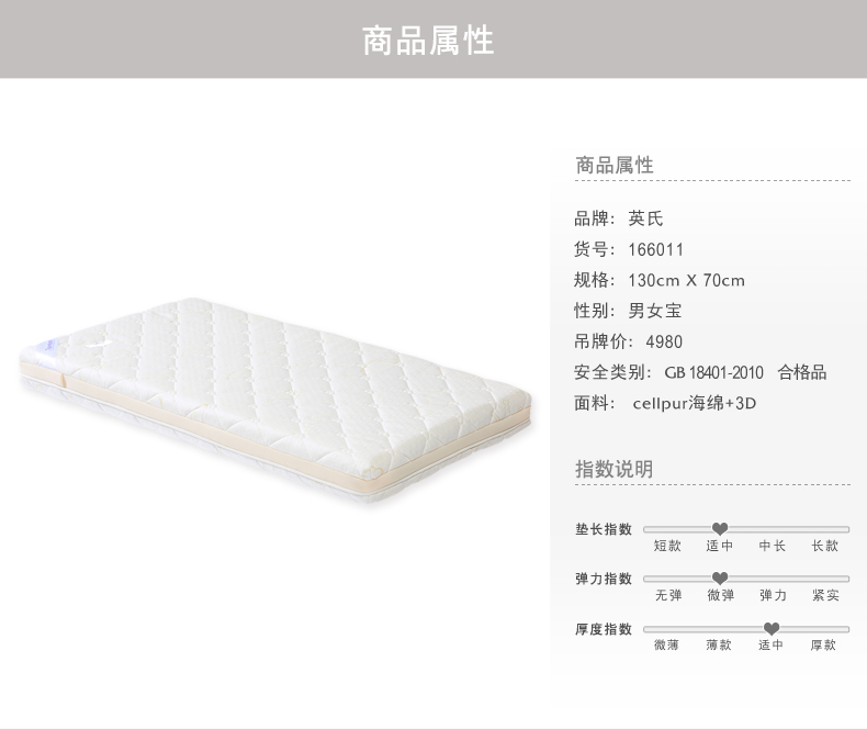 英氏儿童床床垫3D床垫双面睡可拆洗70cm*130cm 166011