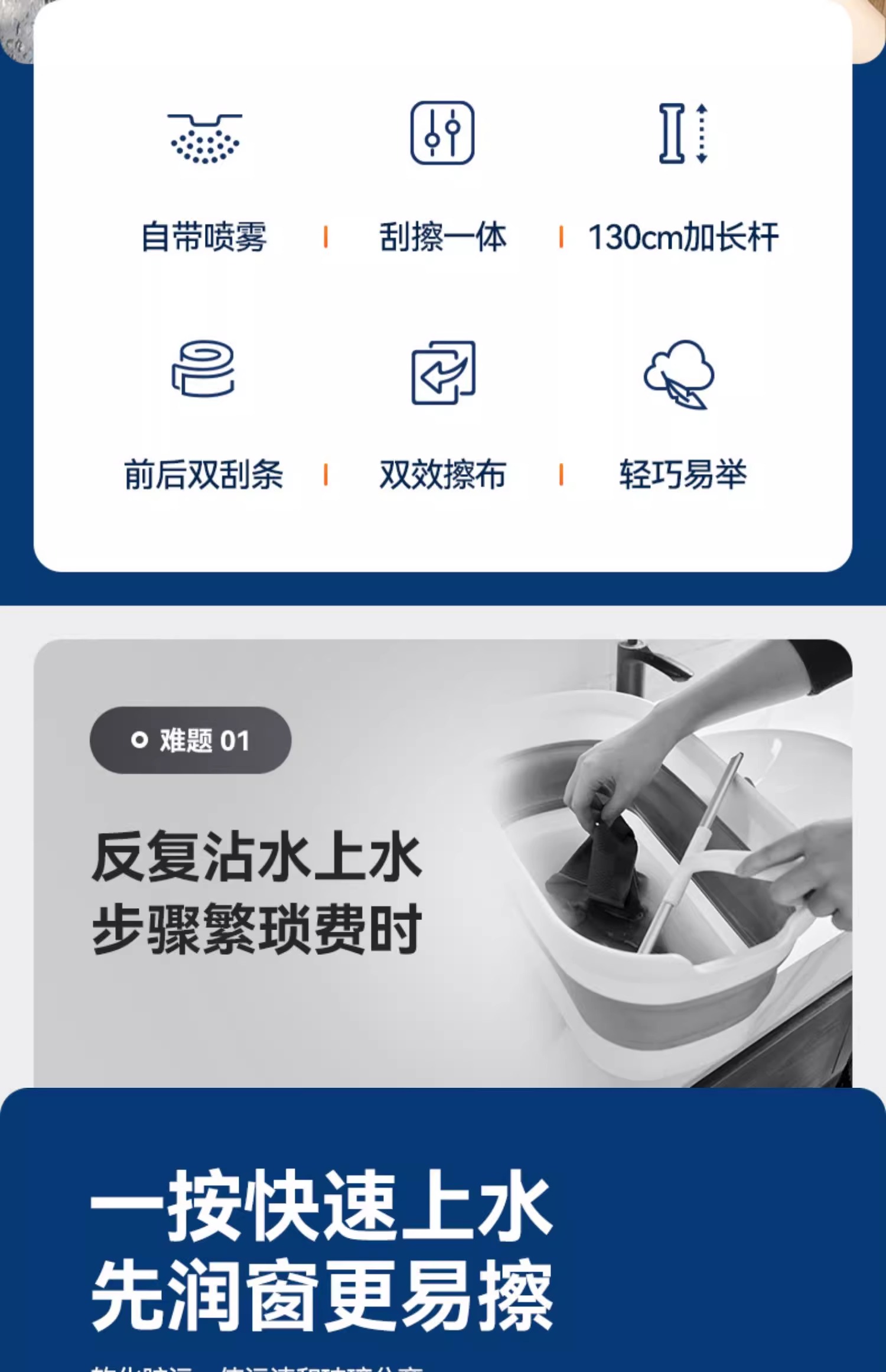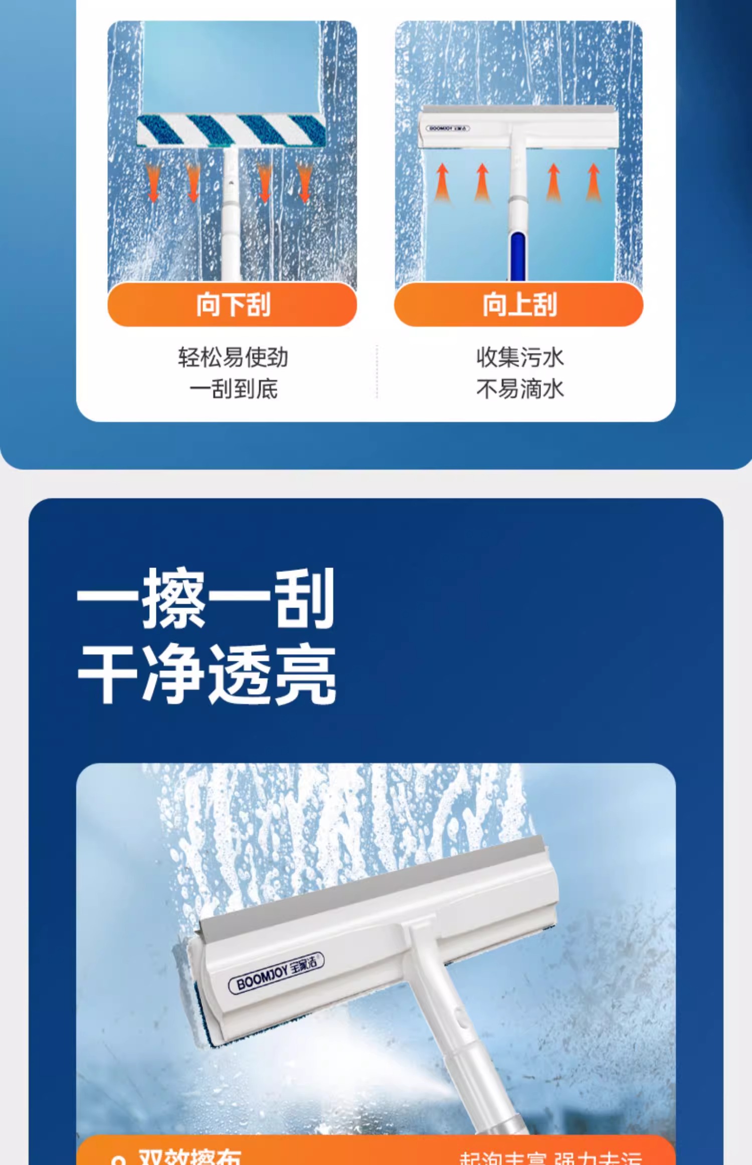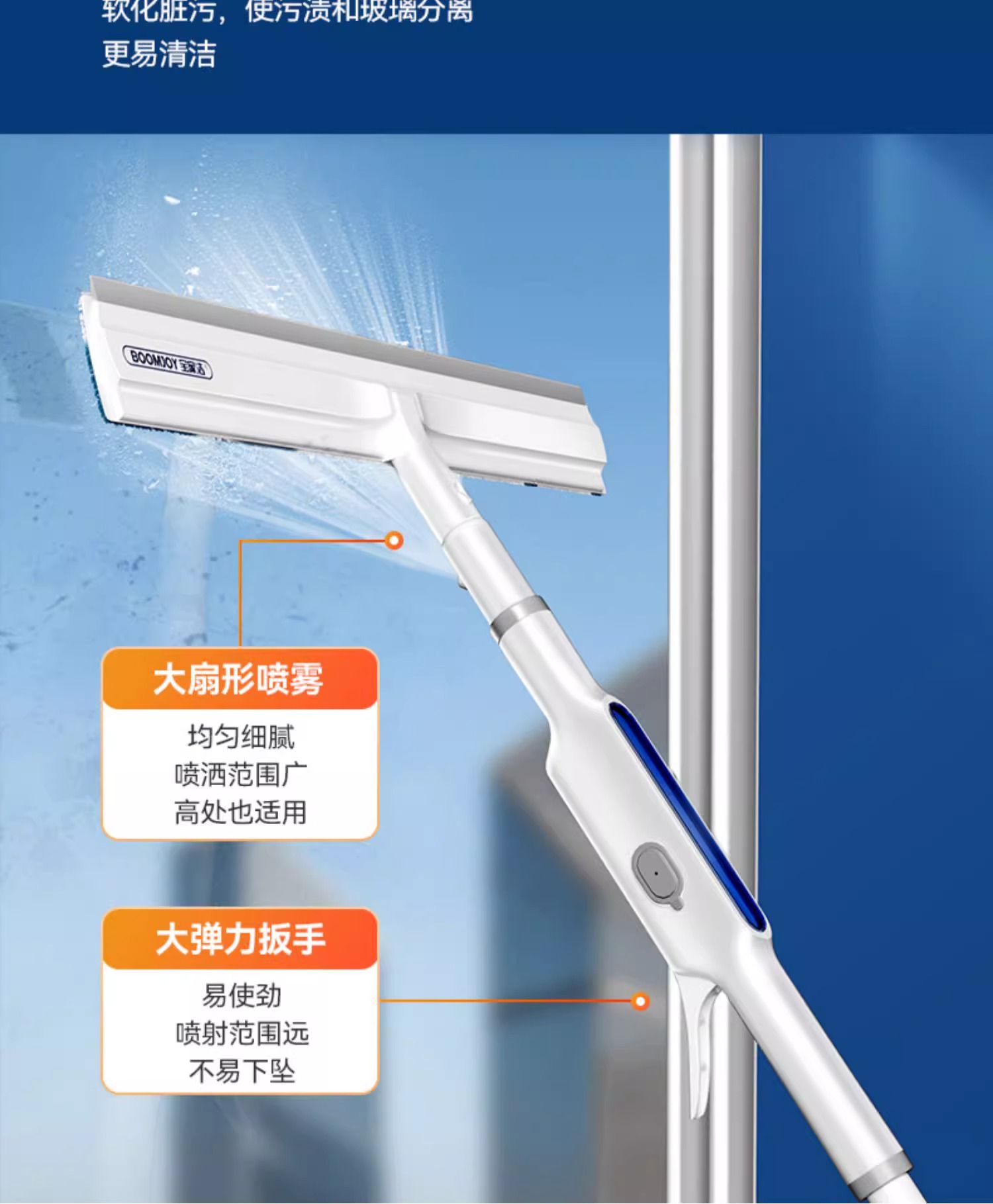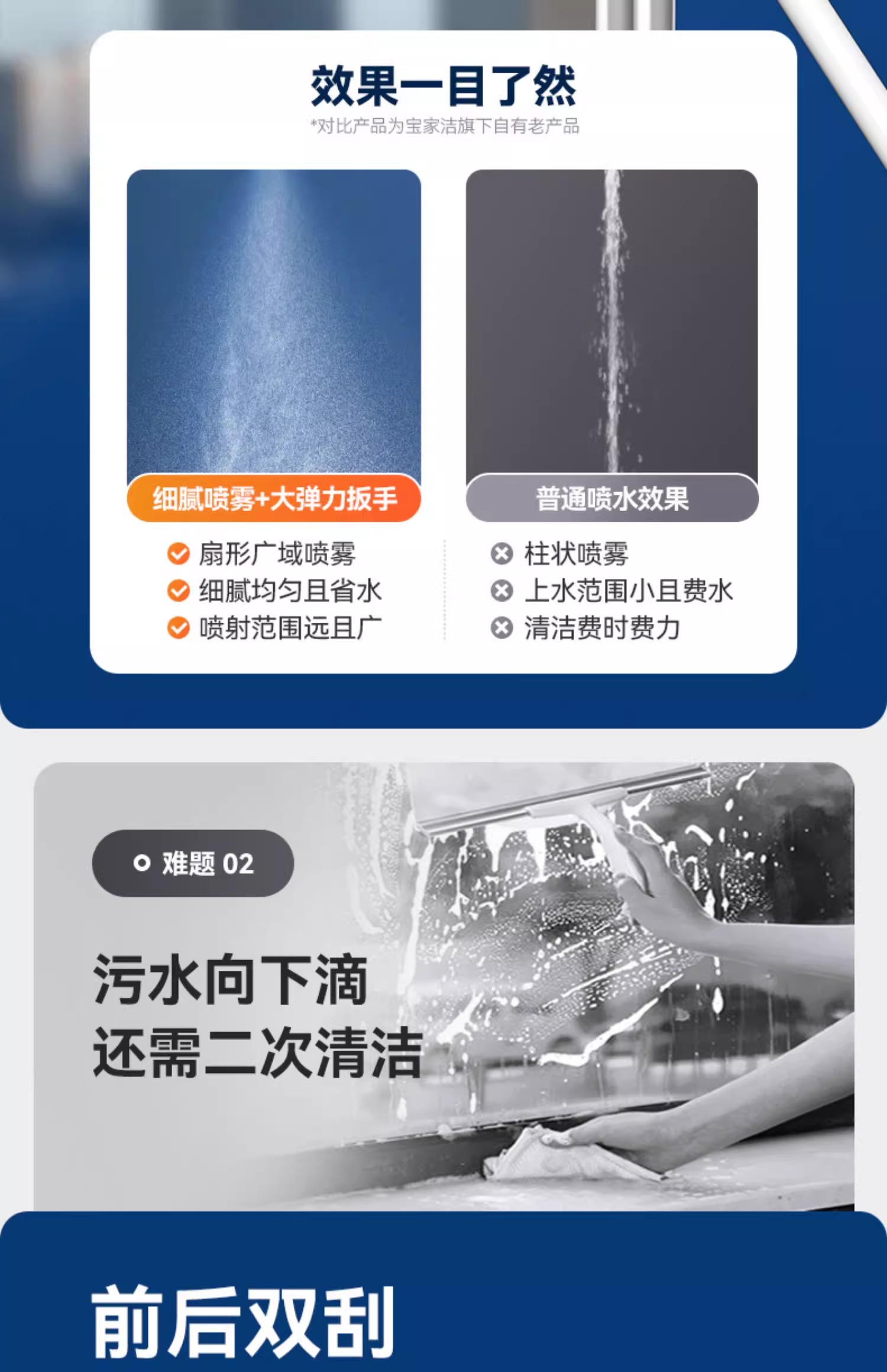 宝家洁 C41喷雾擦窗器 自带喷水 刮擦一体; 前后双刮 不易滴水 商品图3