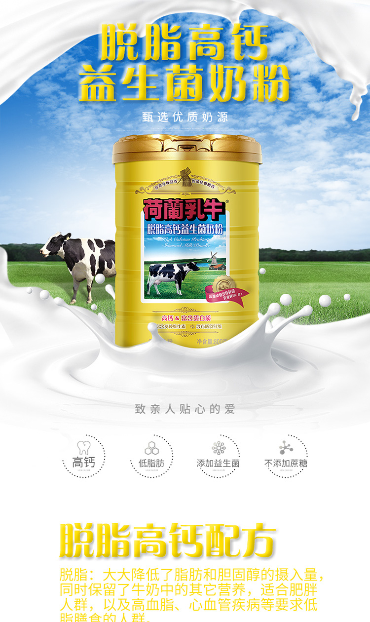 荷兰乳牛脱脂高钙益生菌奶粉800g听 【25年11-12月产】
