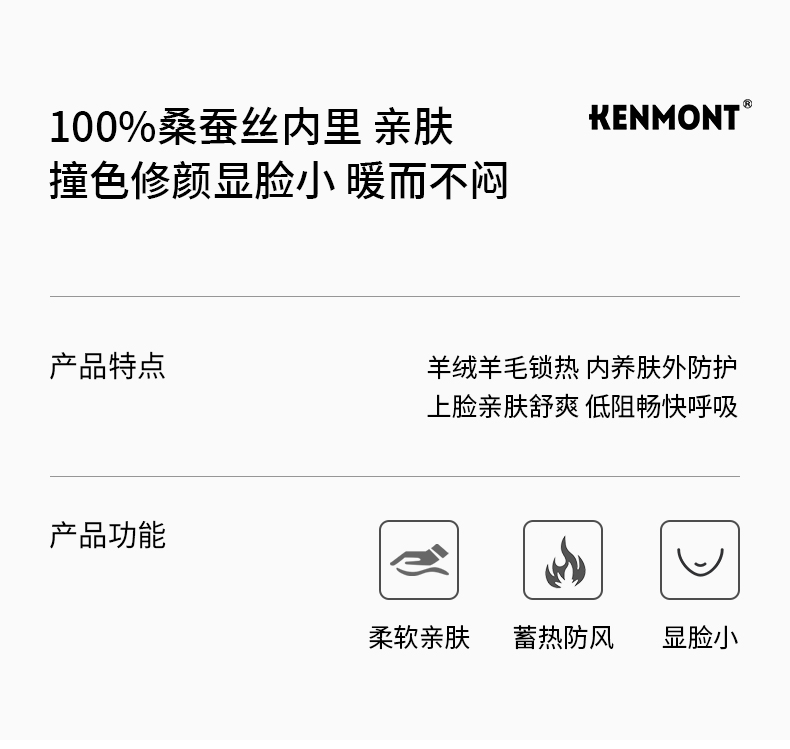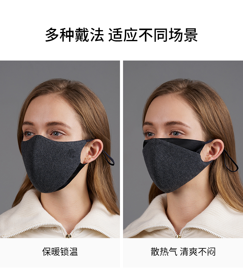 卡蒙羊毛+羊绒保暖口罩 桑蚕丝内里KM-6681