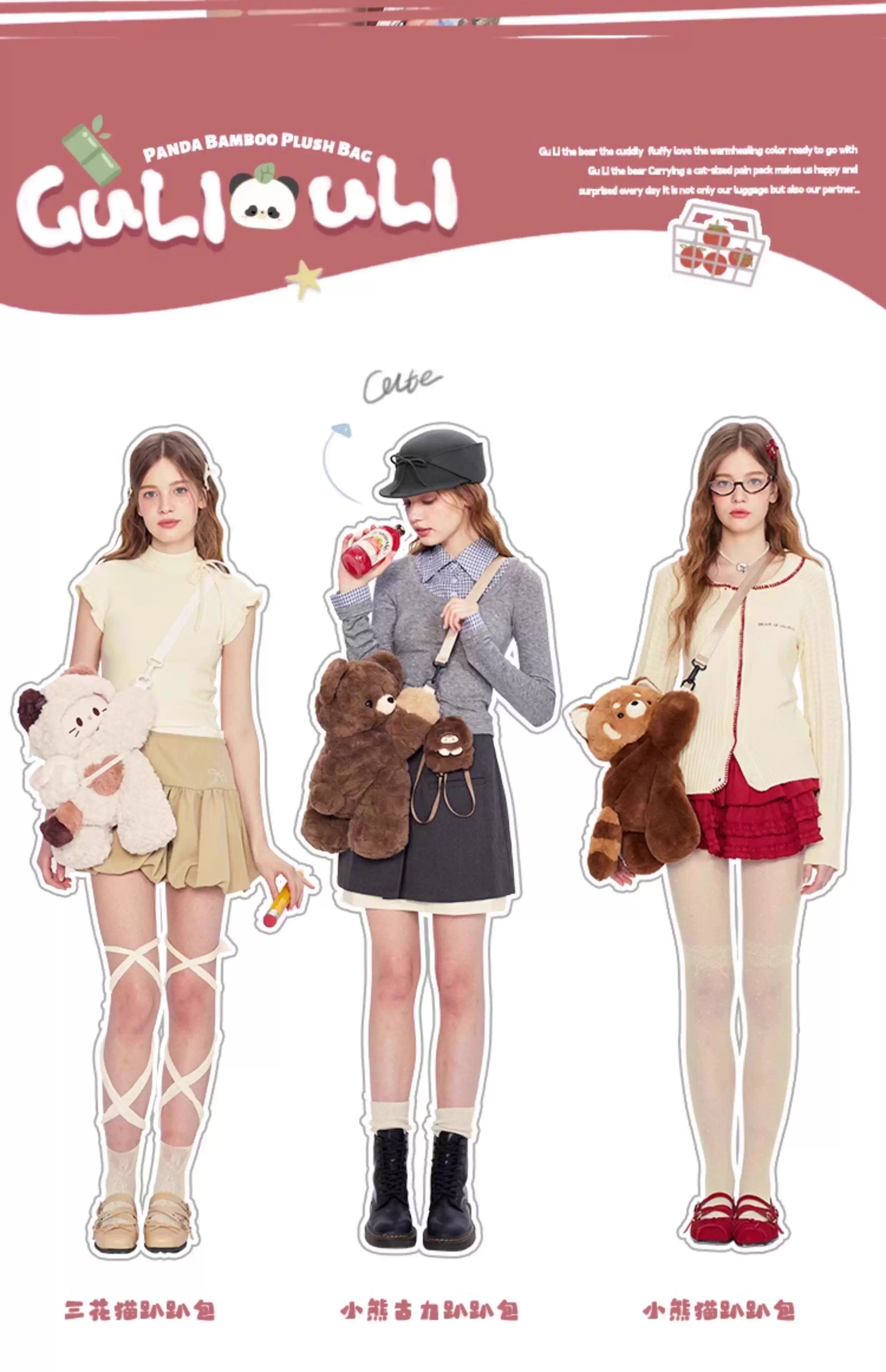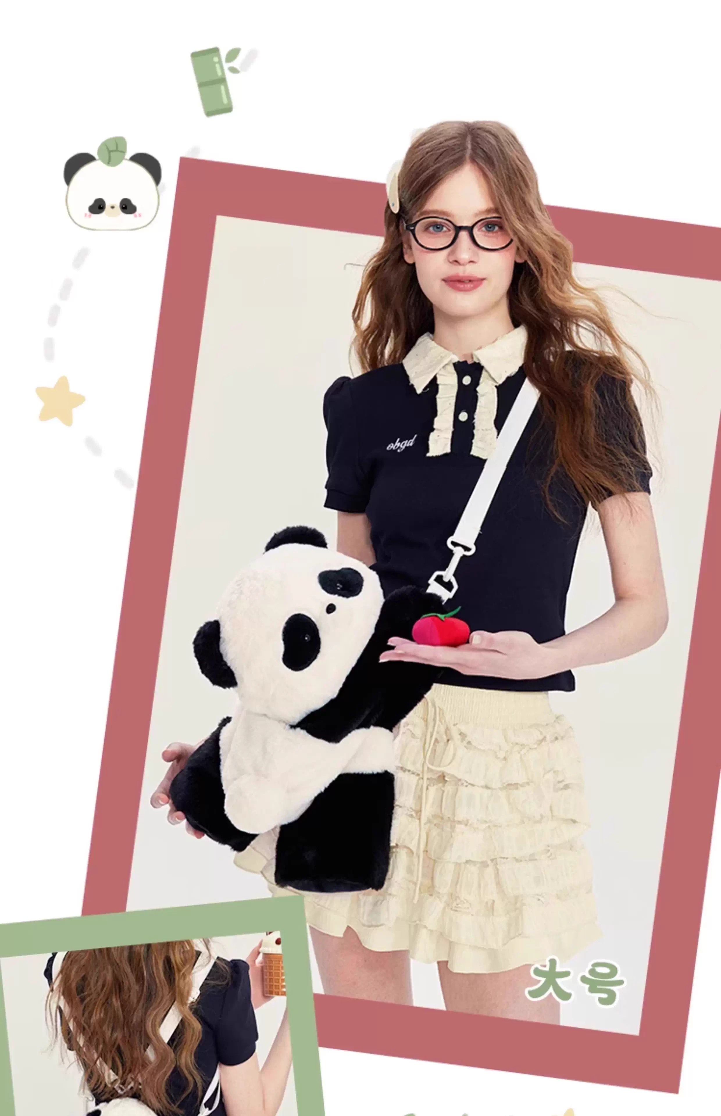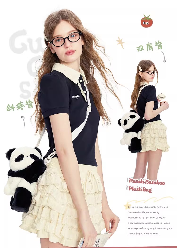 小羊古力熊猫抱竹·毛绒趴趴包(大号)