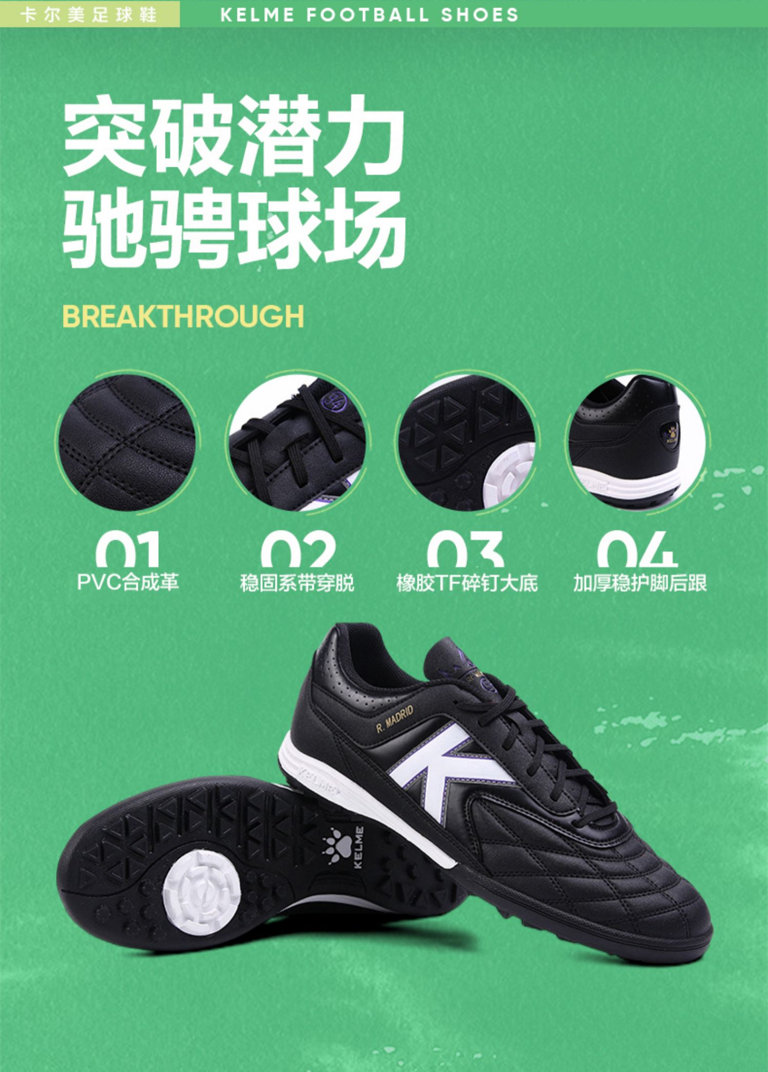 KELME卡尔美足球鞋男女 新款TF碎钉男童运动球鞋小学生儿童训练鞋