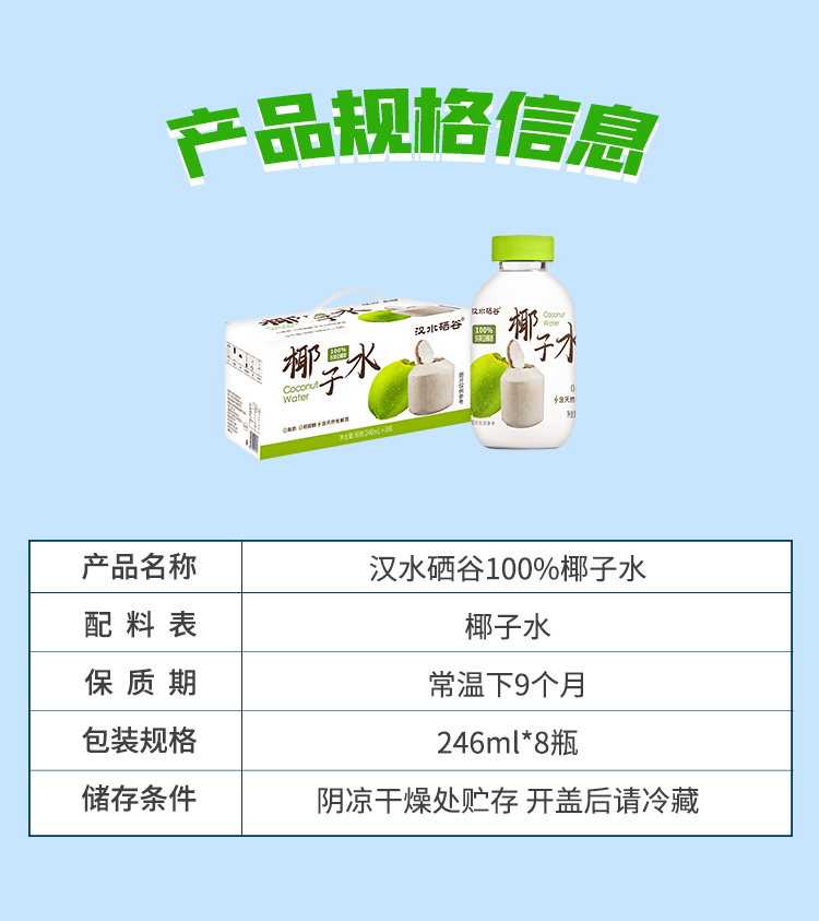 【双12】汉水硒谷·100%椰子水 246ml*8瓶*4箱