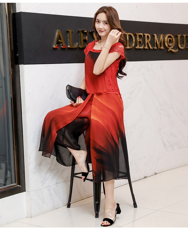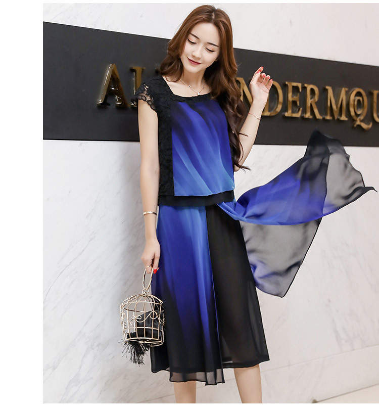 AL SYG8870 新款韩版纯色圆领无袖雪纺时尚套装