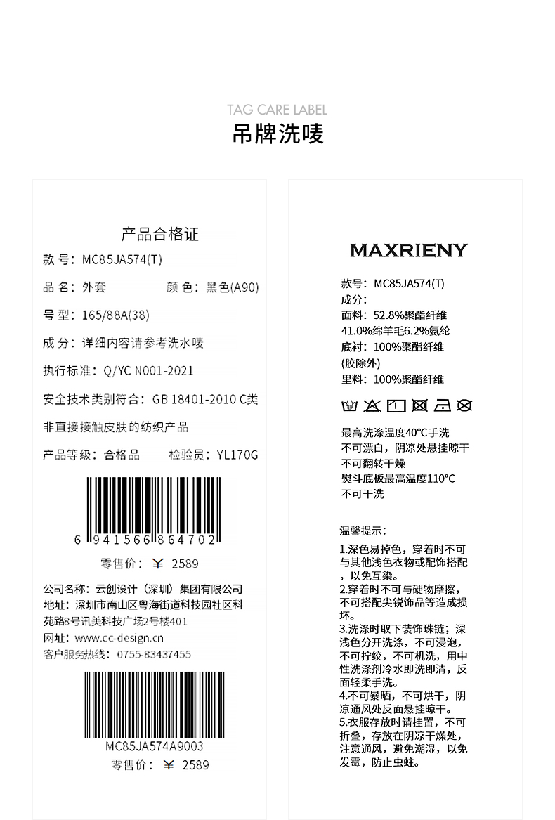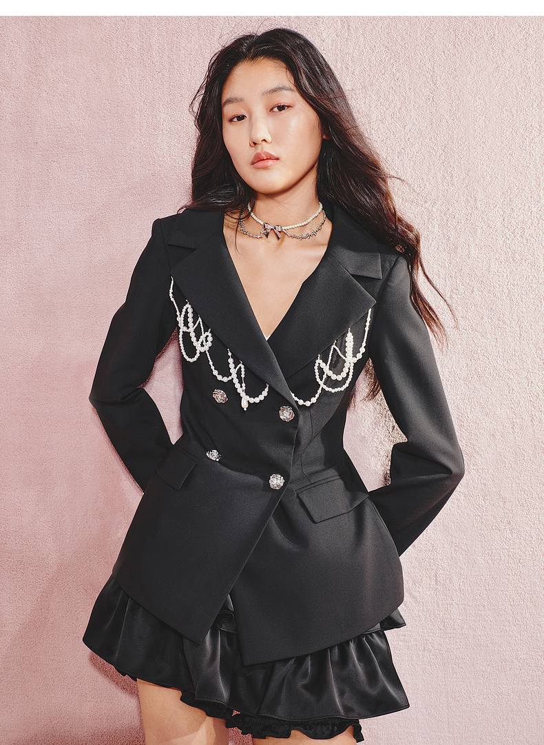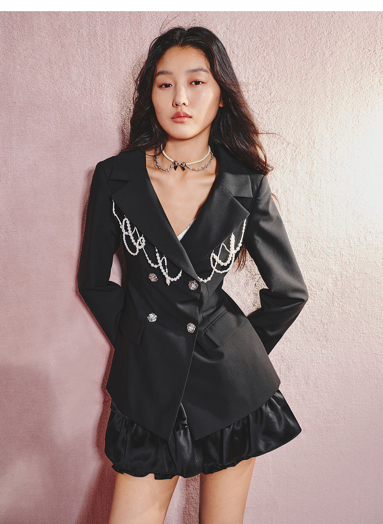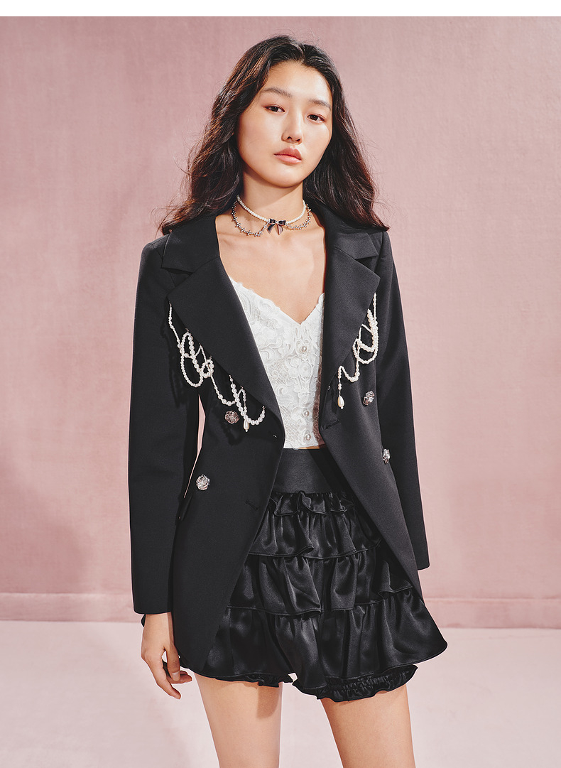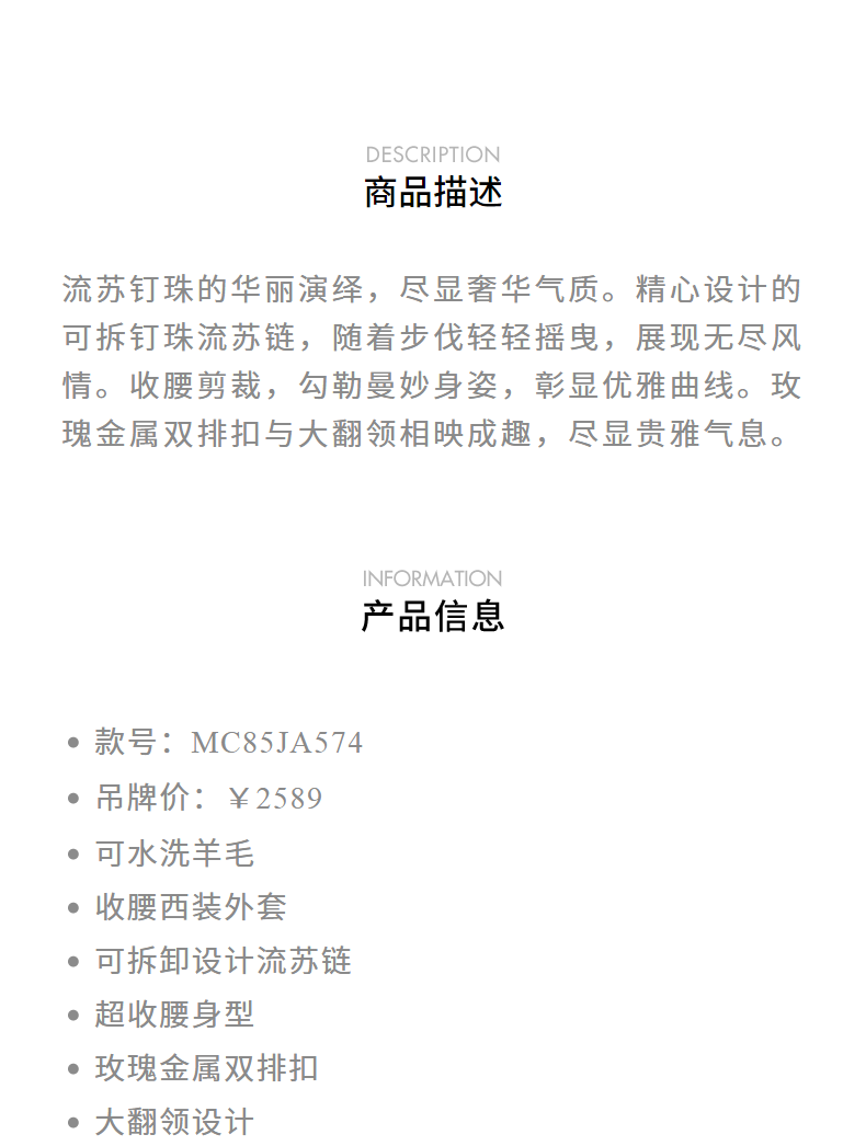 【贵雅日常-商场同款】MAXRIENY*都市感流苏钉珠收腰西装外套(货号:MC85JA574)