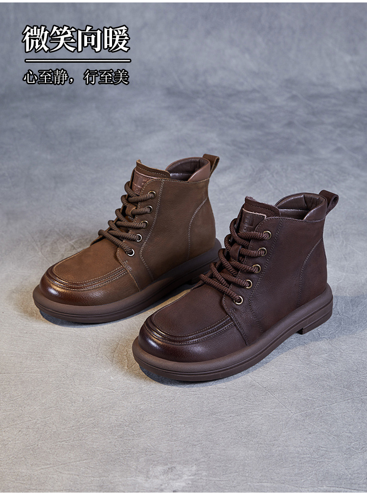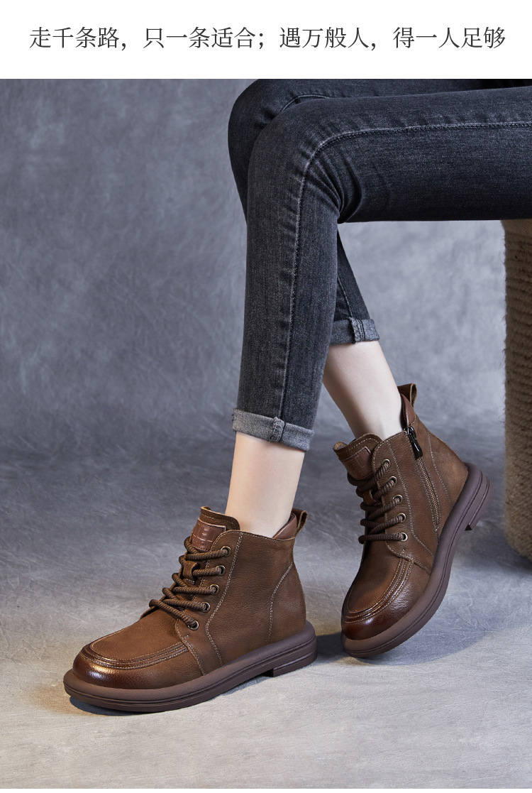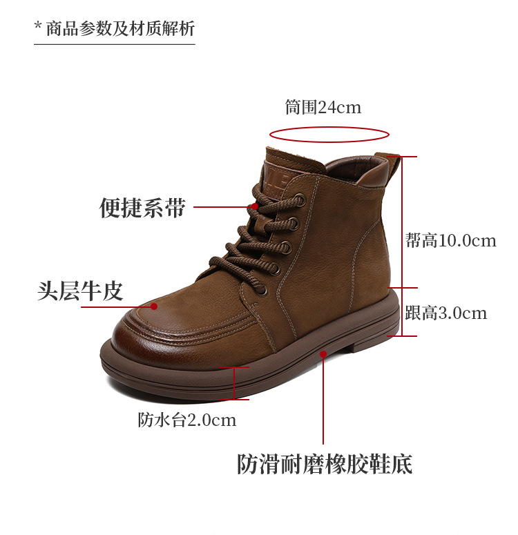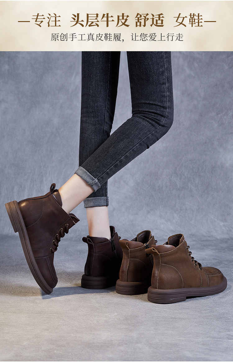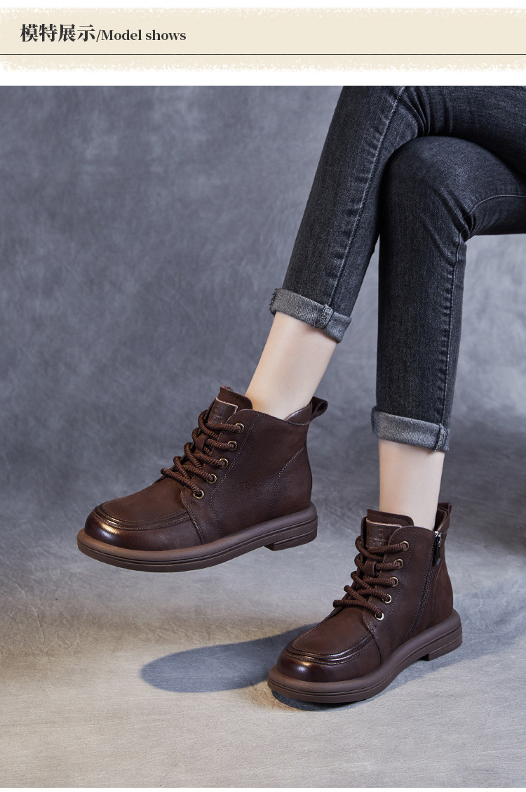 磨砂软皮复古圆头,手工休闲百搭软底系带短靴ZM233526