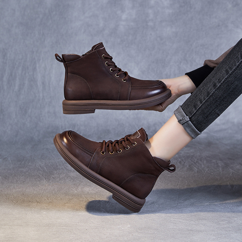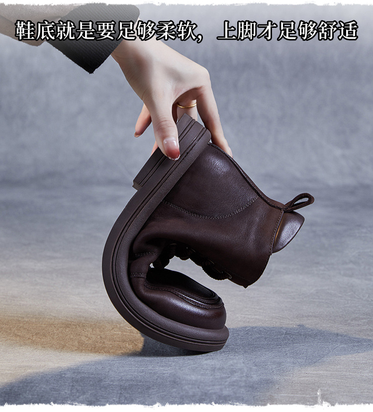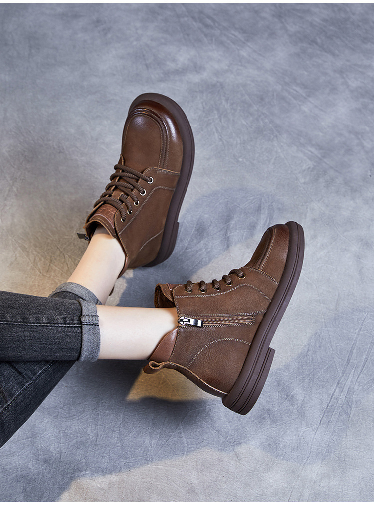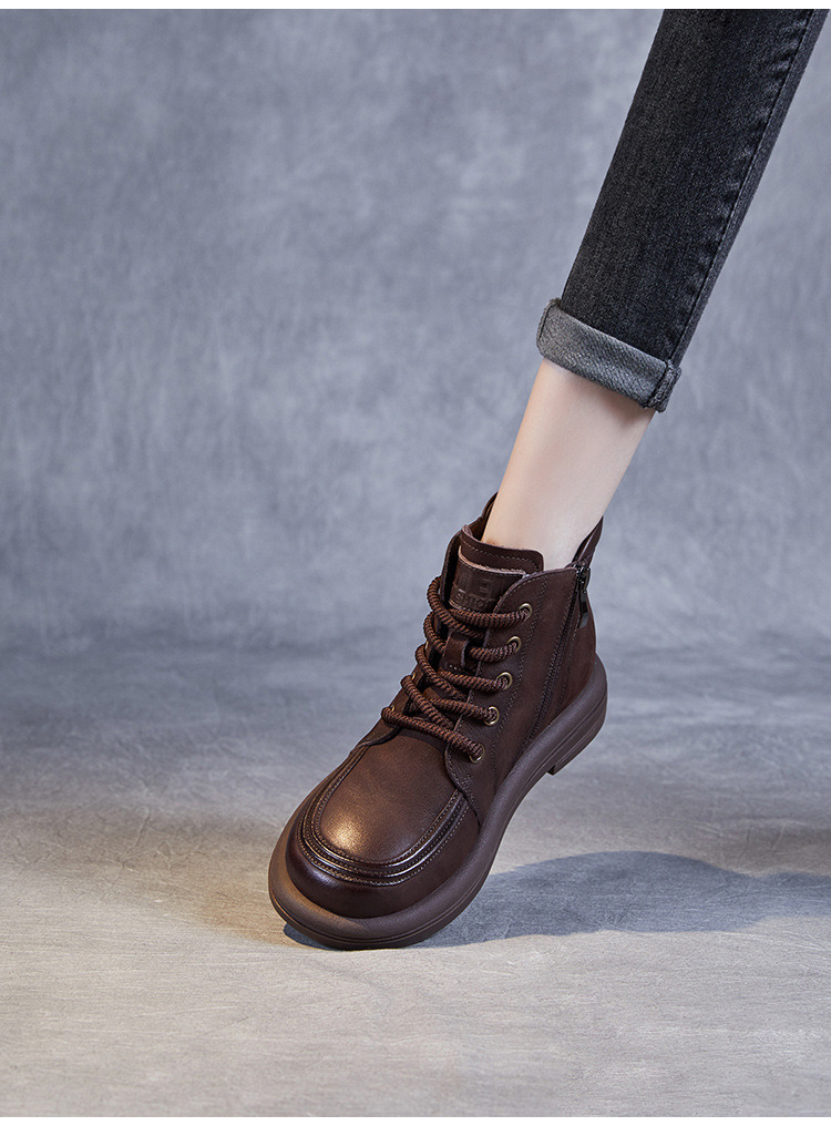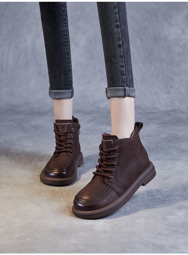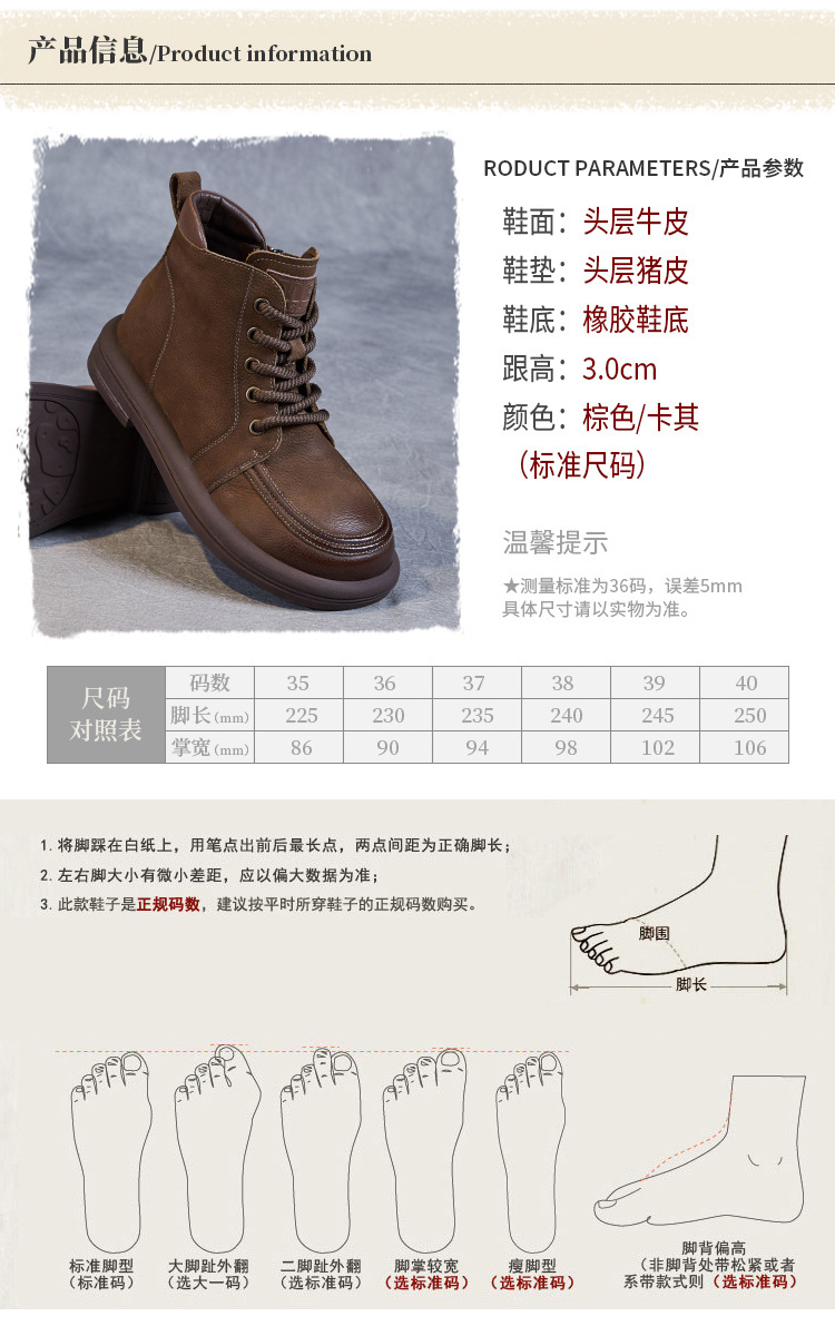 磨砂软皮复古圆头,手工休闲百搭软底系带短靴ZM233526