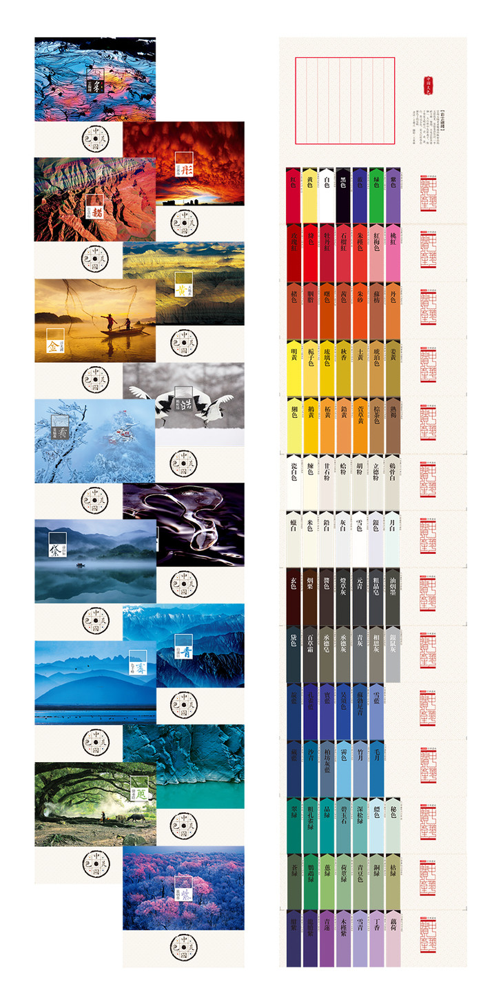 从1000余张中国山水图片中甄选出29张代表五色系统的精美图片