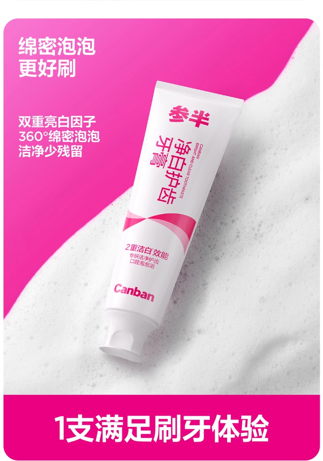 【华晨宇代言】【到手3支】参半 净白护齿牙膏60g/支*3支(效期26年5月)