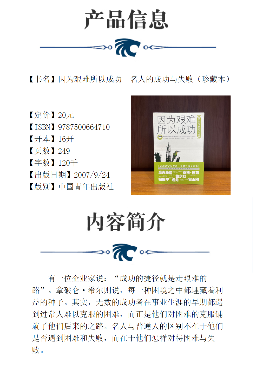 因为艰难所以成功--名人的成功与失败(珍藏本)《青年文摘·人物版》编辑部 编 中国青年出版社