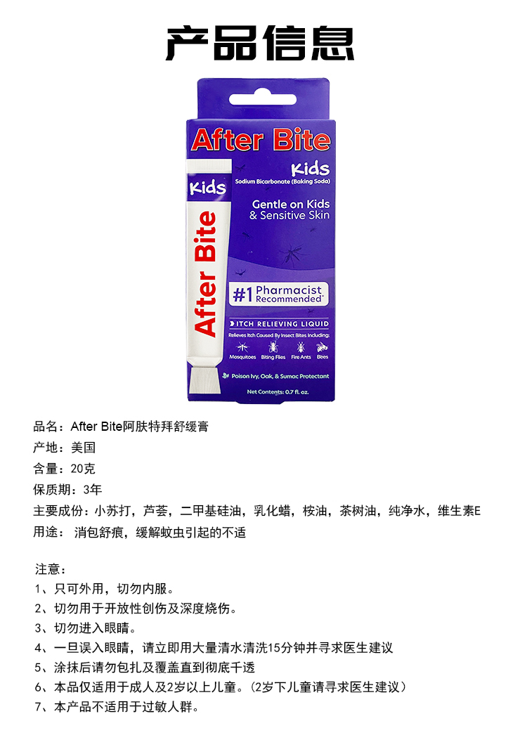AfterBite/阿肤特拜儿童舒缓膏20g/支