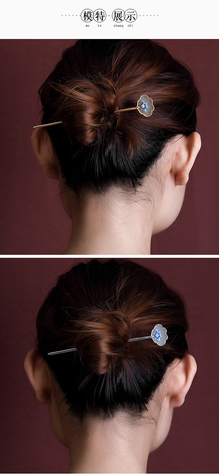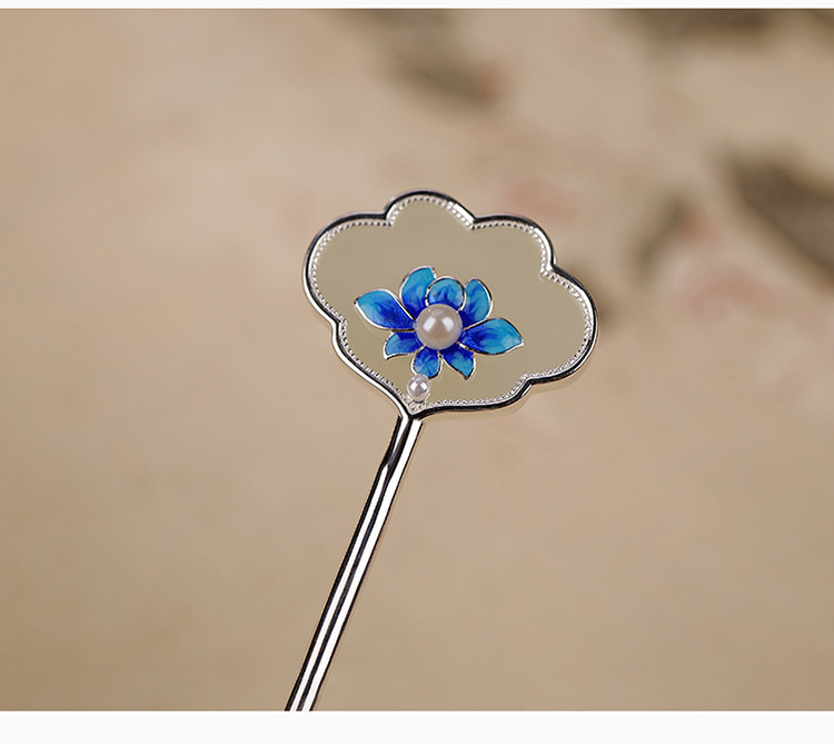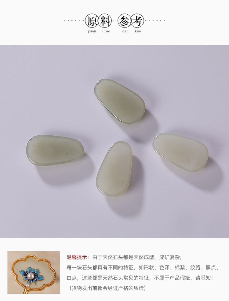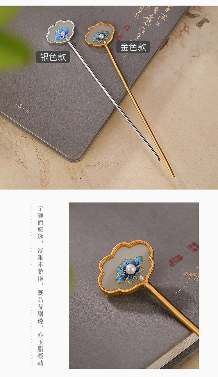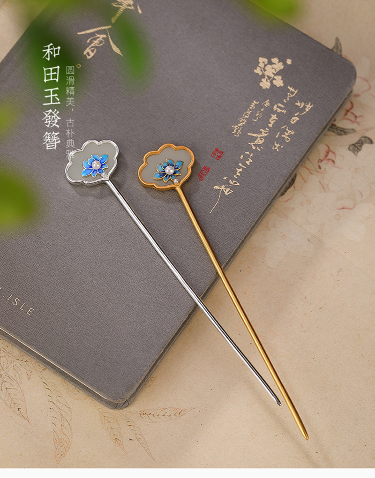 S925纯银镀金和田玉复古珍珠莲花发簪气质优雅盘发头饰 CW250