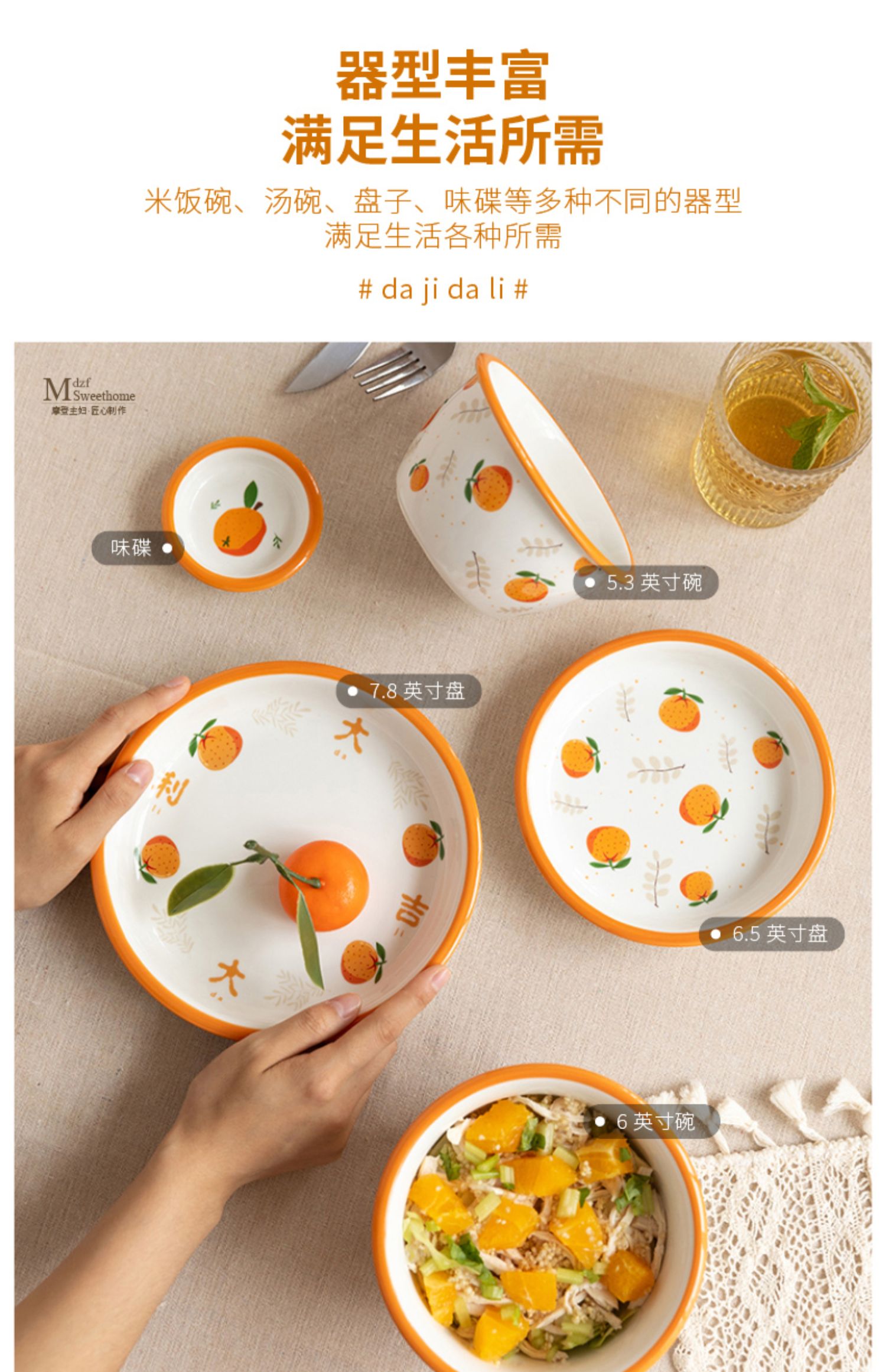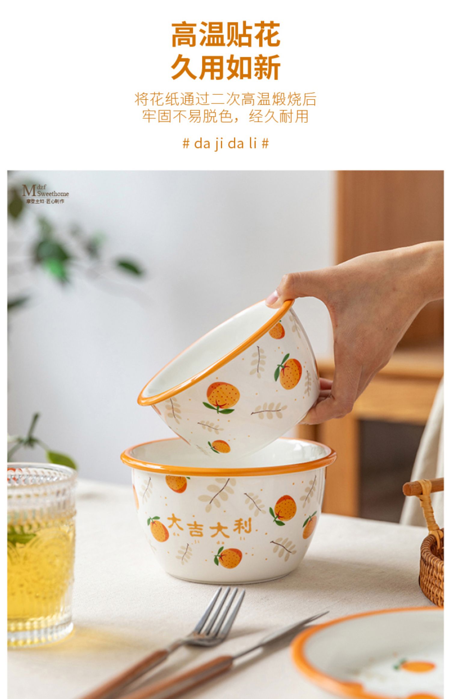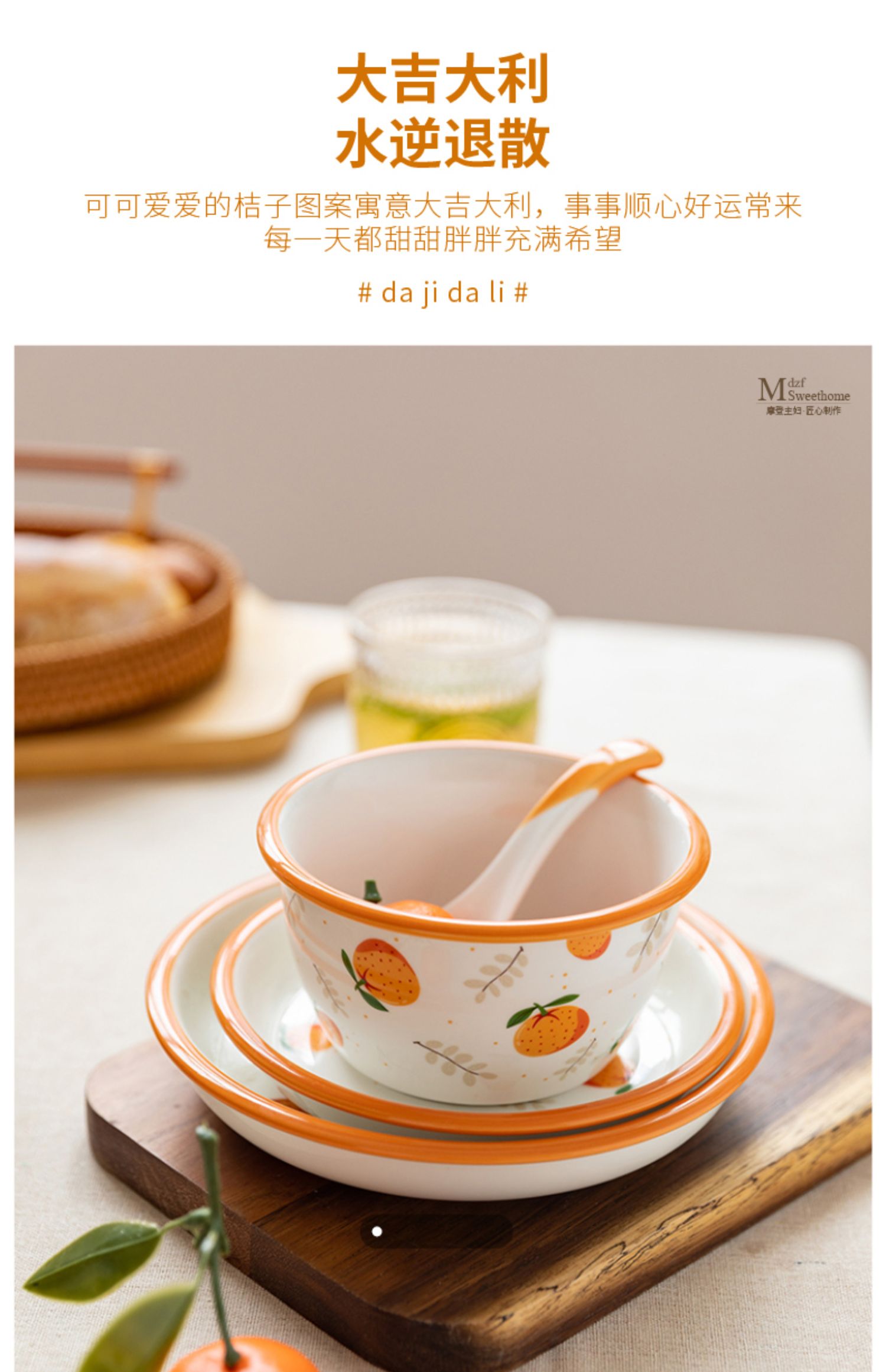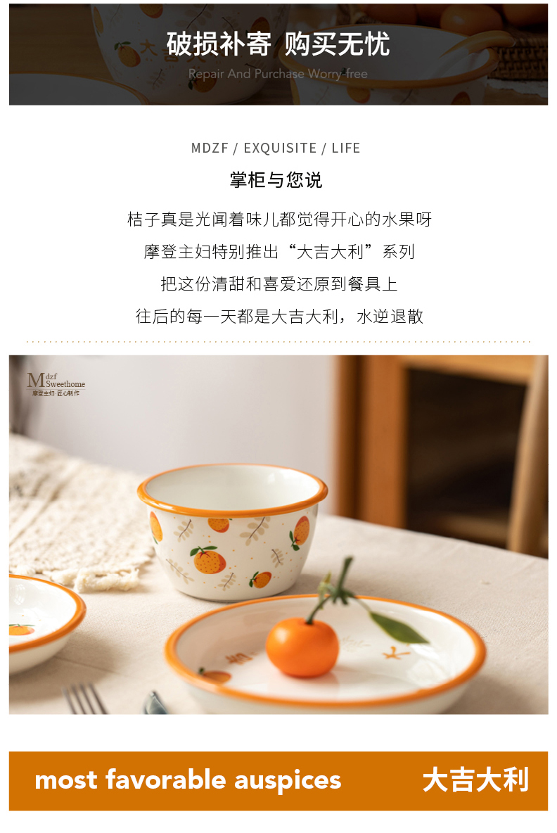 摩登主妇原创大吉大利碗碟餐具可爱陶瓷饭碗汤碗杯子家用网红碗盘