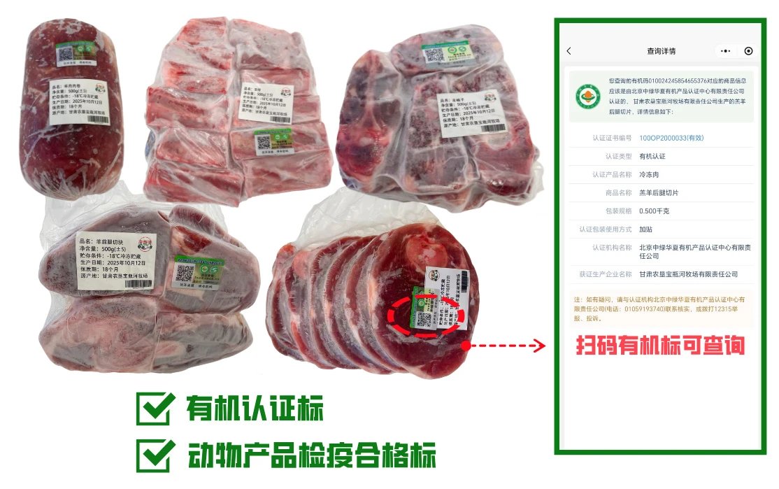 扫一扫有机标上的二维码,可查询溯源每一块羊肉