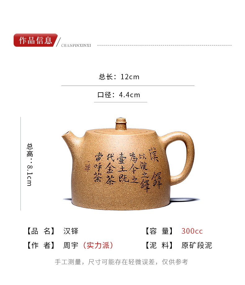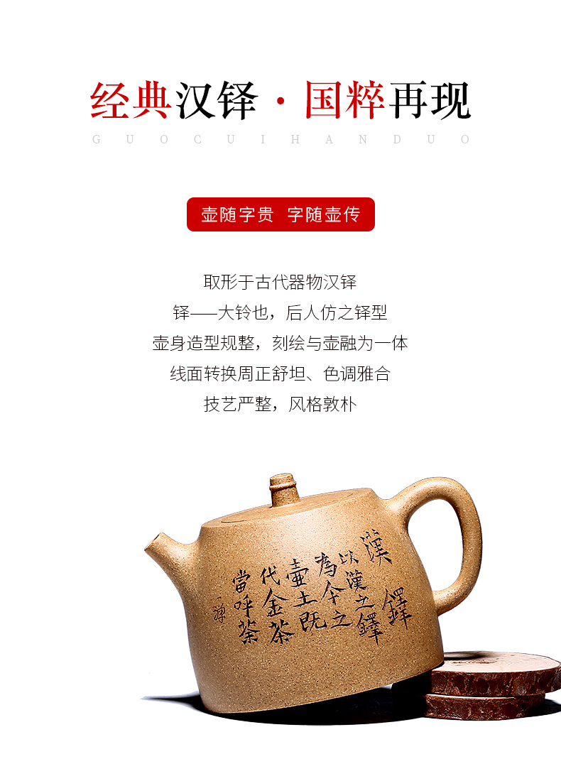 茶具 紫砂壶 宜兴紫砂 名家全手工泡茶壶 茶具套装 餐饮用具 和泥有缘 原矿段泥 汉铎 300cc