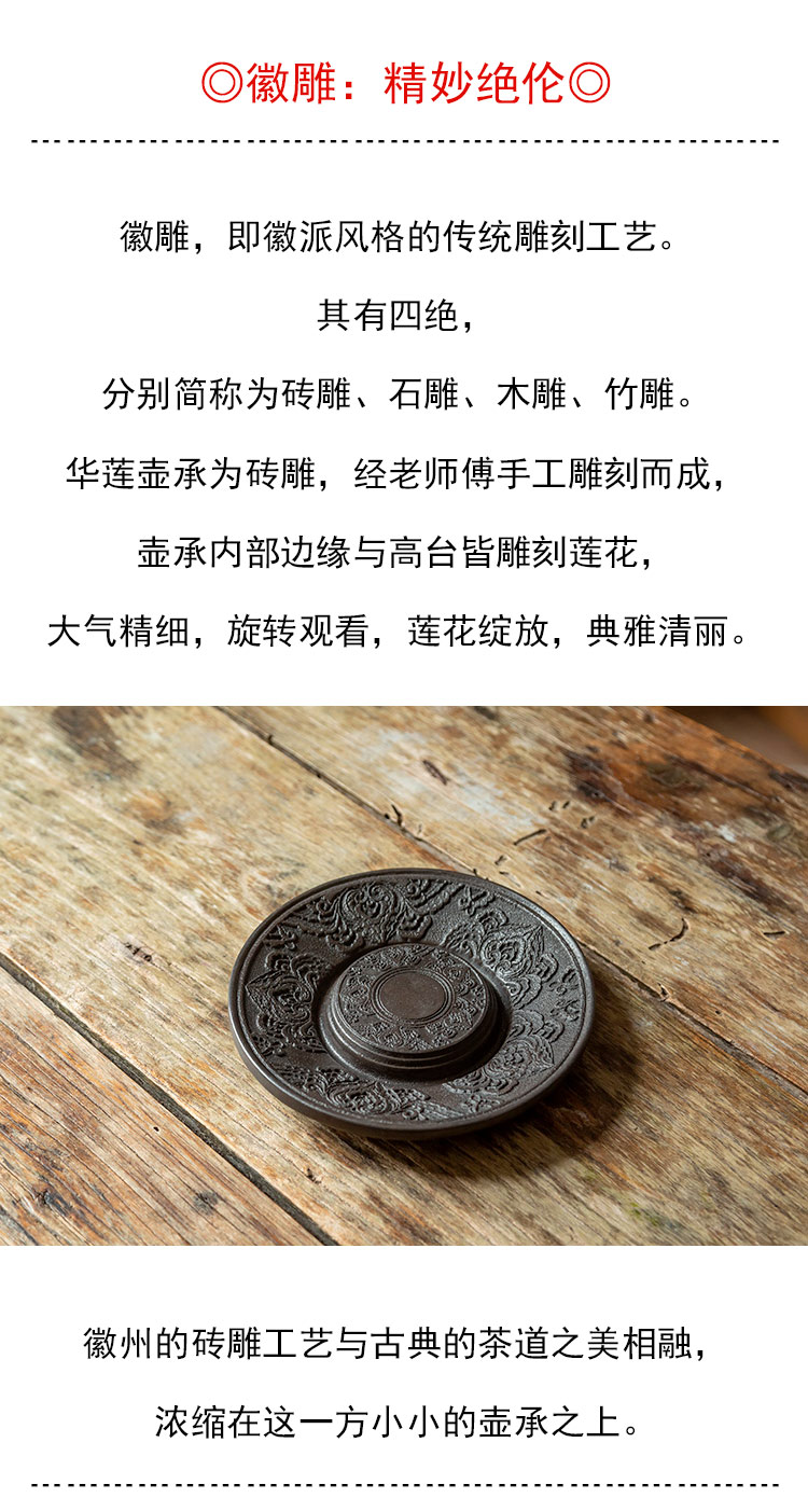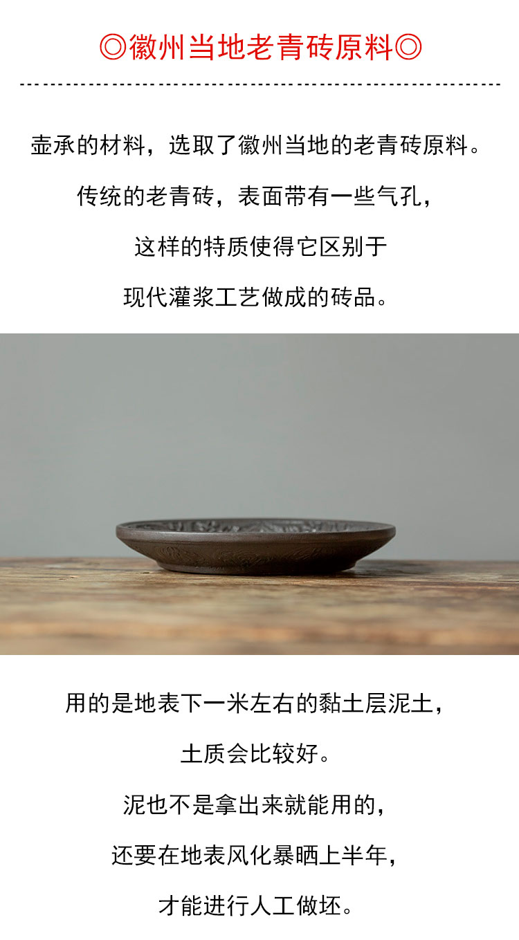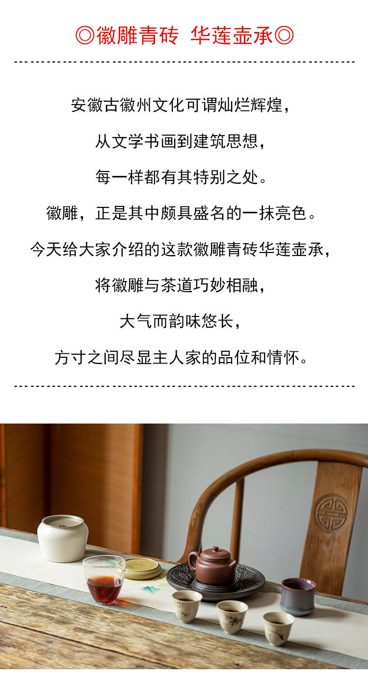 茶香记 徽雕青砖华莲壶承刻绘干泡台徽州当地老青砖原料茶桌零配