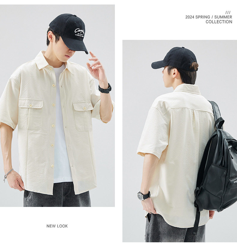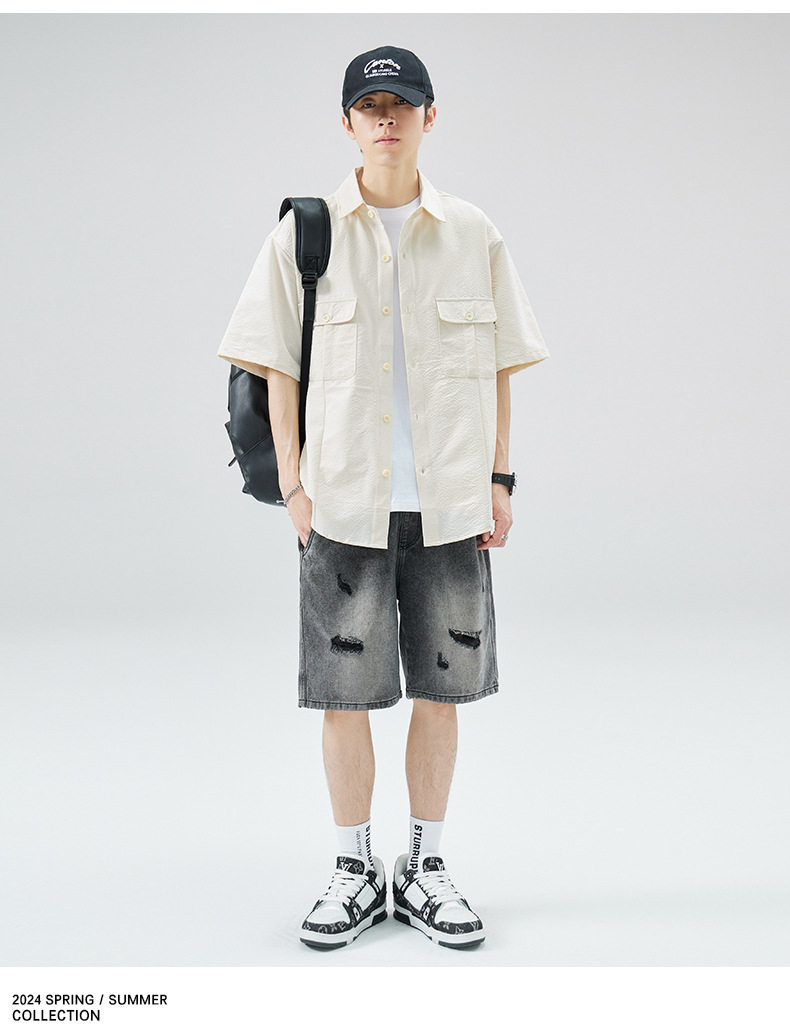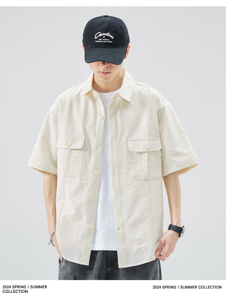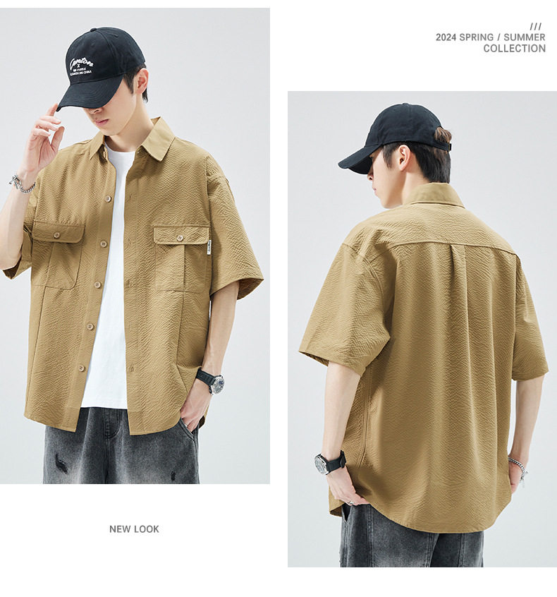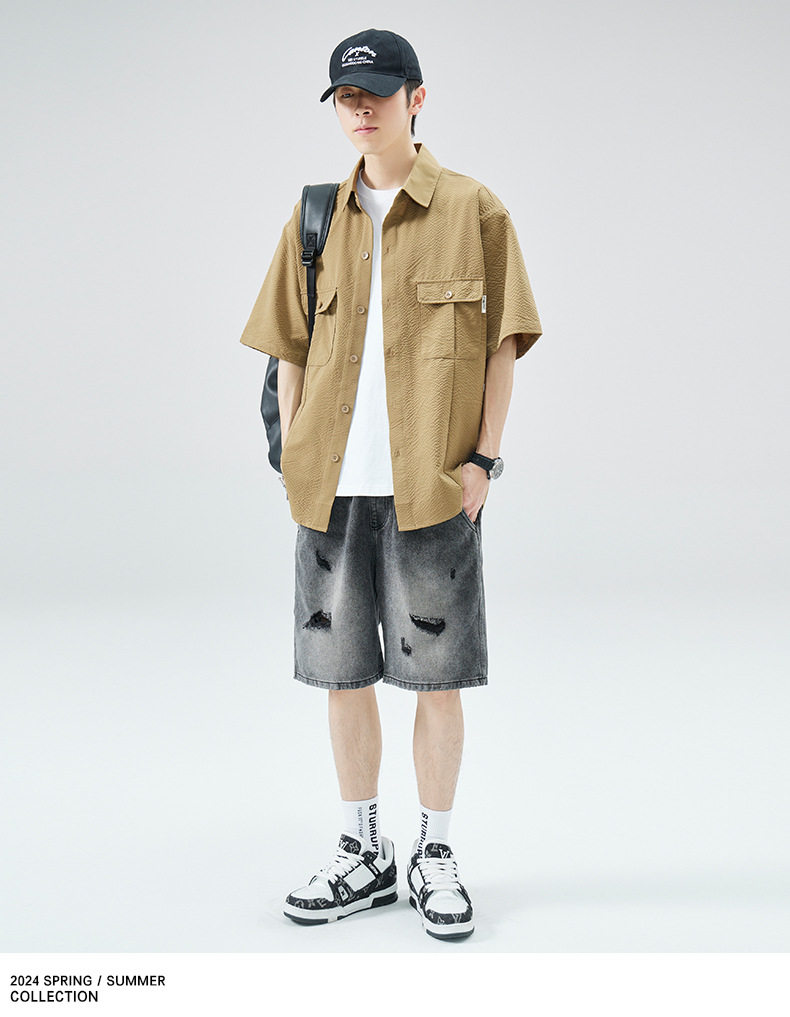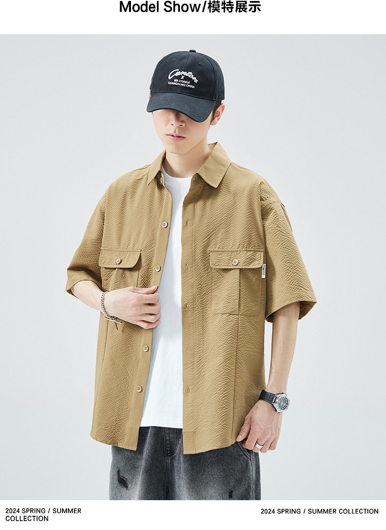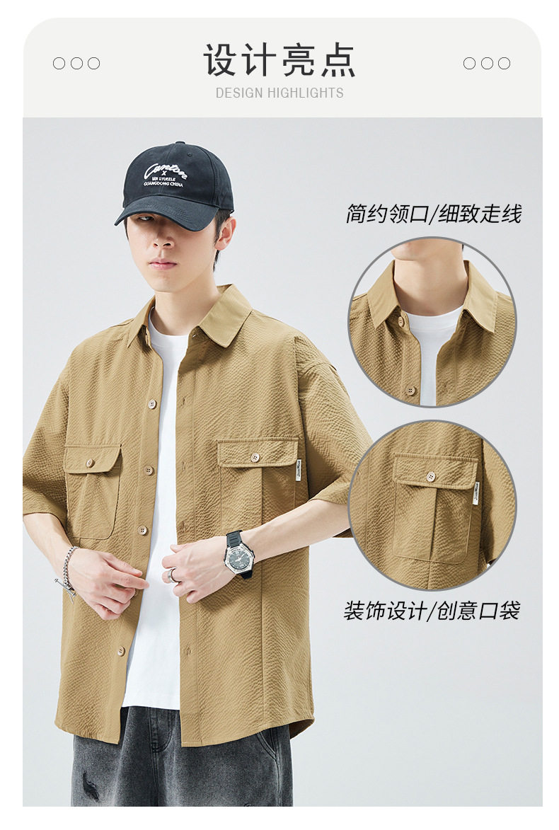 工装短袖衬衫男痞帅ins潮牌日系宽松设计感美式衬衣 AY-D1105
