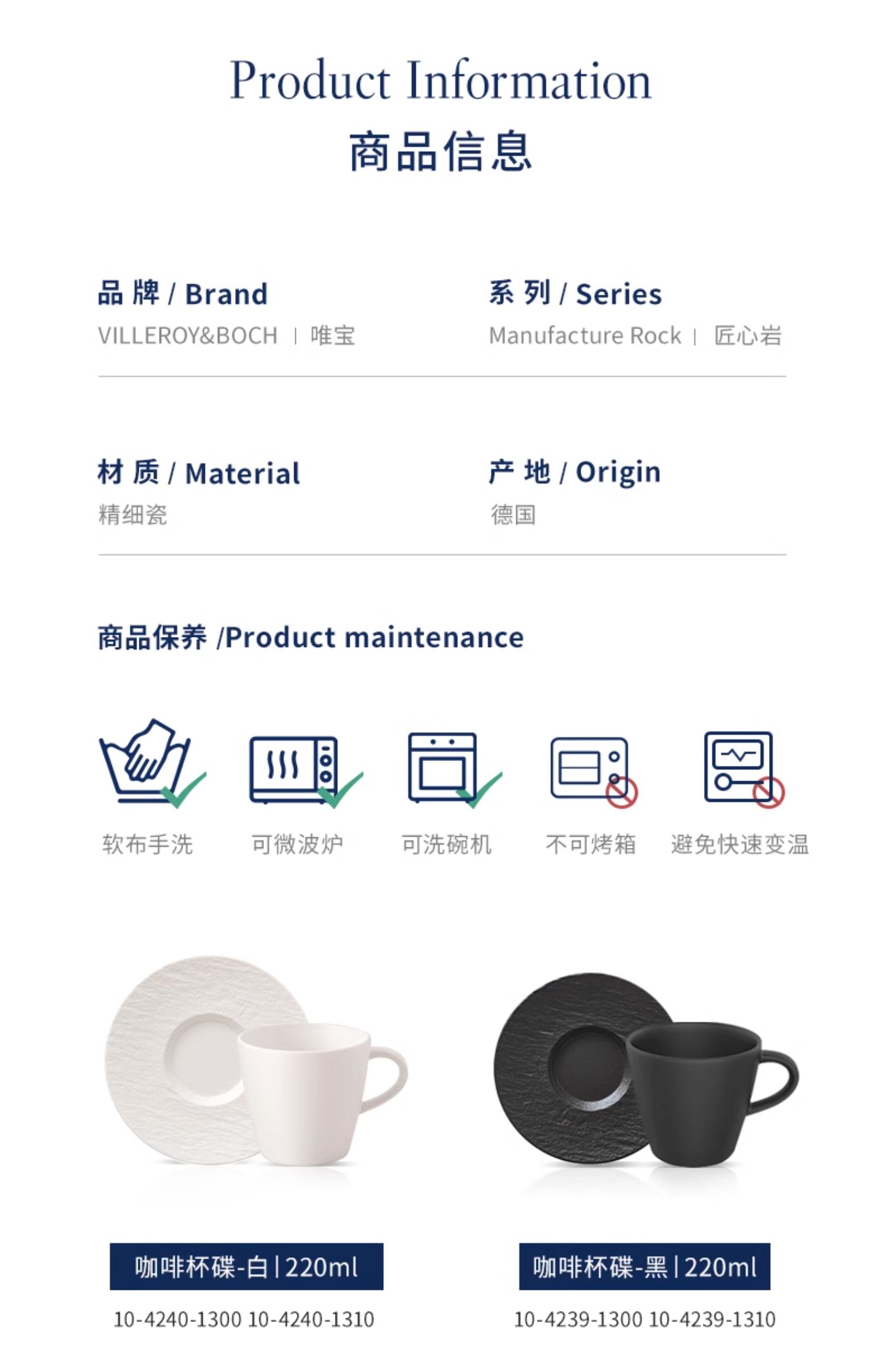 【VilleroyBoch 德国唯宝】Rock匠心岩进口创意咖啡杯碟220ml