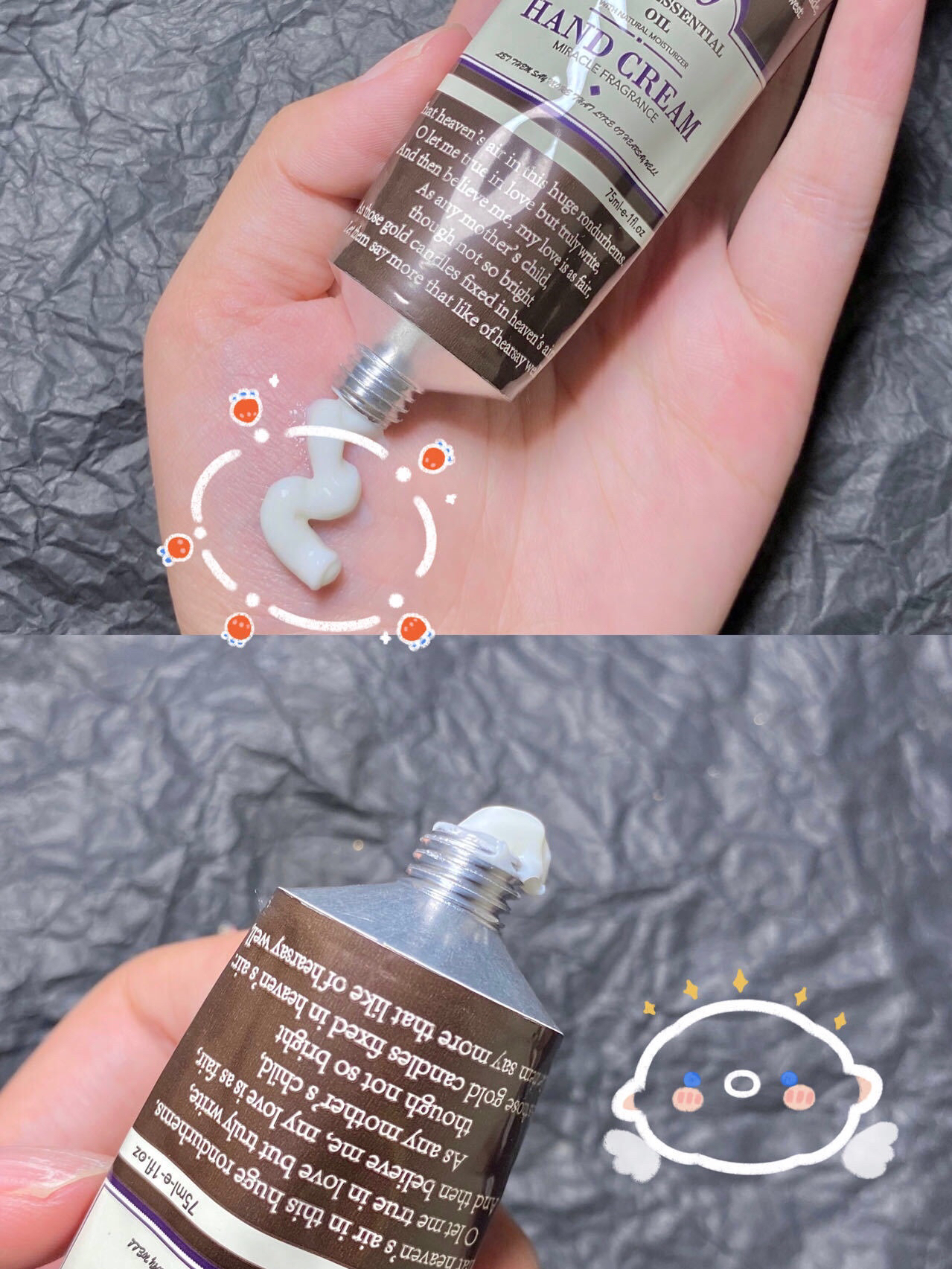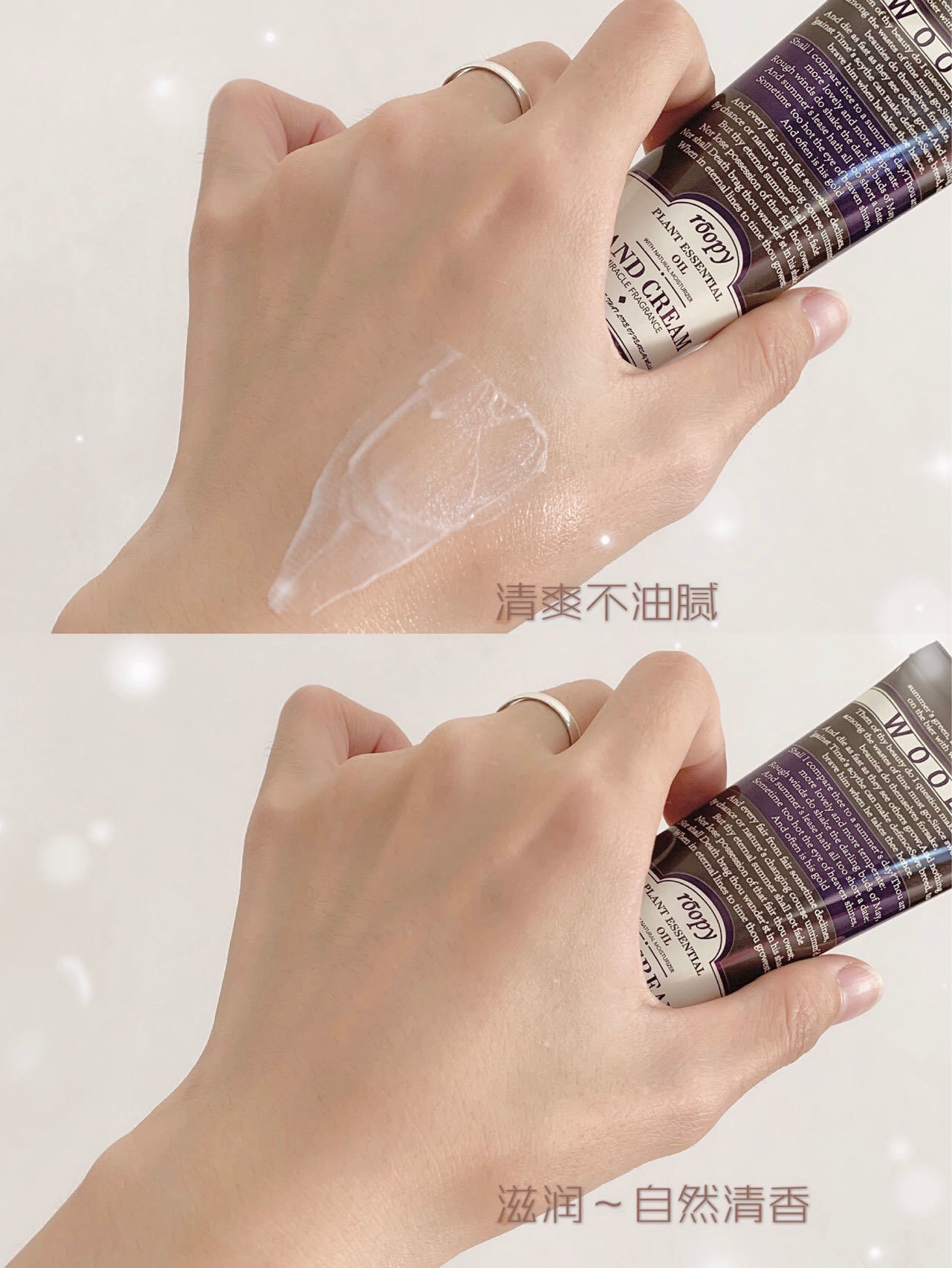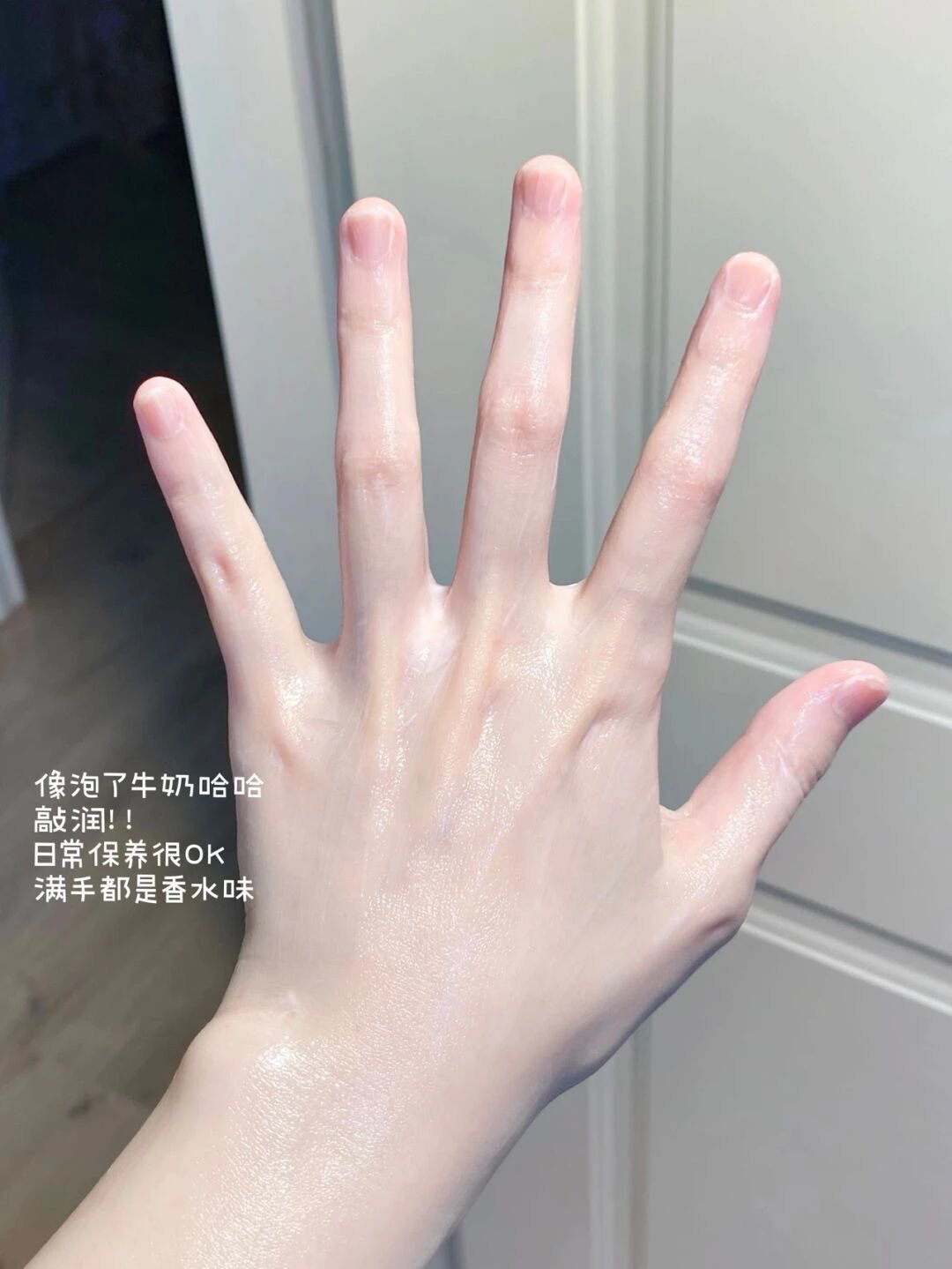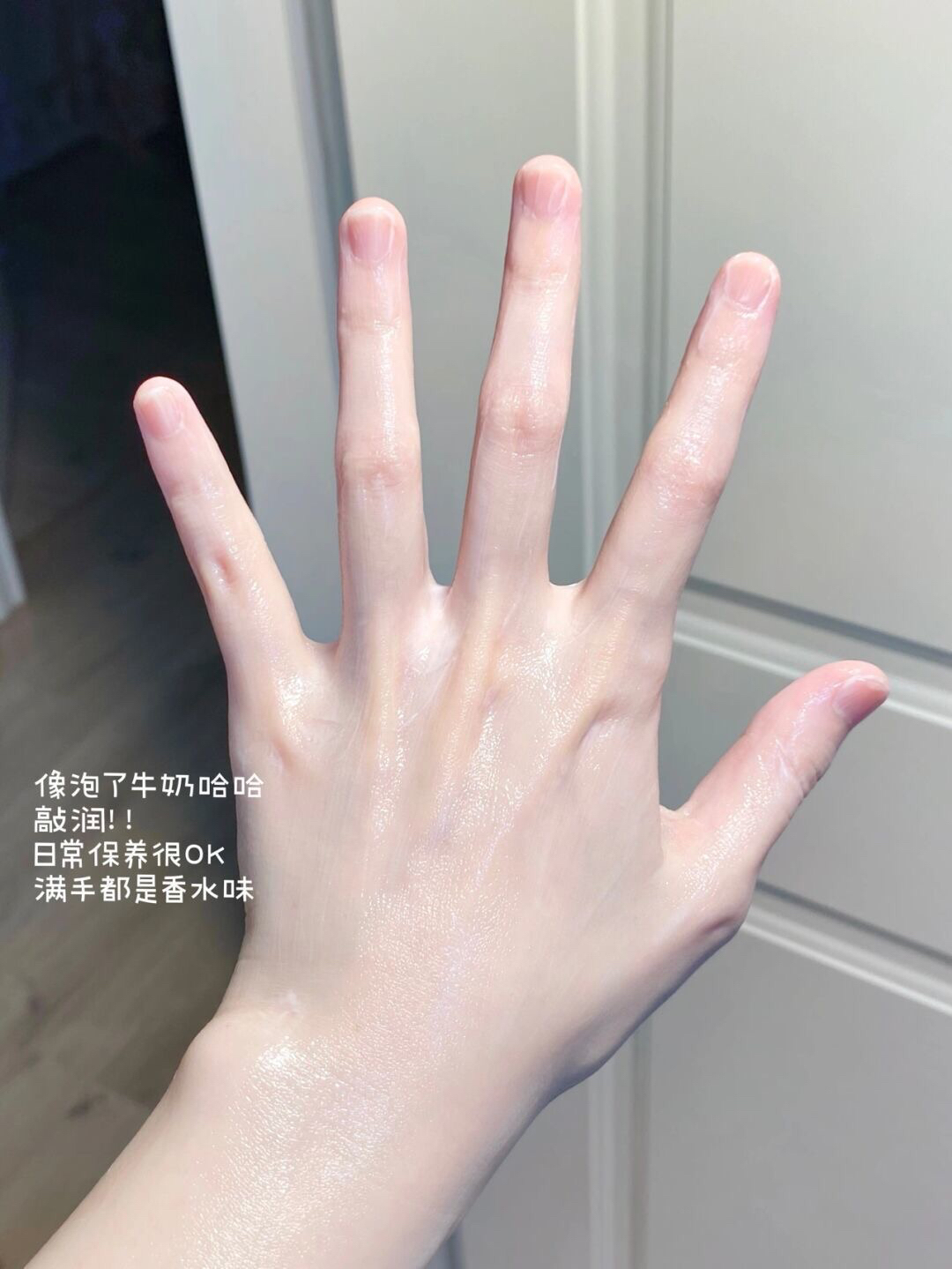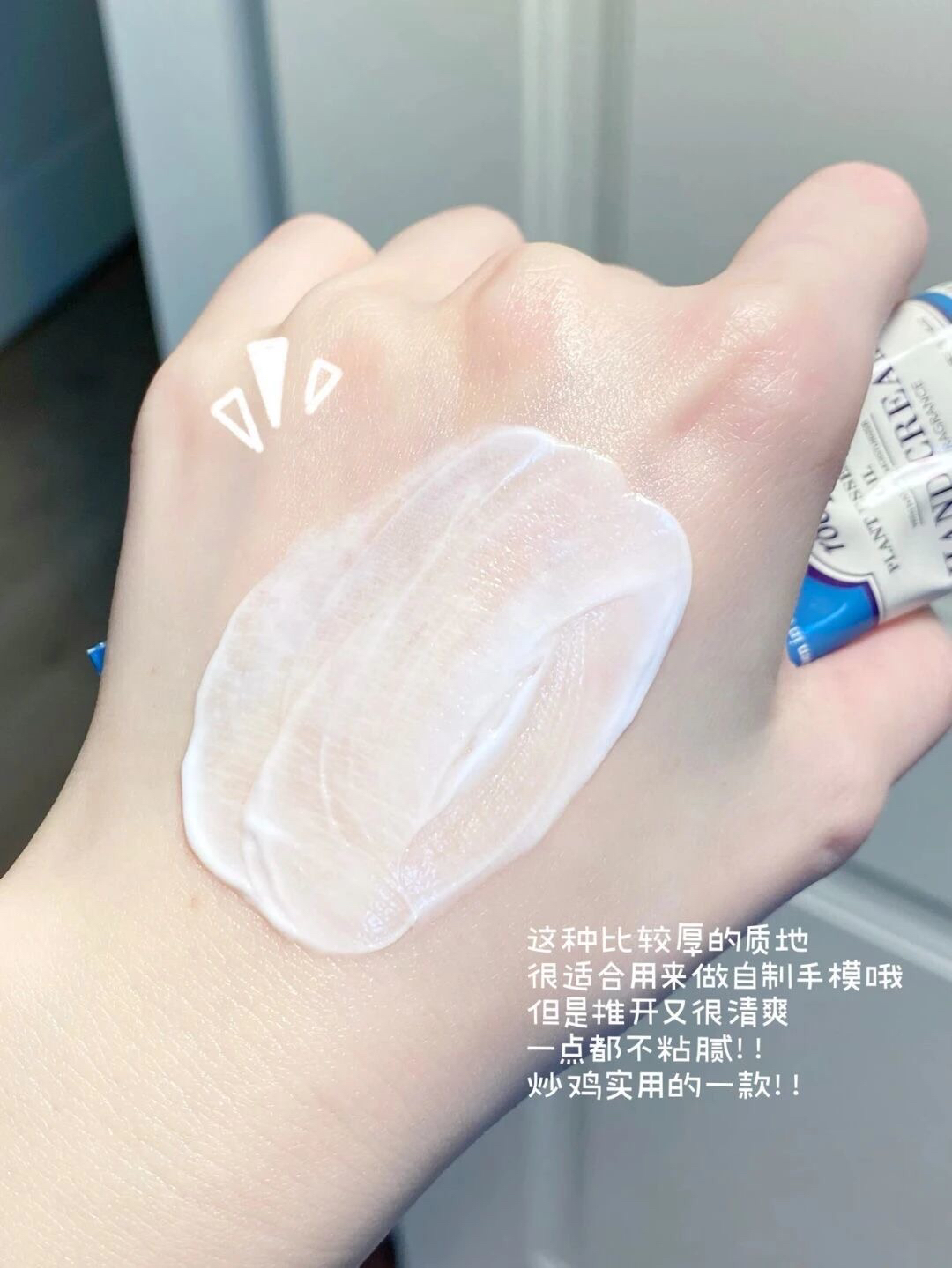而且炒鸡水润很好推开!不像别的一些护手霜涂上之后有黏黏的感觉,非常好吸收不油腻~