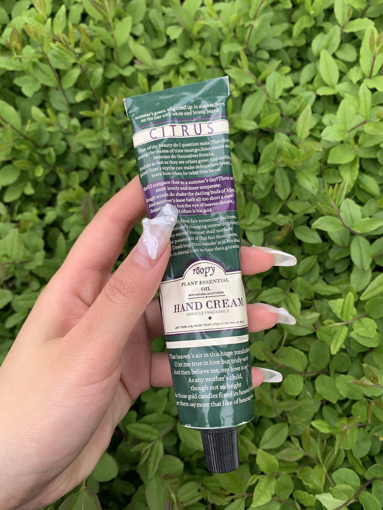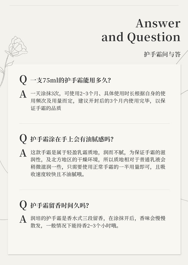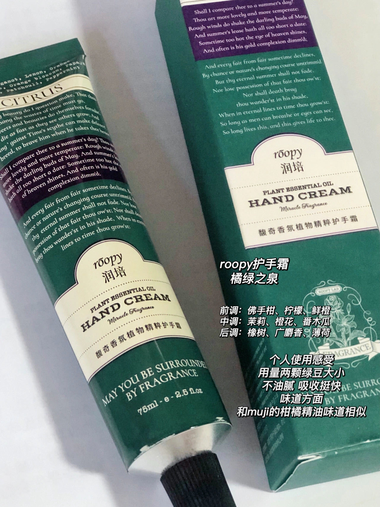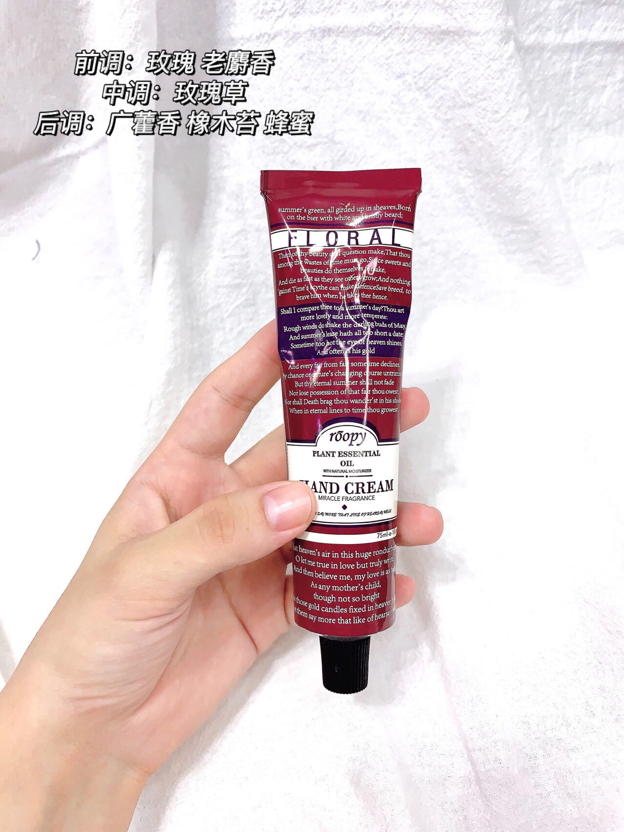 75ml大小适宜,包里一支,办公桌一支,家里随处一支,洗完手顺手就涂,时刻保持双手白白嫩嫩。