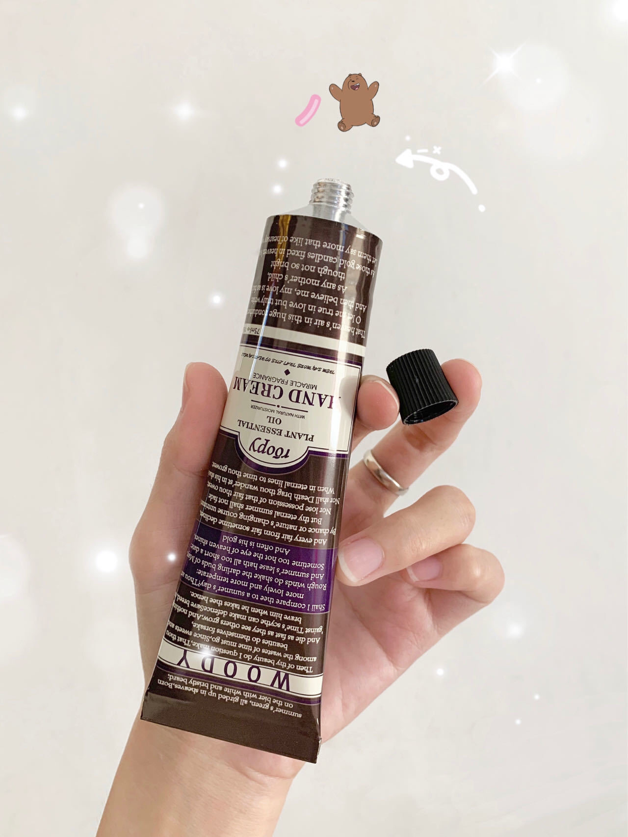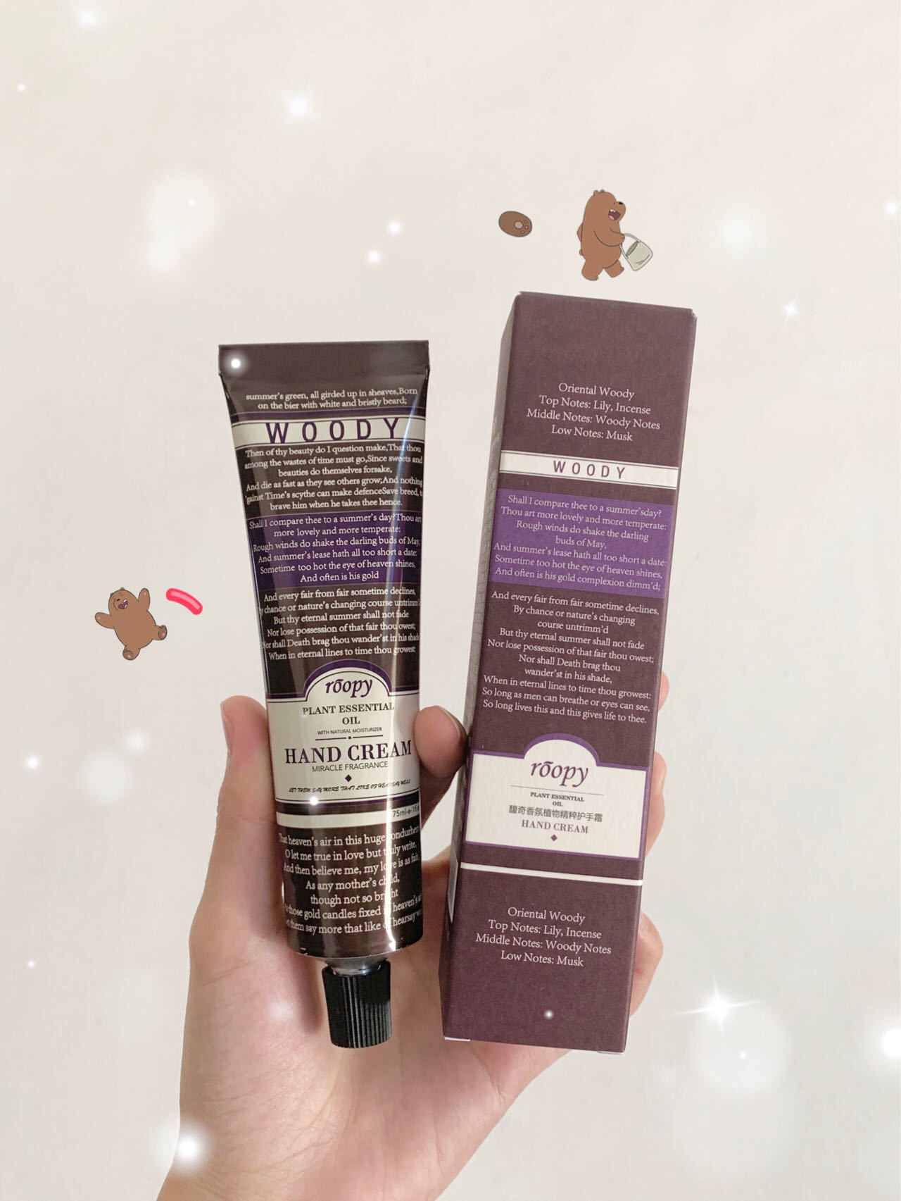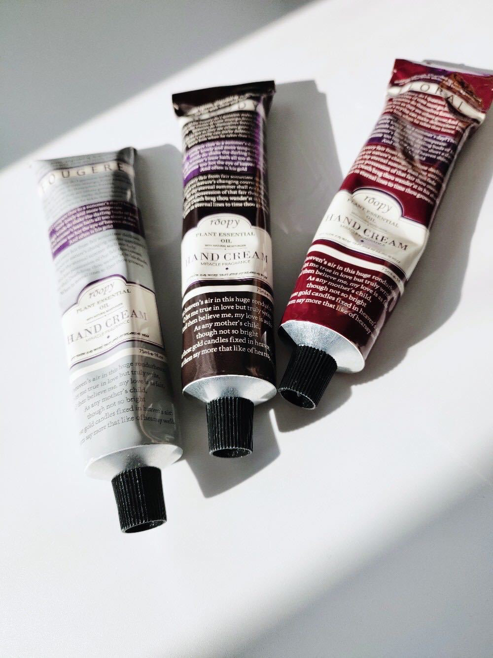 75ml大小适宜,包里一支,办公桌一支,家里随处一支,洗完手顺手就涂,时刻保持双手白白嫩嫩。