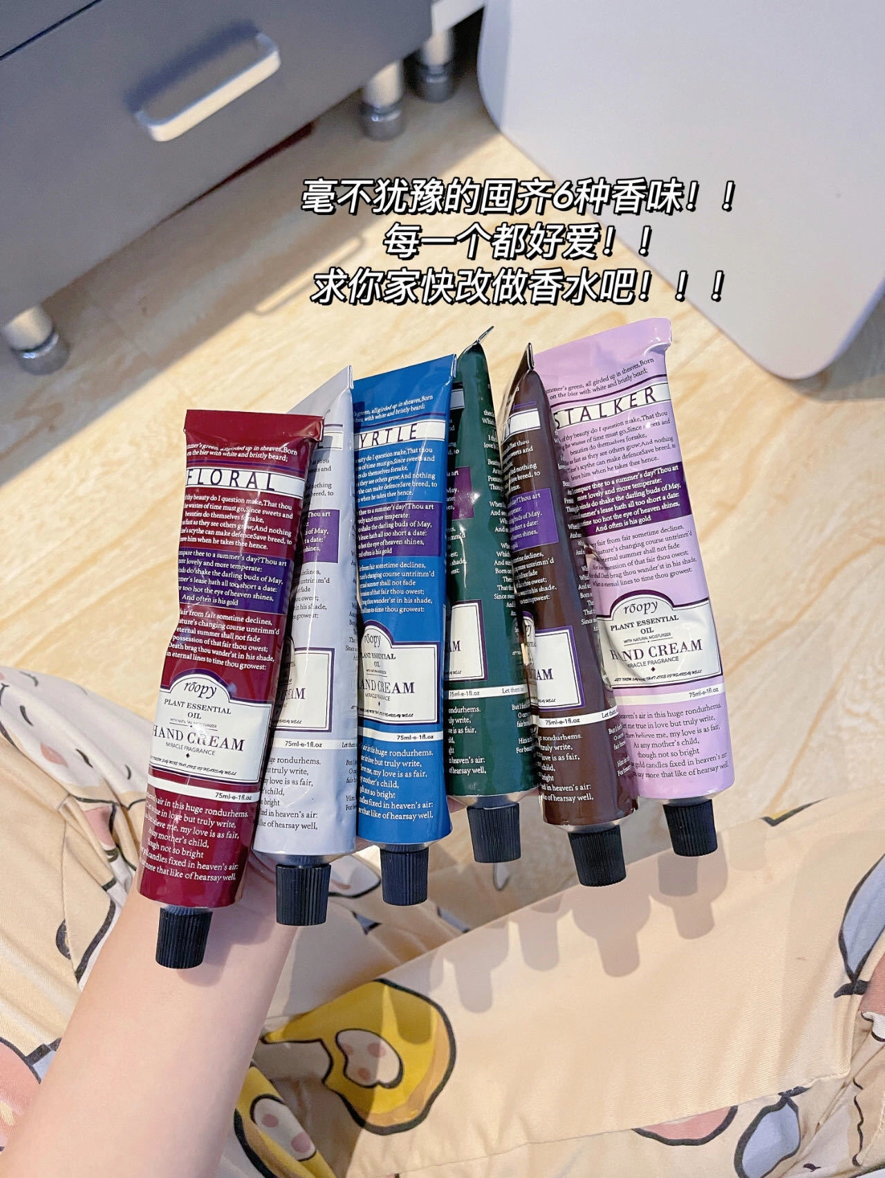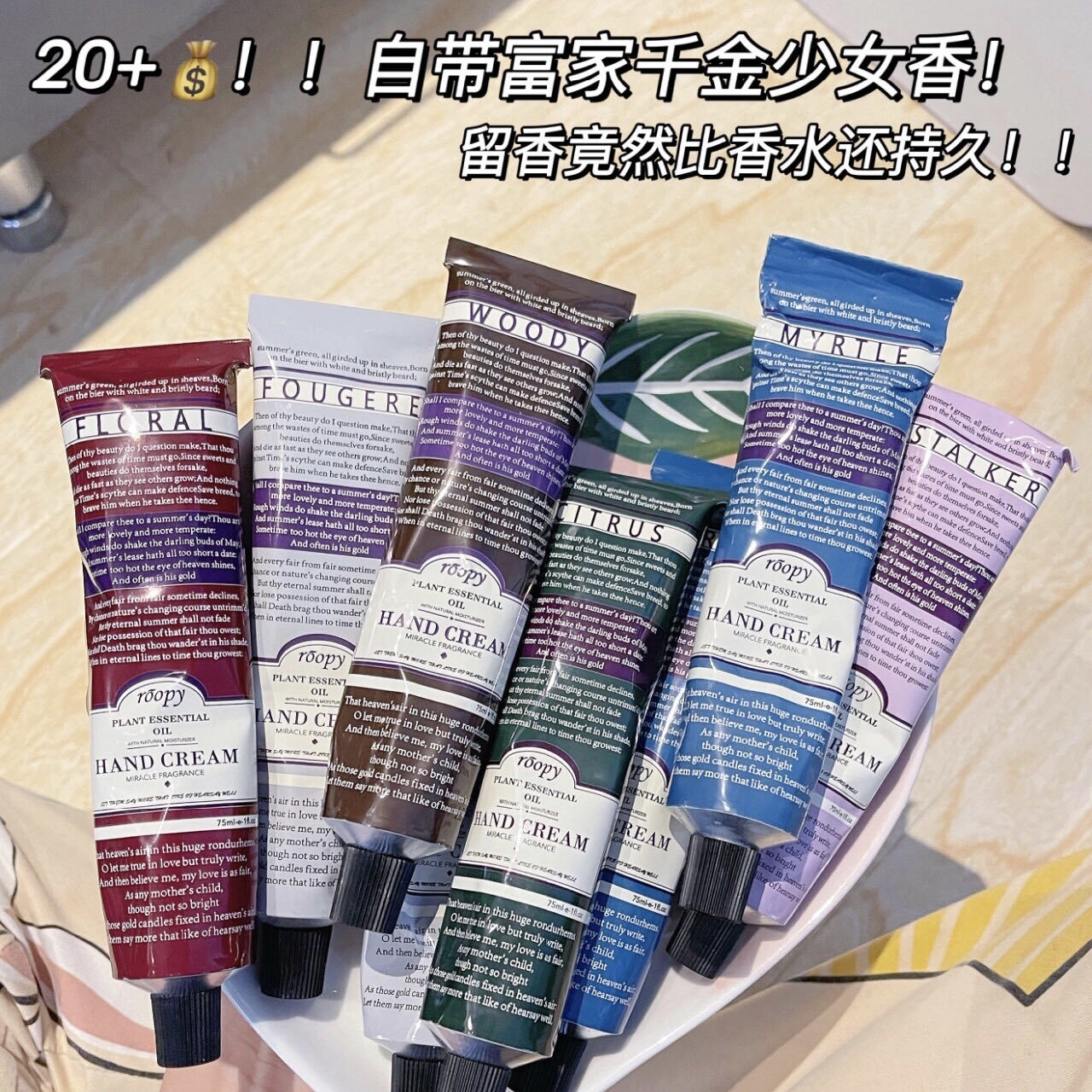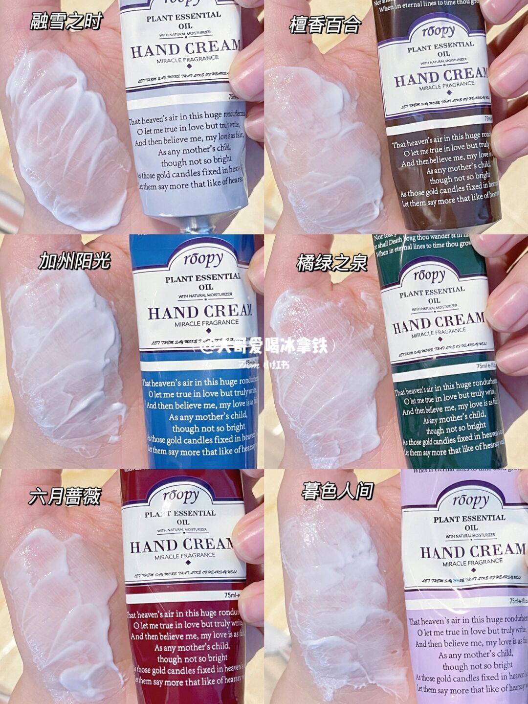 【roopy润培馥奇香氛植物精粹护手霜 】被夸N次的私藏香氛护手霜💓香味层次感丰富,耐人寻味,六种香型带给你多样风格👍质地清爽水润,一抹即化,不黏腻还够滋润👏每天认真护肤的你,也别忘记关照手部的肌肤哦😆