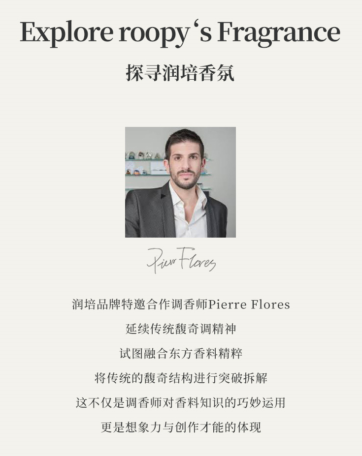 roopy润培以独特三段式调香描绘出法兰西的文学浪漫,将文学诗词藏于产品中,用气味带你梦回浪漫之都。