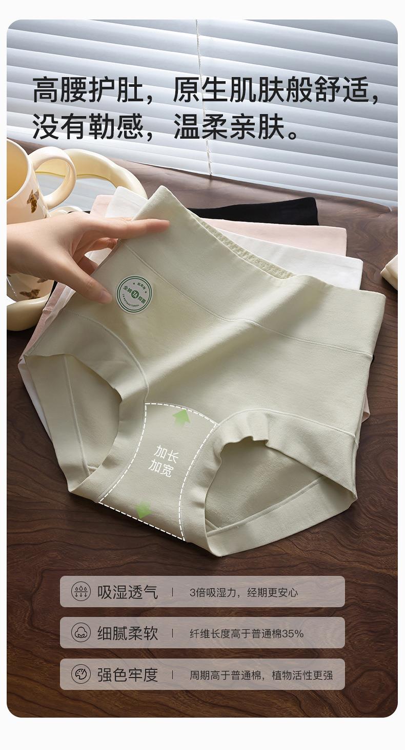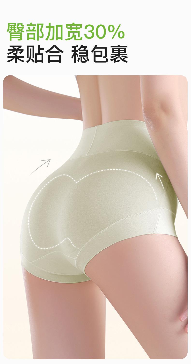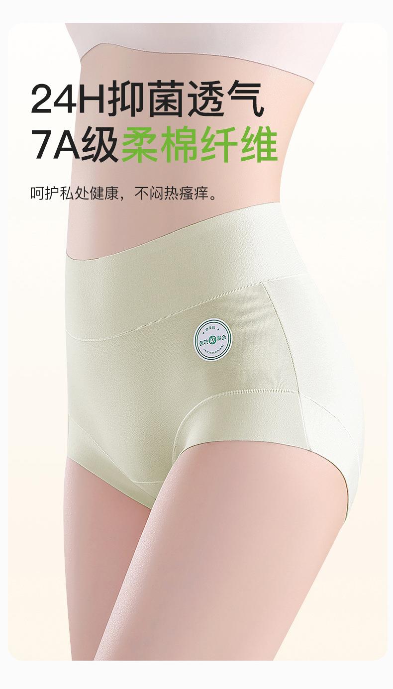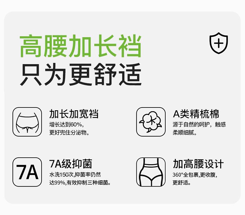 【7A抑菌纯棉高腰a类女士平角内裤】中高腰提臀全裤纯棉7A抑菌加长裆内裤女