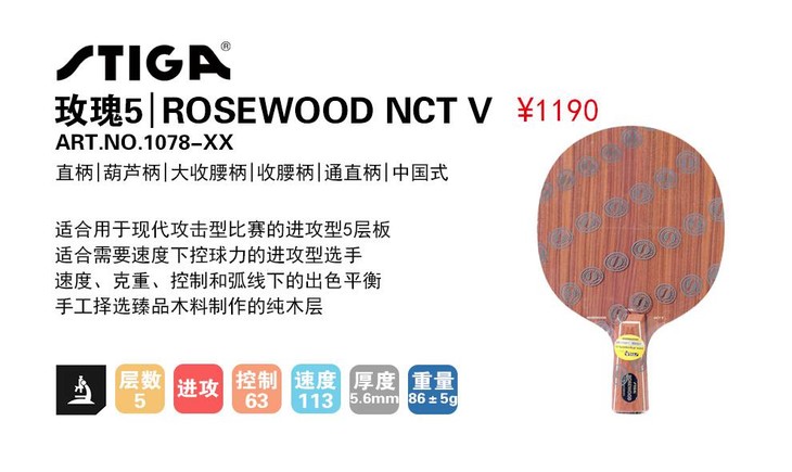 STIGA斯帝卡 玫瑰5 玫瑰7 ROSEWOOD V VII 底板正品行货