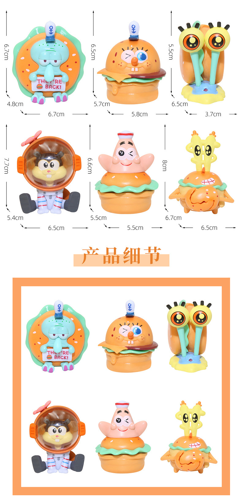 【创意造型❗️萌趣生动】海绵宝宝手办盲盒六款章鱼哥蟹老板派大星潮玩桌面装饰品摆件礼物。jb