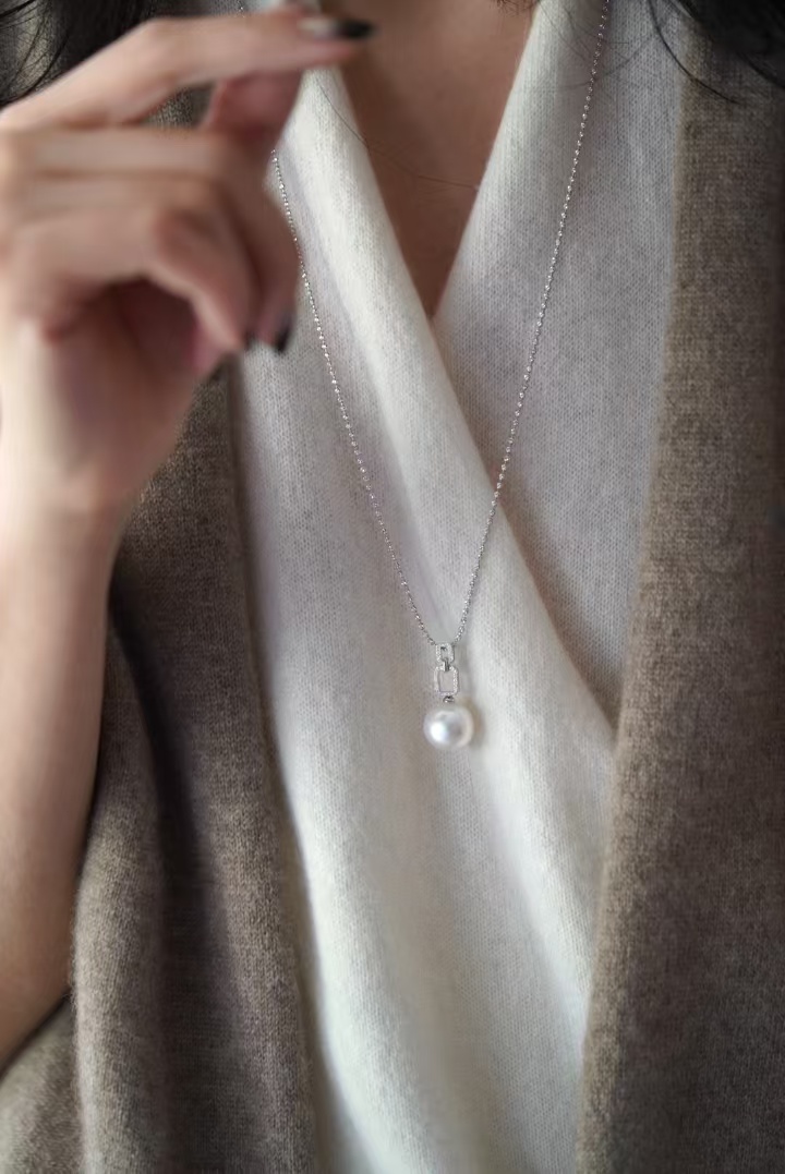 澳白吊坠「魔方」13-14mm 澳白珍珠款式时尚 先锋 不土豪18k钻石12999🉐