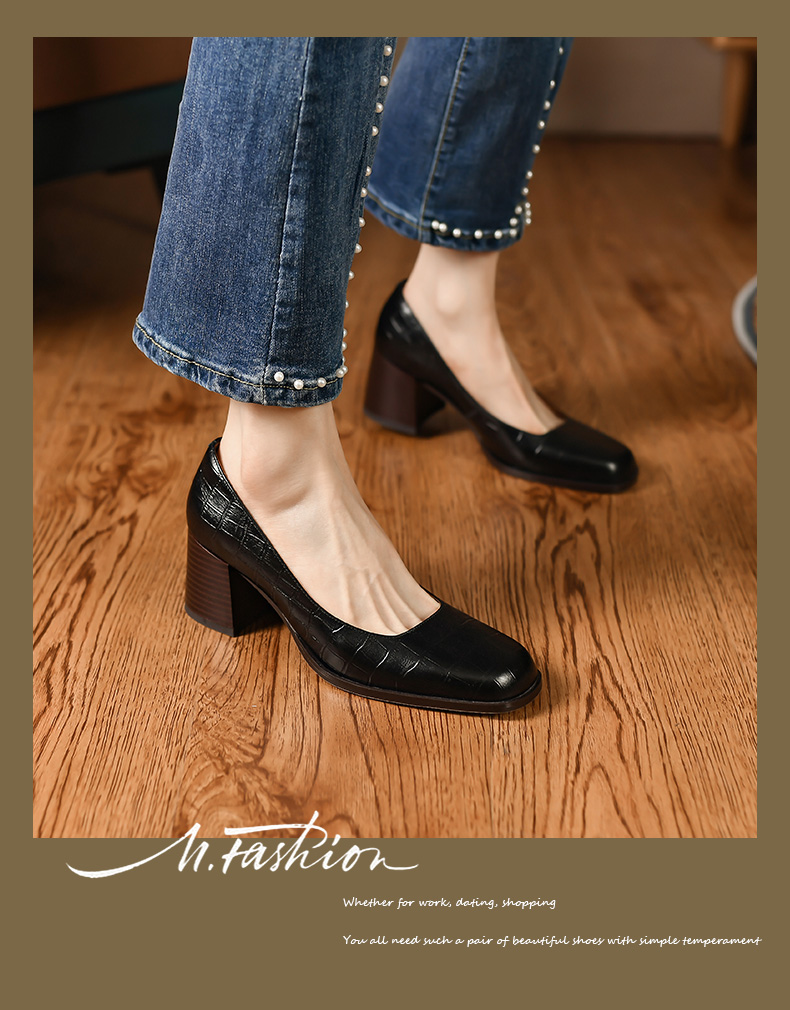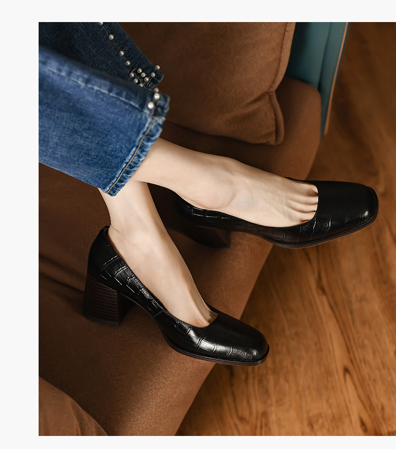 【预售5天】复古真皮防水台高跟弹力靴女秋冬新款粗跟厚底方头针织毛线筒短靴ASN&3122