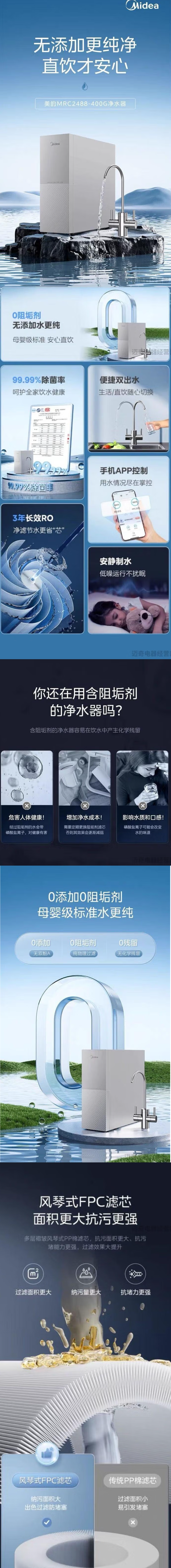 美的(Midea)小钢炮400G家用净水器 双出水 3年长效RO APP控制净水器MRC2488-400G