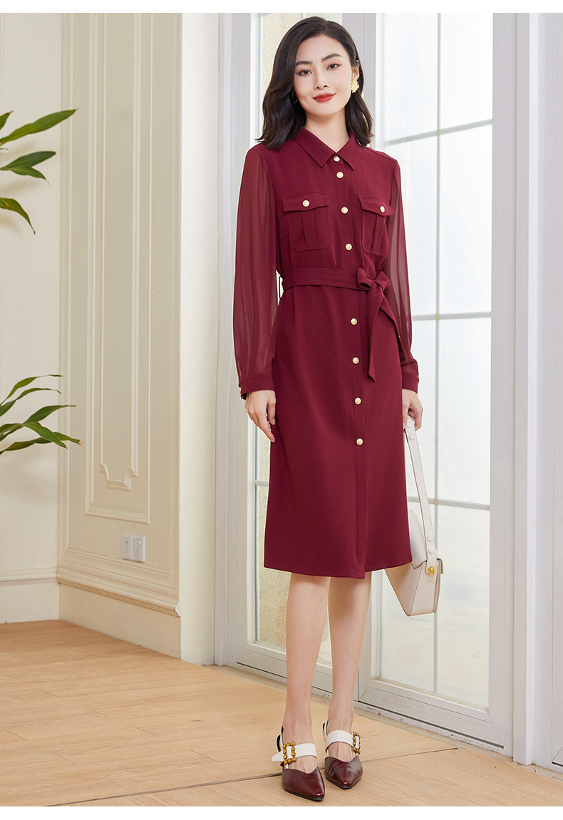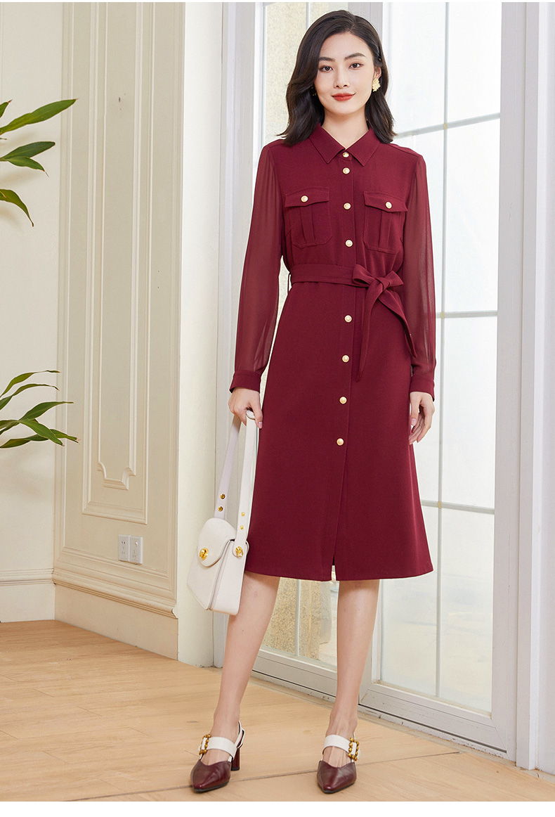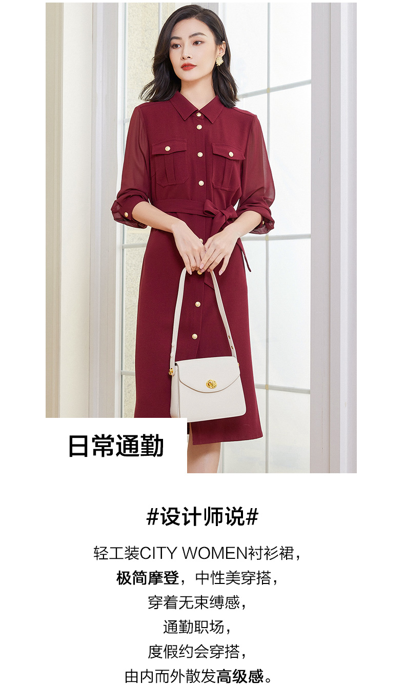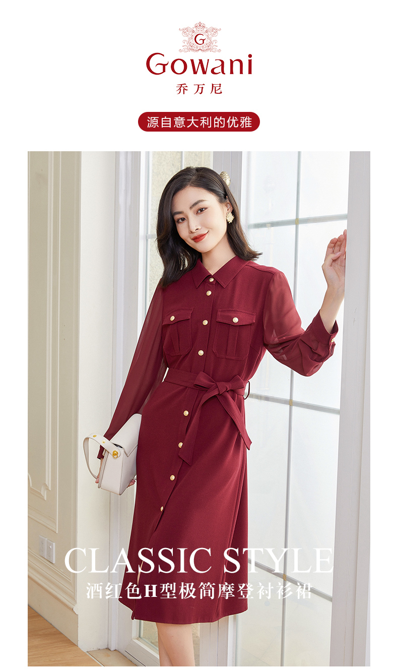 乔万尼春装新款早春连衣裙艺术感法式收腰红色EF3E908