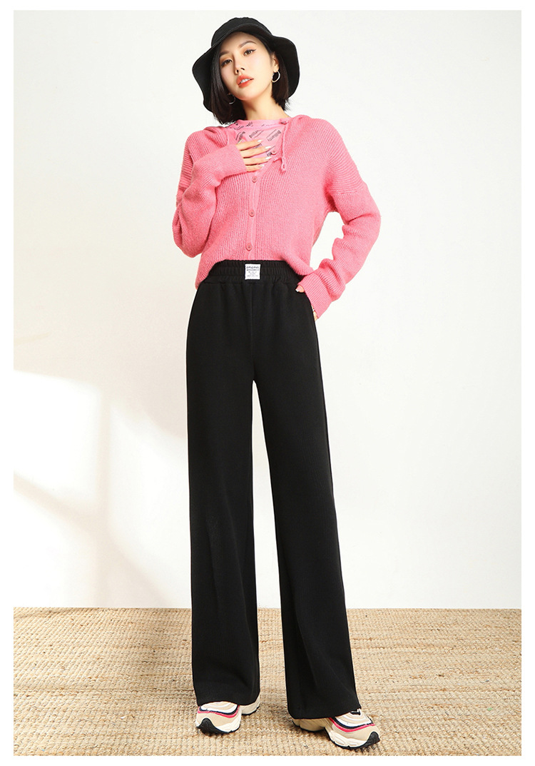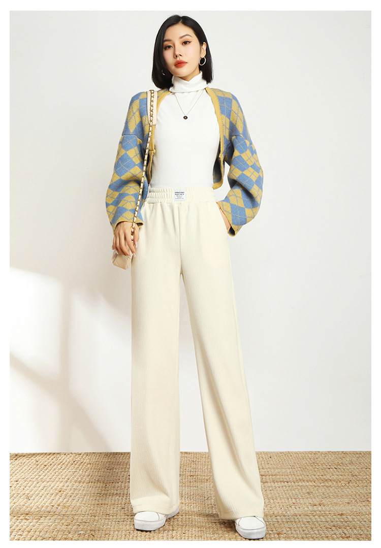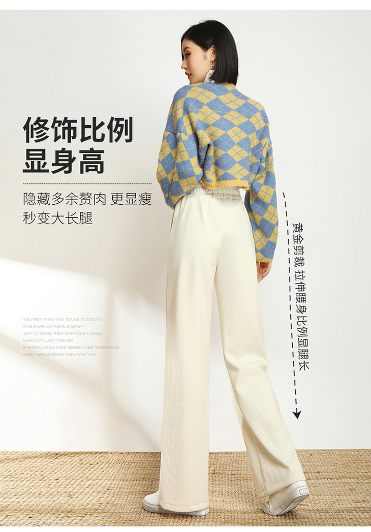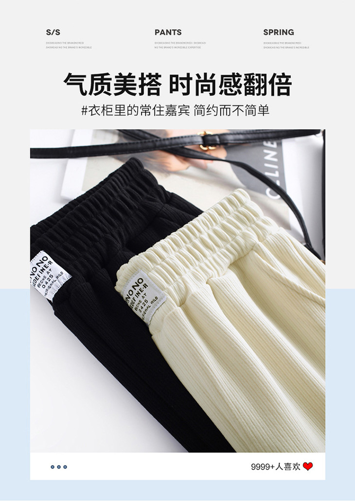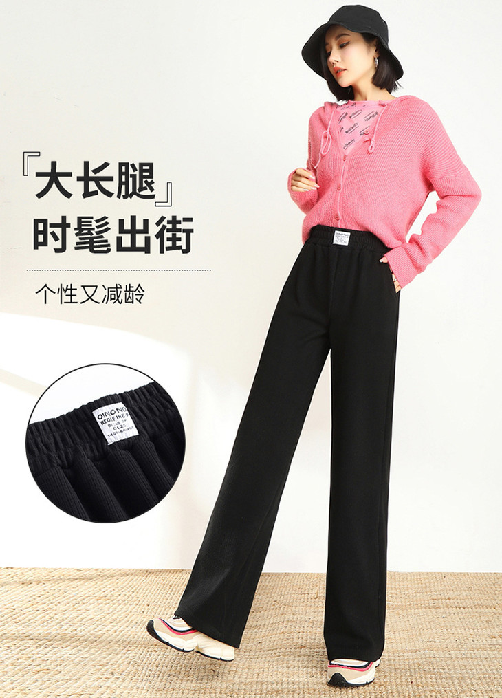 AHM-lsy1678A新款时尚气质松紧高腰宽松直筒条绒阔腿裤