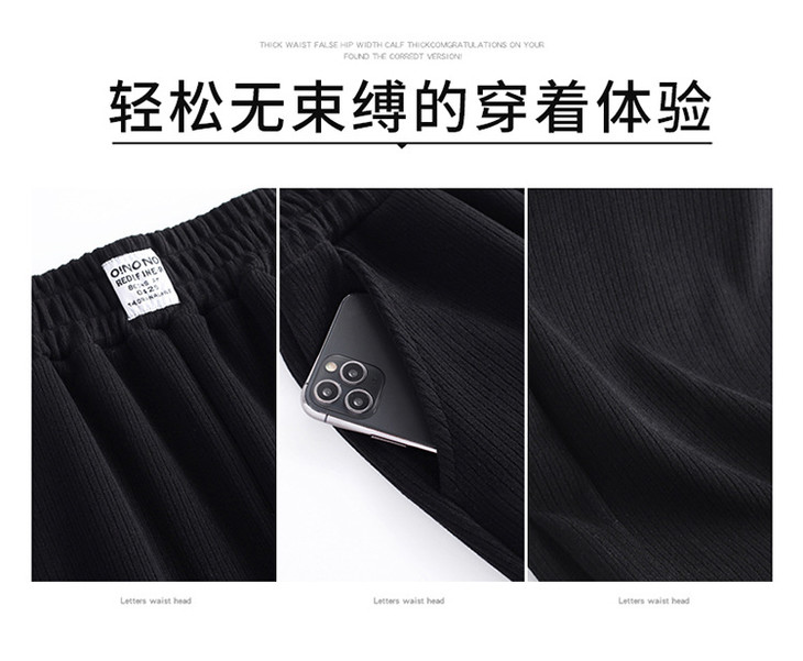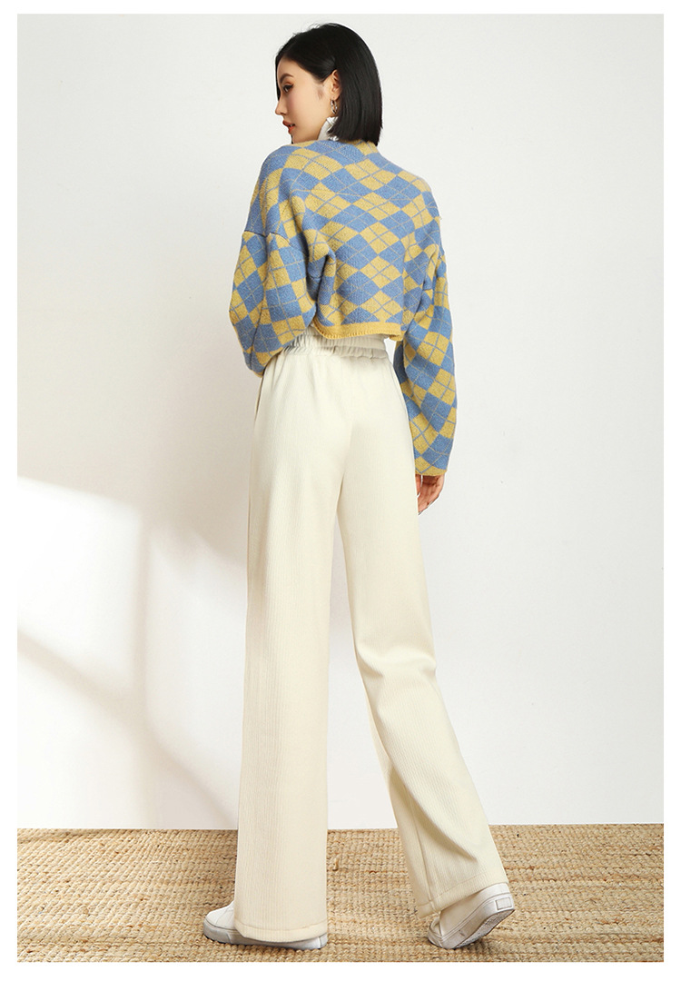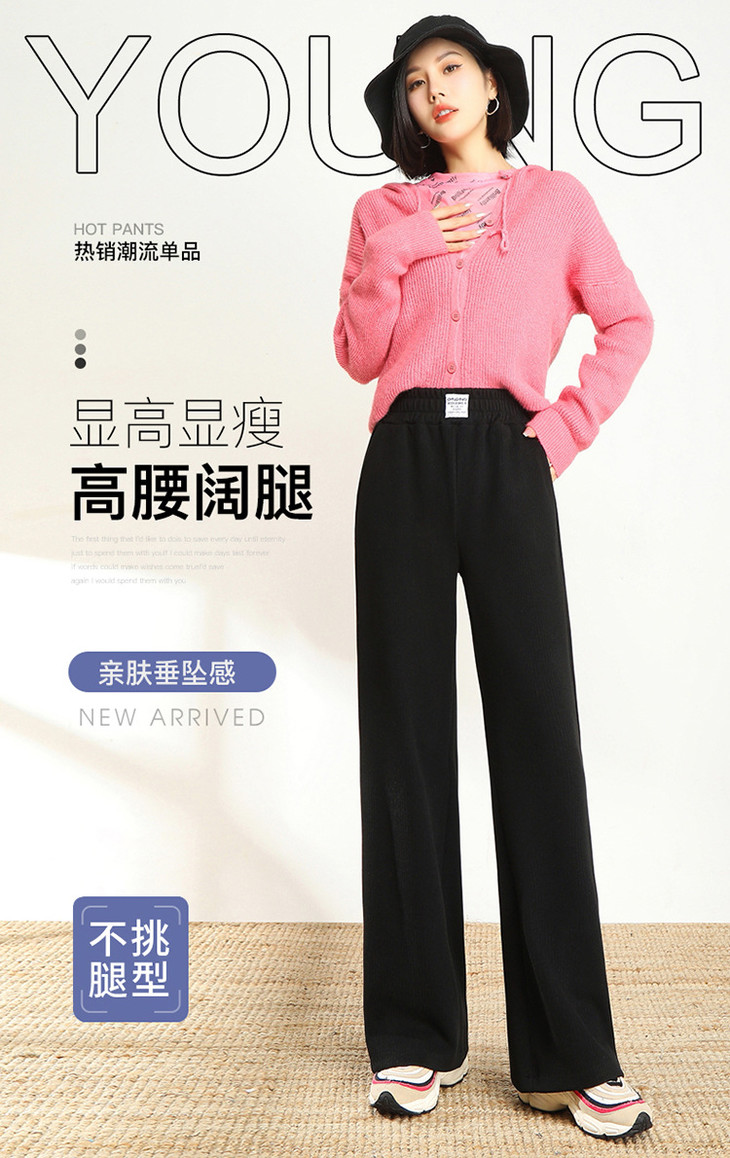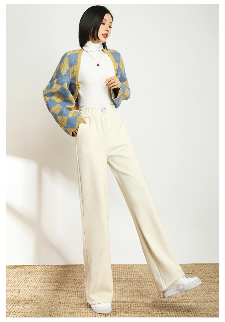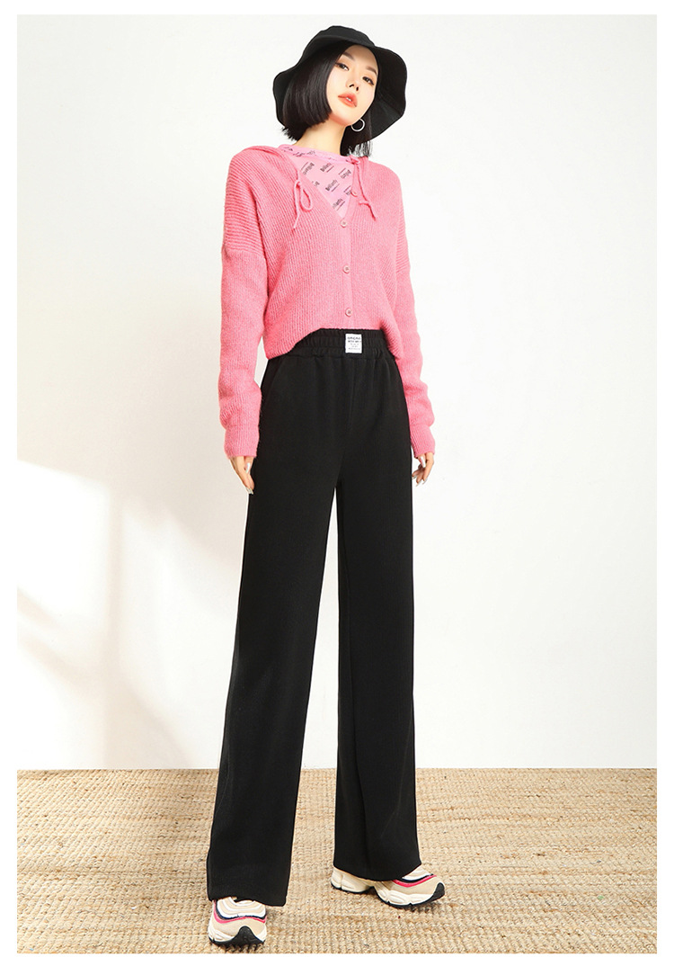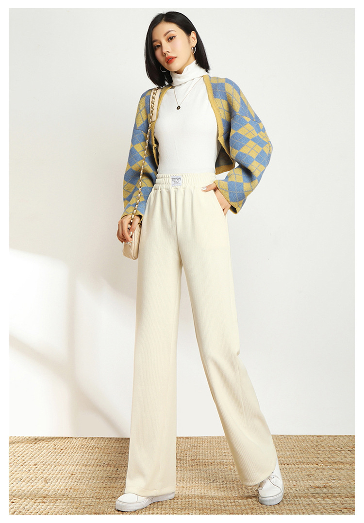 AHM-lsy1678A新款时尚气质松紧高腰宽松直筒条绒阔腿裤
