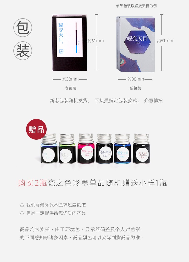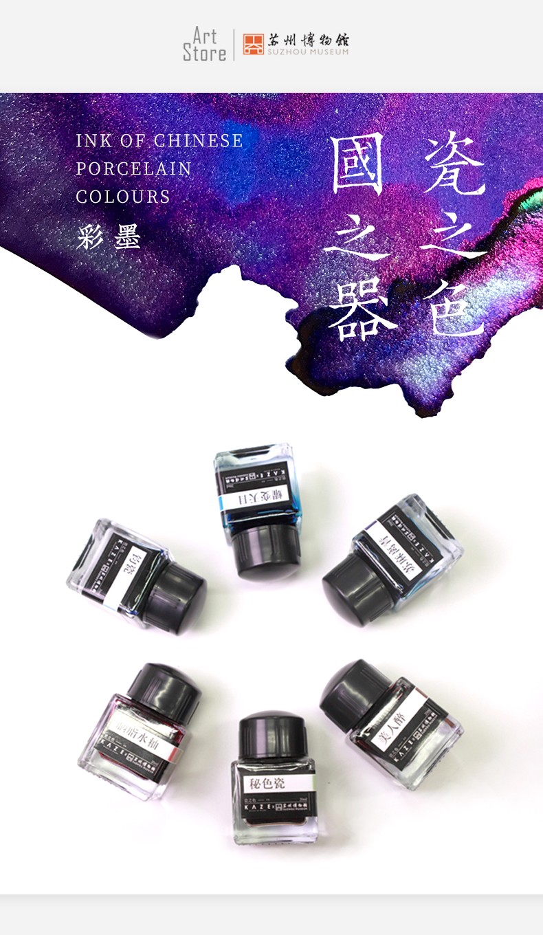 苏州博物馆 瓷之色彩墨20ML钧瓷文艺书写多色无碳素学生钢笔墨水