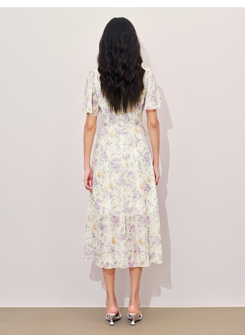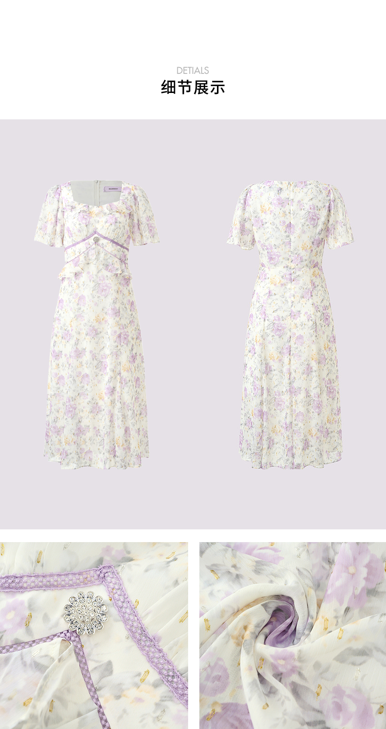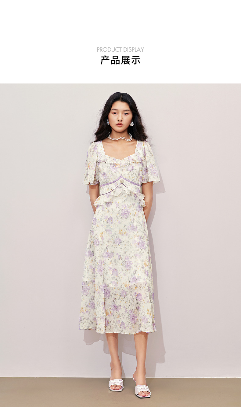 MAXRIENY浪漫度假风连衣裙2024夏季新款复*领长裙晕染雪纺印花(货号:MS85DR299)